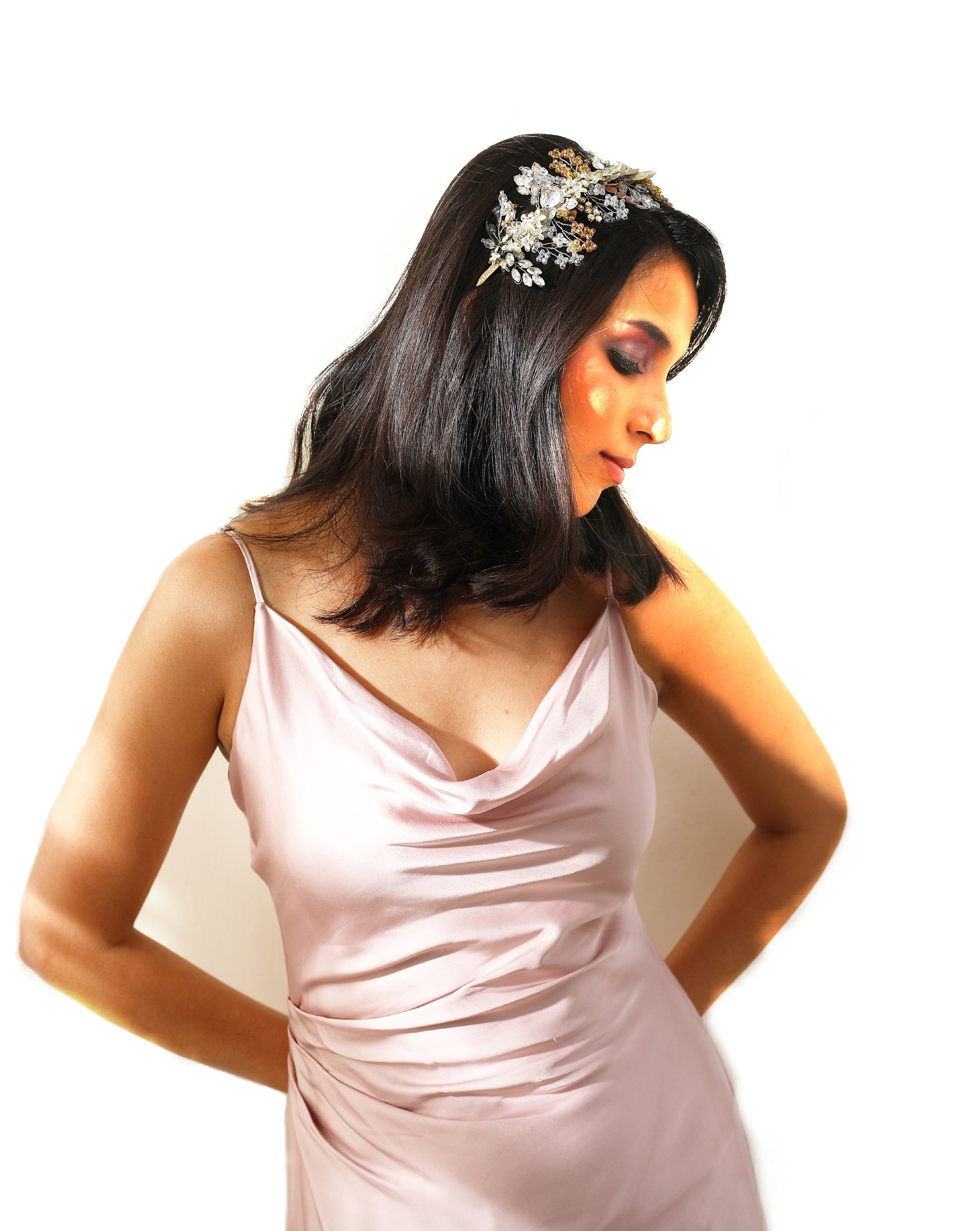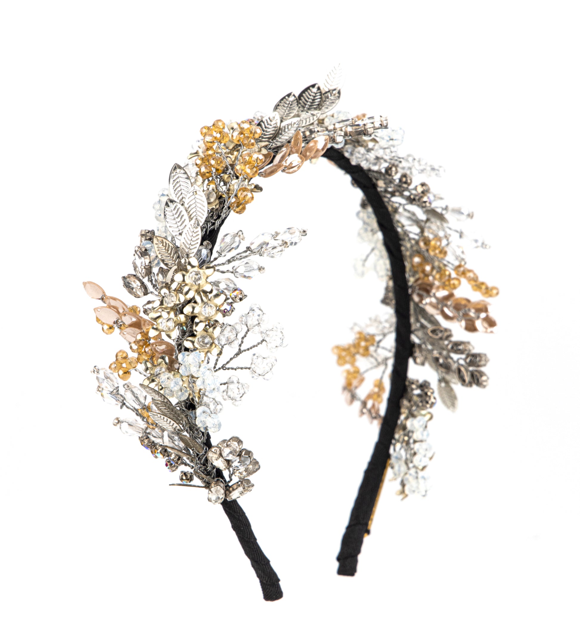 Bornflash Crystal, beads, and sequins embellished gold and Silver Bridal hand beaded flower Wedding Party wear Hairband.