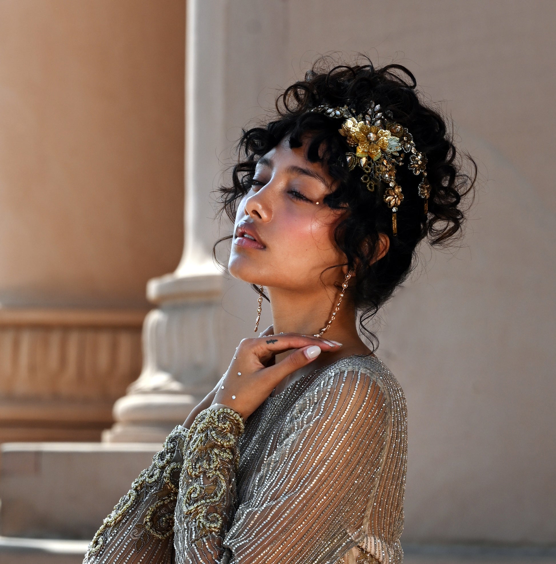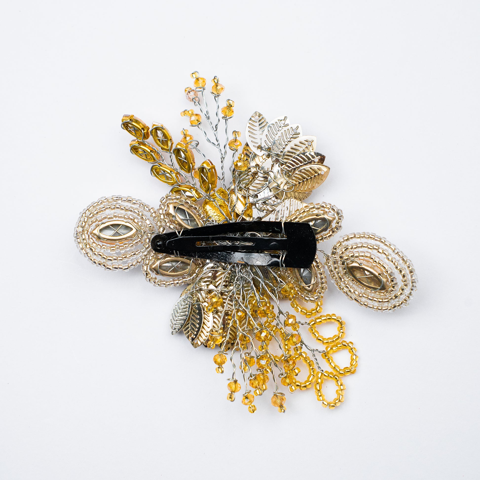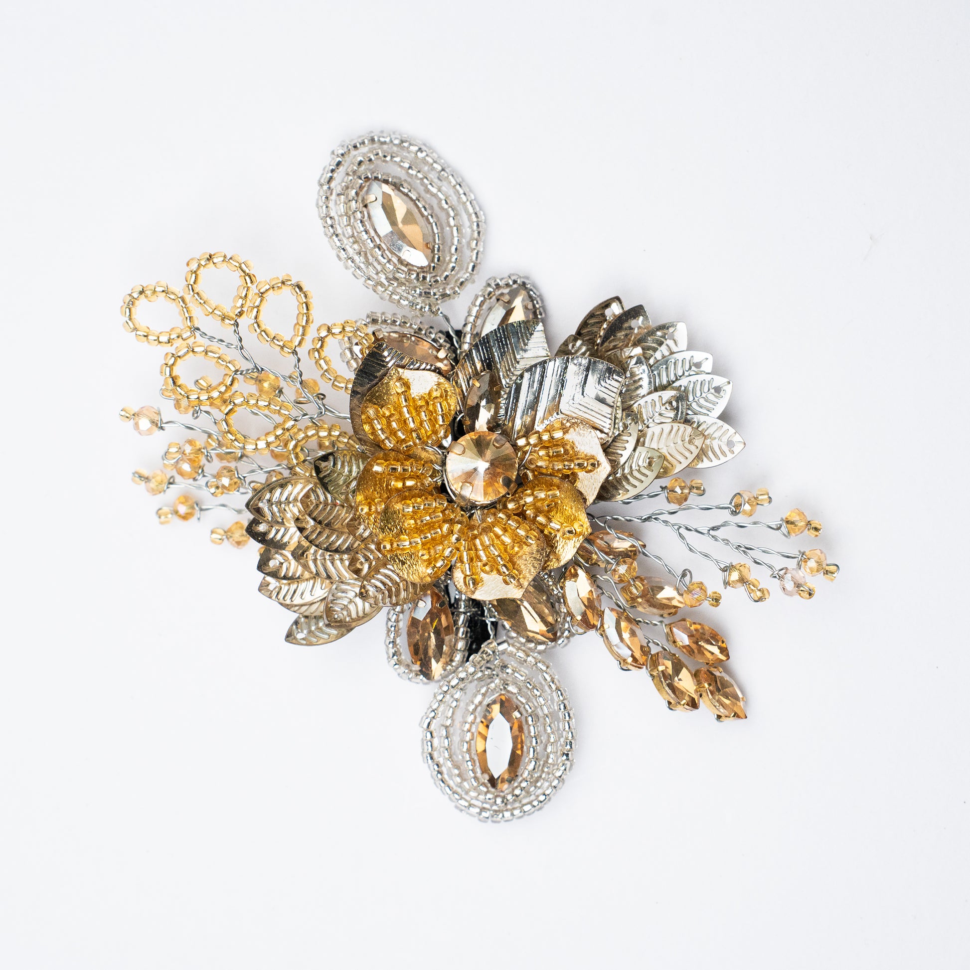 Bornflash Crystal, Sequins and beads embellished Silver and Gold color Bridal hand beaded flower Wedding Party wear Tic Tac Hairclip set in steel..
