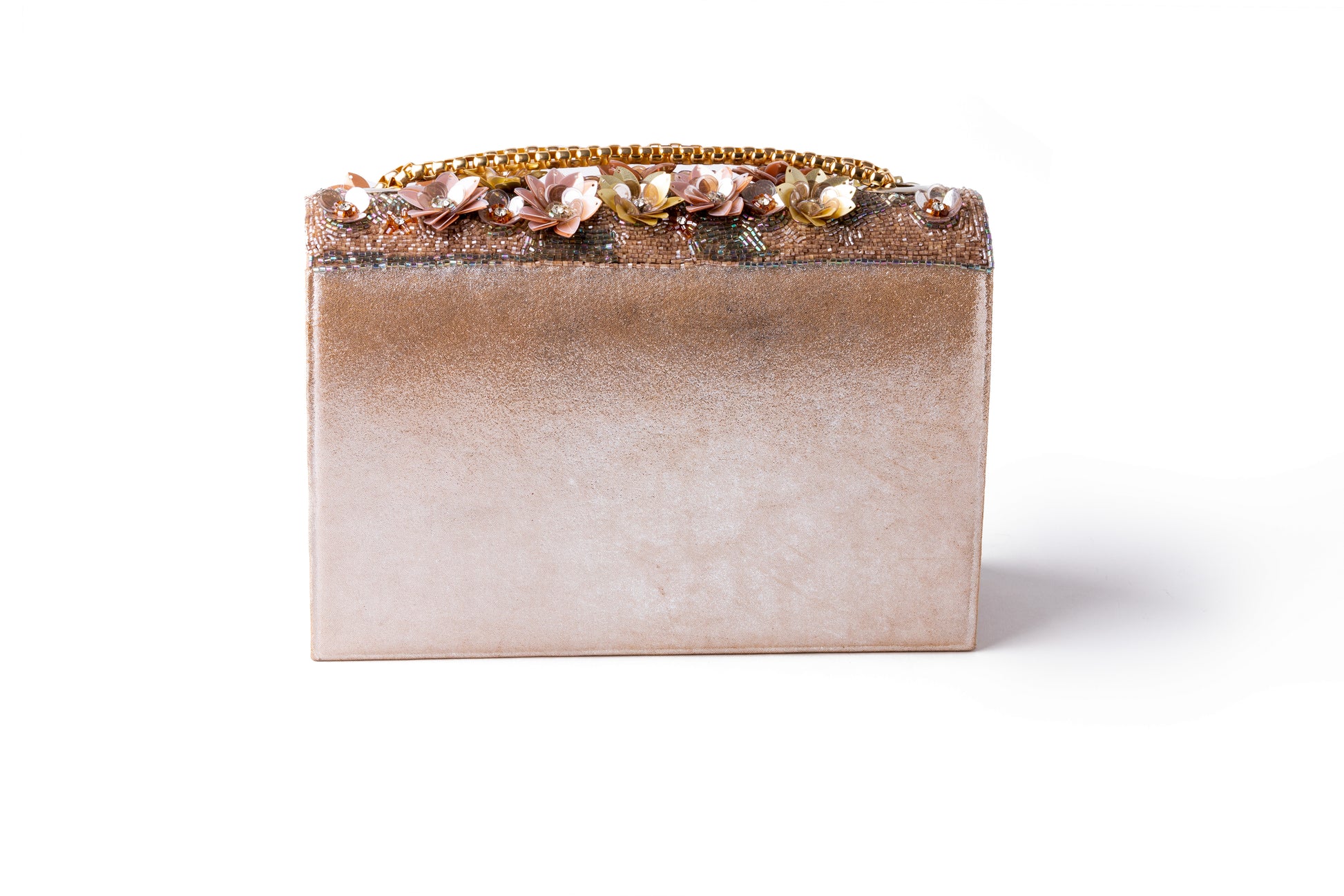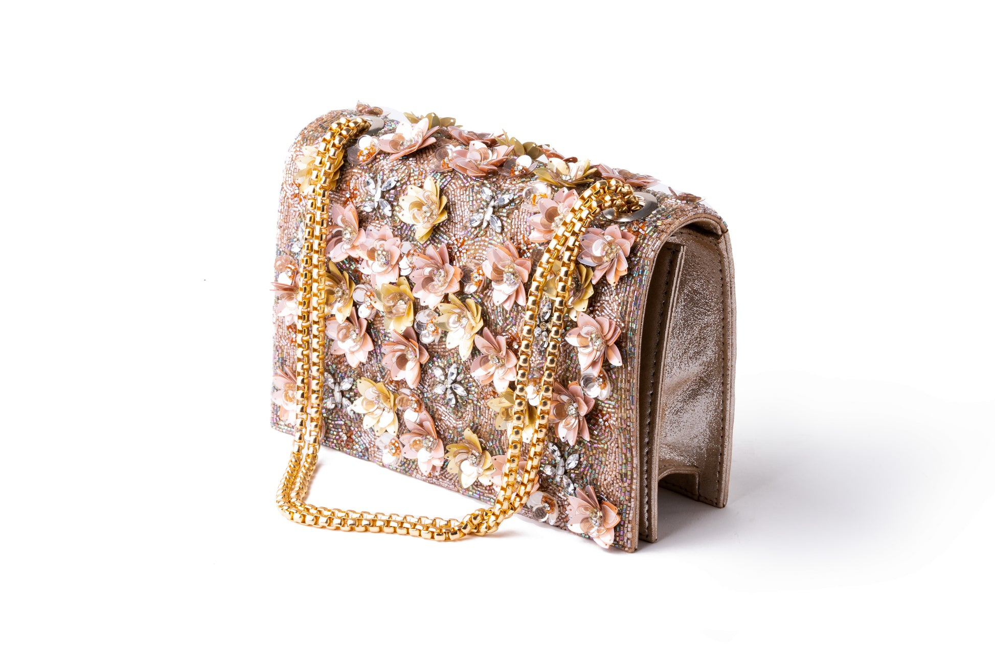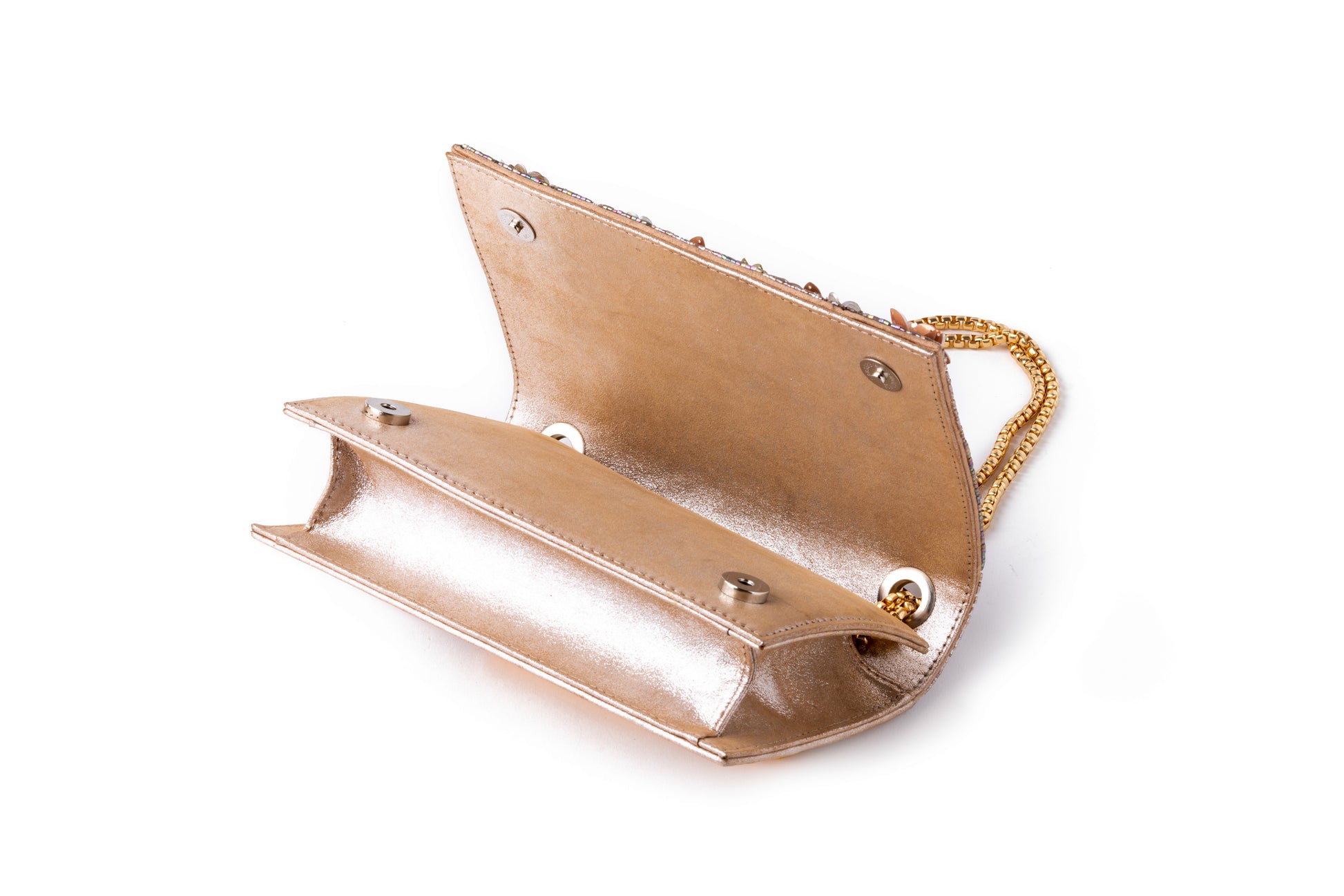 Featuring a Multicolored hand beaded clutch bag. This is embellished with floral motifs designed in an intricate manner and adjustable silver chain string on a pure leather base..