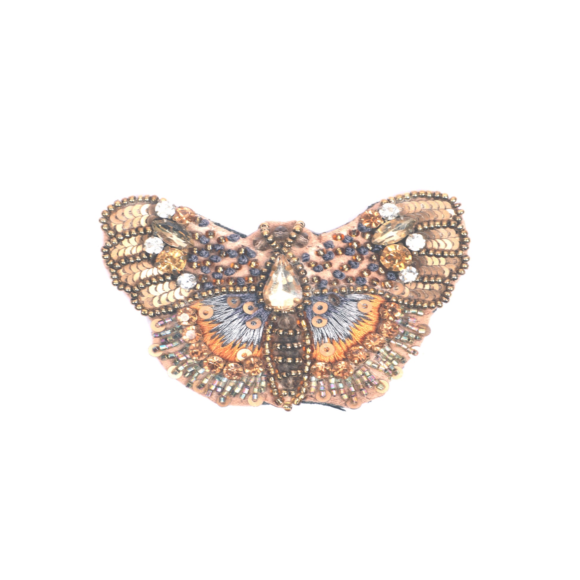 Featuring a gold butterfly wedding partywear Tic Tac hairclip with crystals, beads, sequins and leather embellishment.