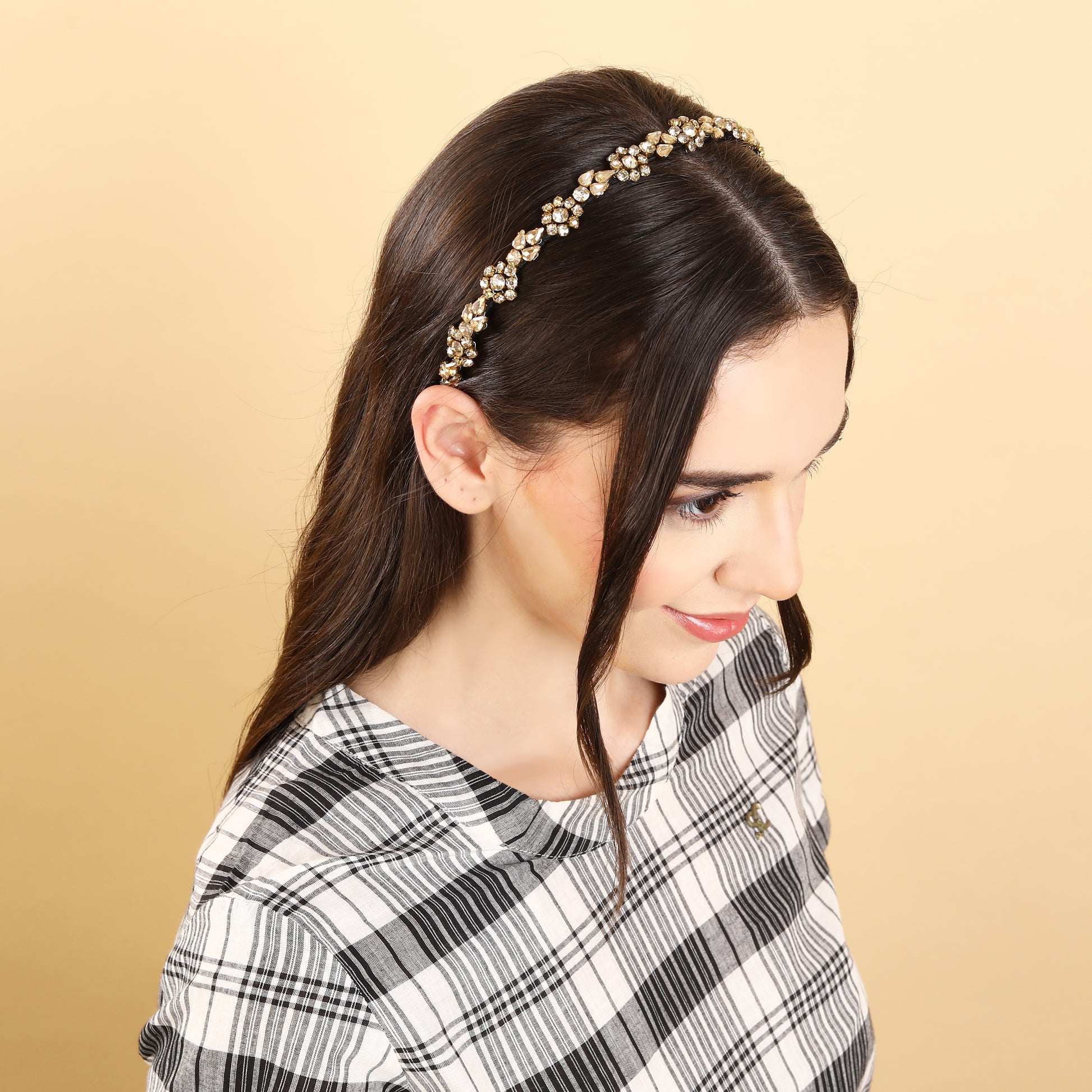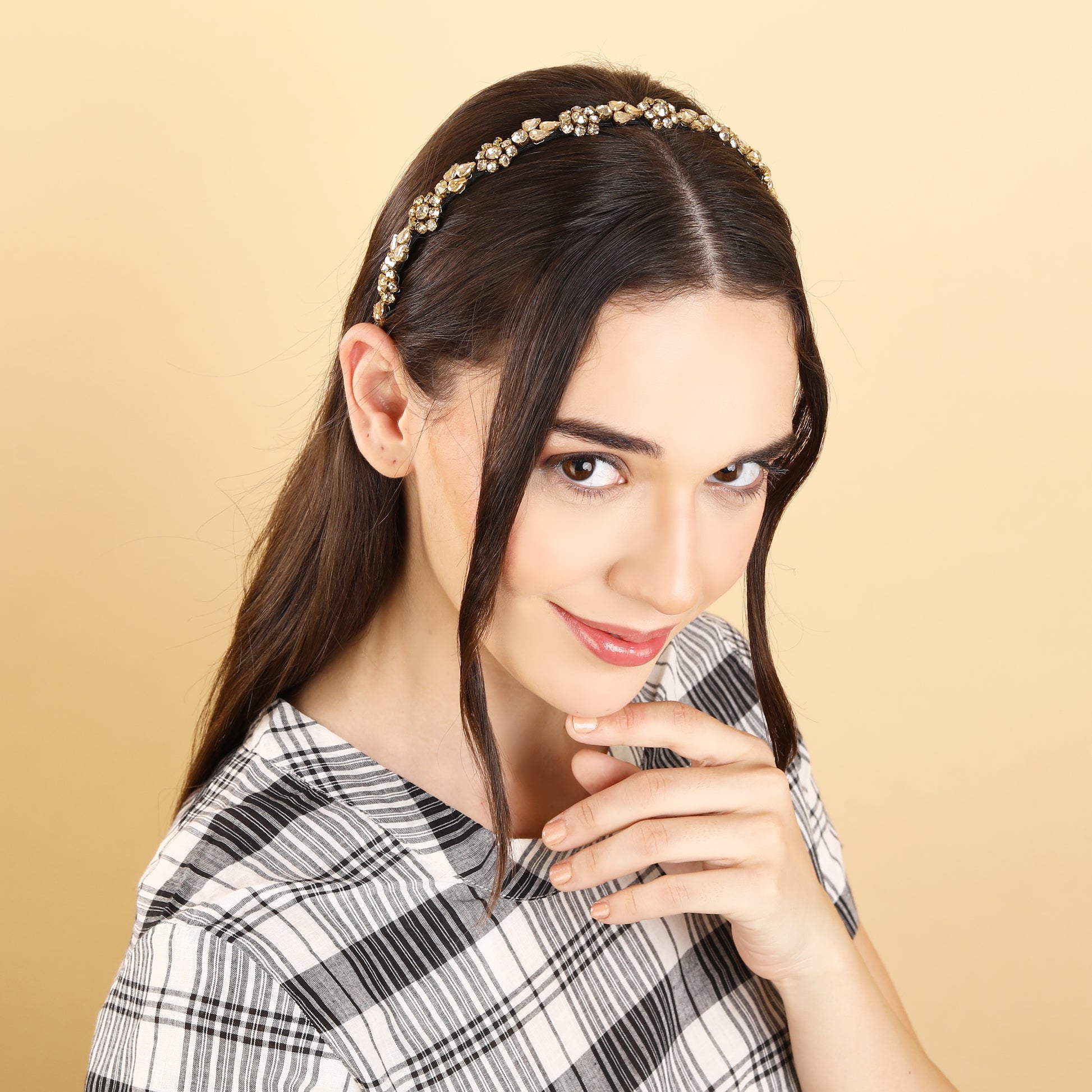 This elegant hand-beaded hairband features gold and silver crystals and beads delicately woven together to create a stunning accessory. The golden hues add a touch of luxury, while the silver accents provide a sophisticated contrast. Perfect for adding a touch of glamour to any hairstyle, this hairband exudes timeless beauty and style.This exquisite handcrafted hairband features a mesmerizing combination of gold and silver color crystals. Each carefully chosen element adds a touch of elegance and sophistication to any hairstyle, making it perfect for special occasions or adding a glamorous flair to everyday looks. Crafted with meticulous attention to detail, this hair accessory is sure to make a statement and elevate your style to the next level..