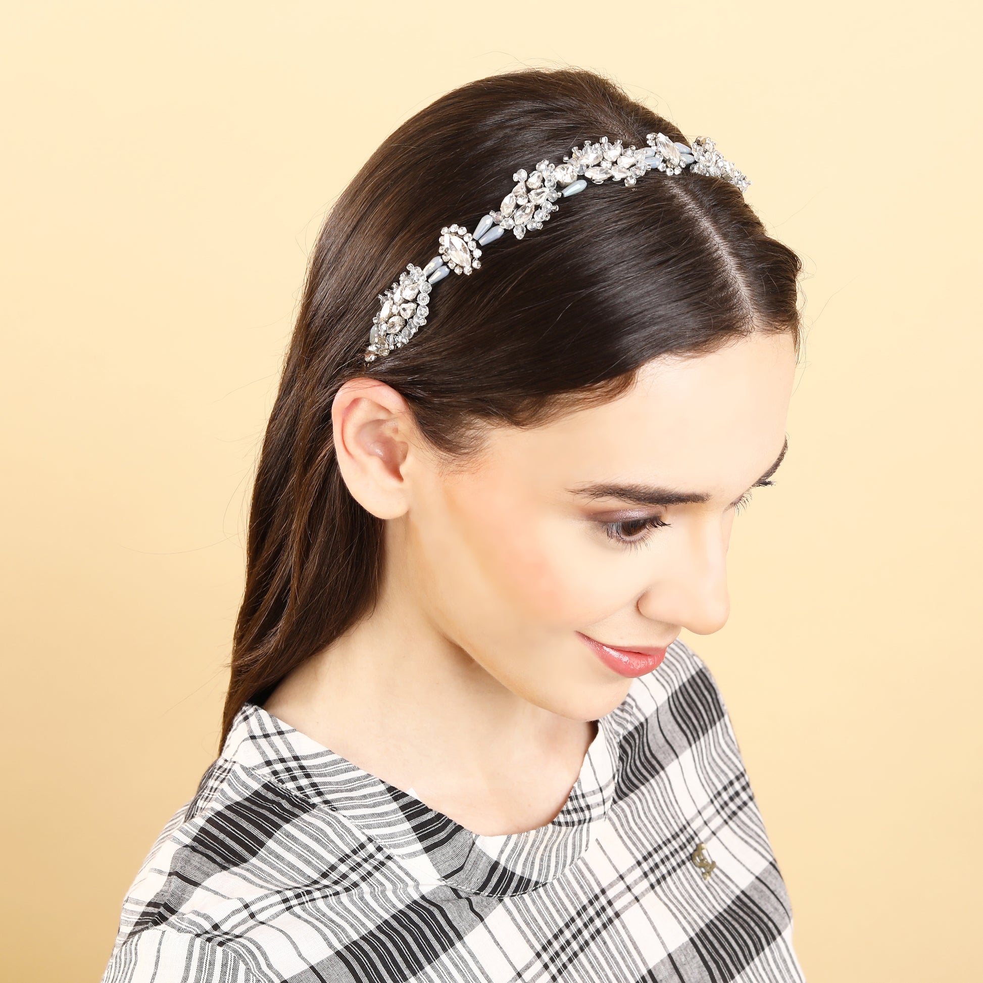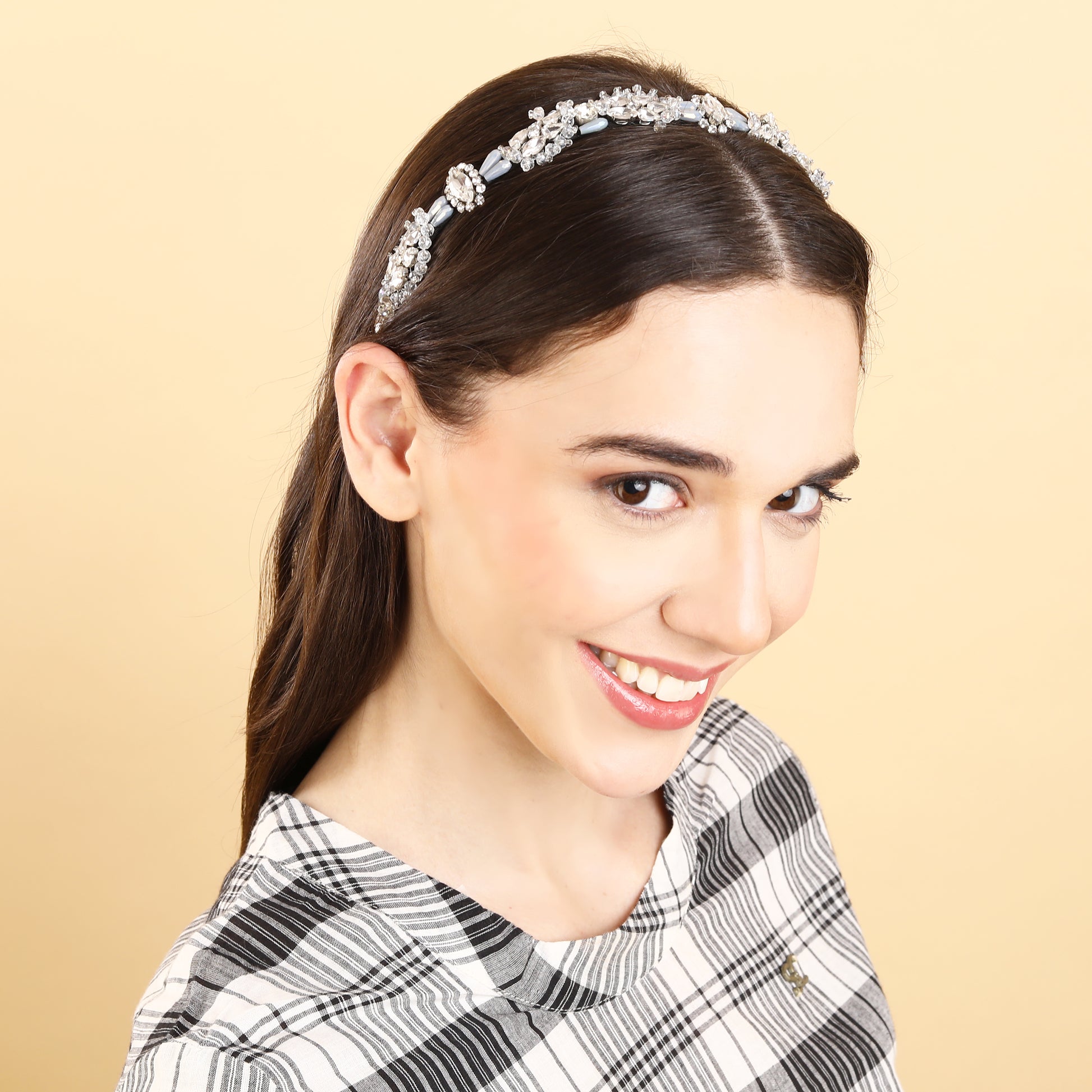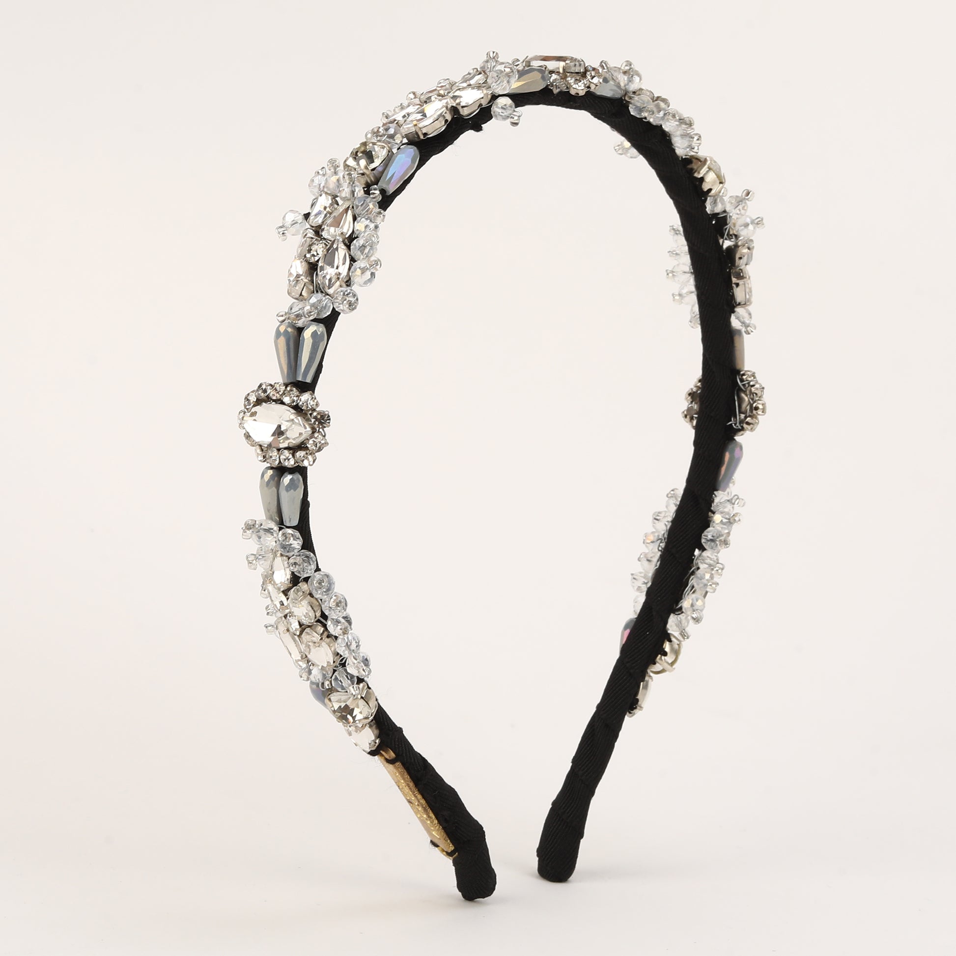 This elegant hand-beaded hairband features silver crystals and beads delicately woven together to create a stunning accessory. Perfect for adding a touch of glamour to any hairstyle, this hairband exudes timeless beauty and style.Each carefully chosen element adds a touch of elegance and sophistication to any hairstyle, making it perfect for special occasions or adding a glamorous flair to everyday looks. Crafted with meticulous attention to detail, this hair accessory is sure to make a statement and elevate your style to the next level..