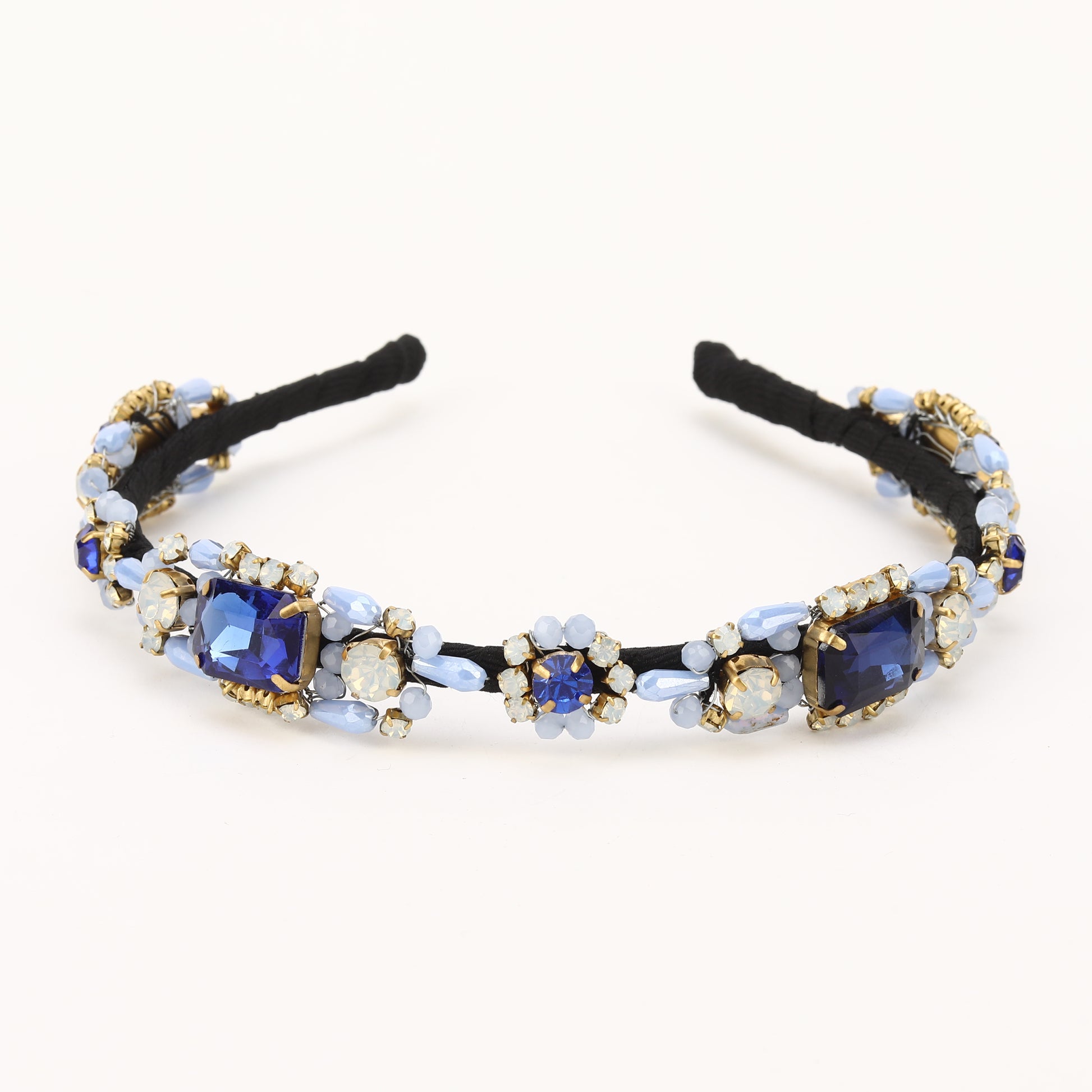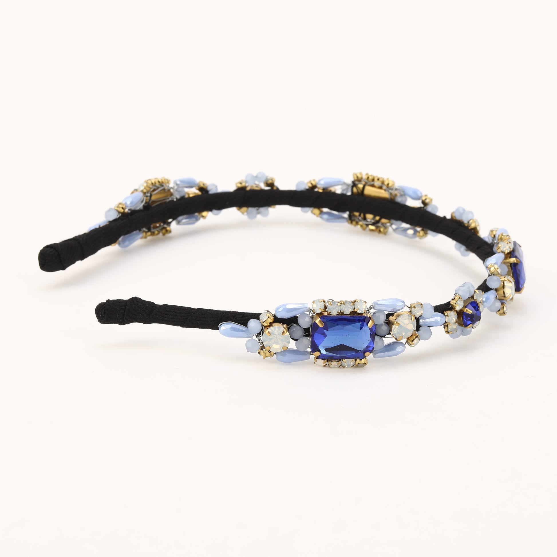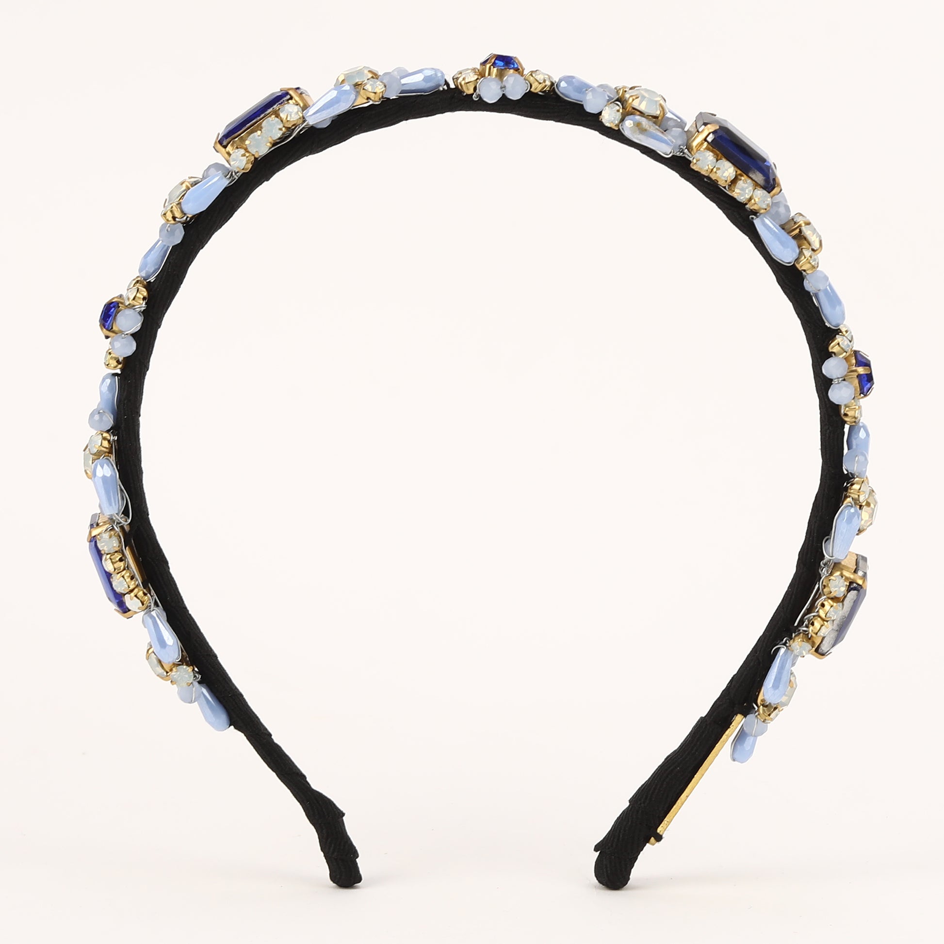 This elegant hand-beaded hairband features Blue crystals and beads delicately woven together to create a stunning accessory. Perfect for adding a touch of glamour to any hairstyle, this hairband exudes timeless beauty and style. Each carefully chosen element adds a touch of elegance and sophistication to any hairstyle, making it perfect for special occasions or adding a glamorous flair to everyday looks. Crafted with meticulous attention to detail, this hair accessory is sure to make a statement and elevate your style to the next level..