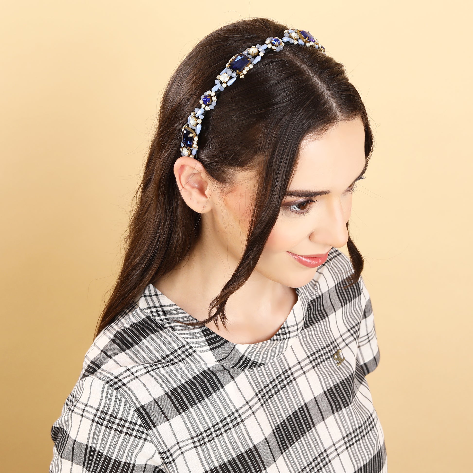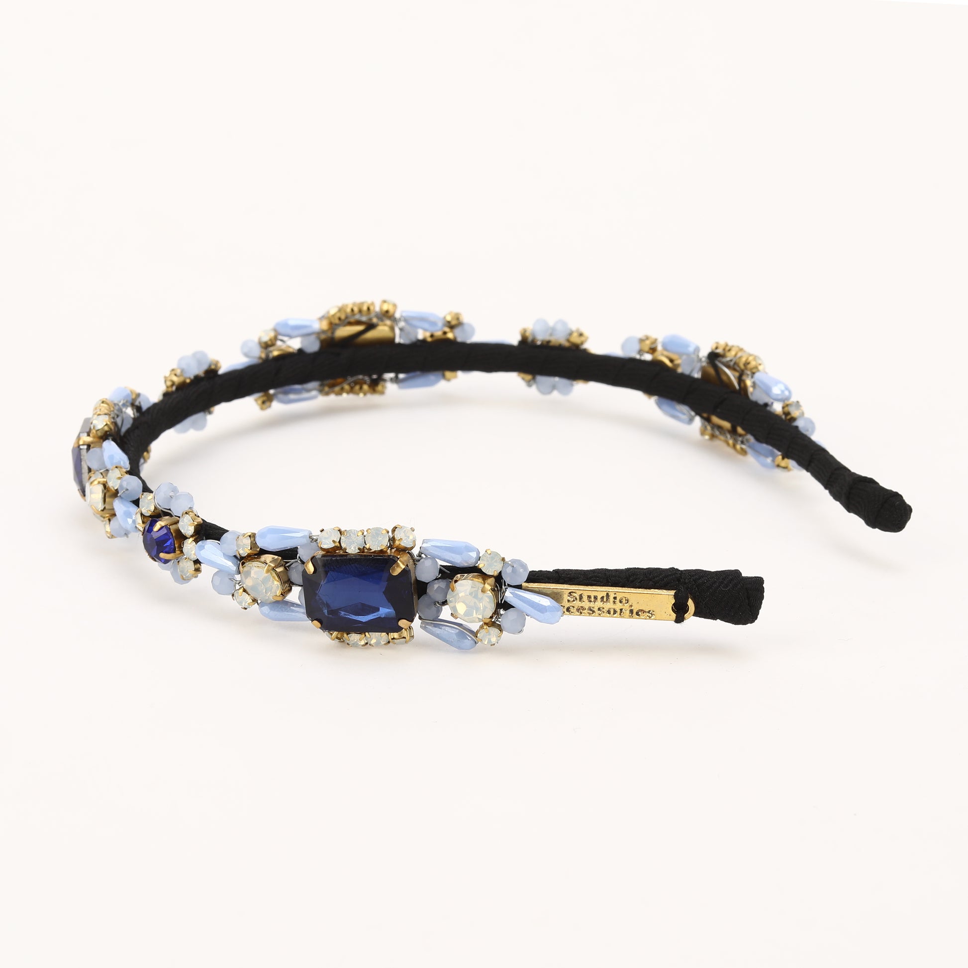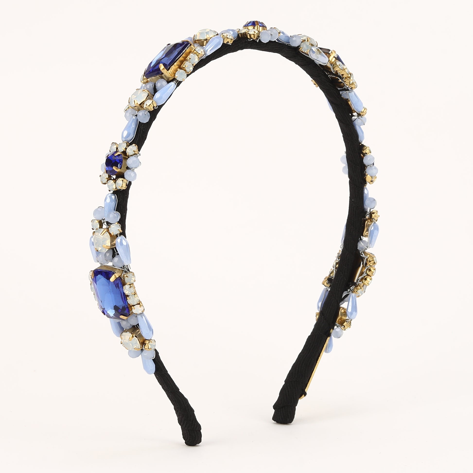 This elegant hand-beaded hairband features Blue crystals and beads delicately woven together to create a stunning accessory. Perfect for adding a touch of glamour to any hairstyle, this hairband exudes timeless beauty and style. Each carefully chosen element adds a touch of elegance and sophistication to any hairstyle, making it perfect for special occasions or adding a glamorous flair to everyday looks. Crafted with meticulous attention to detail, this hair accessory is sure to make a statement and elevate your style to the next level..