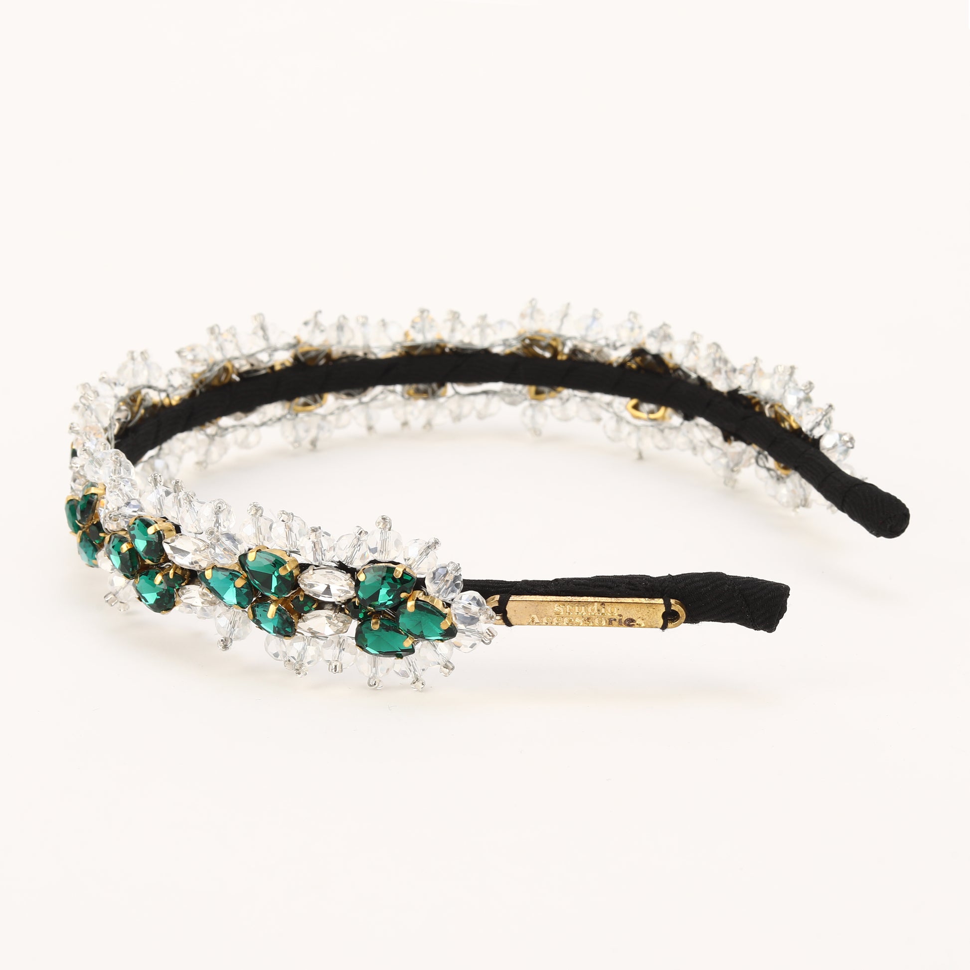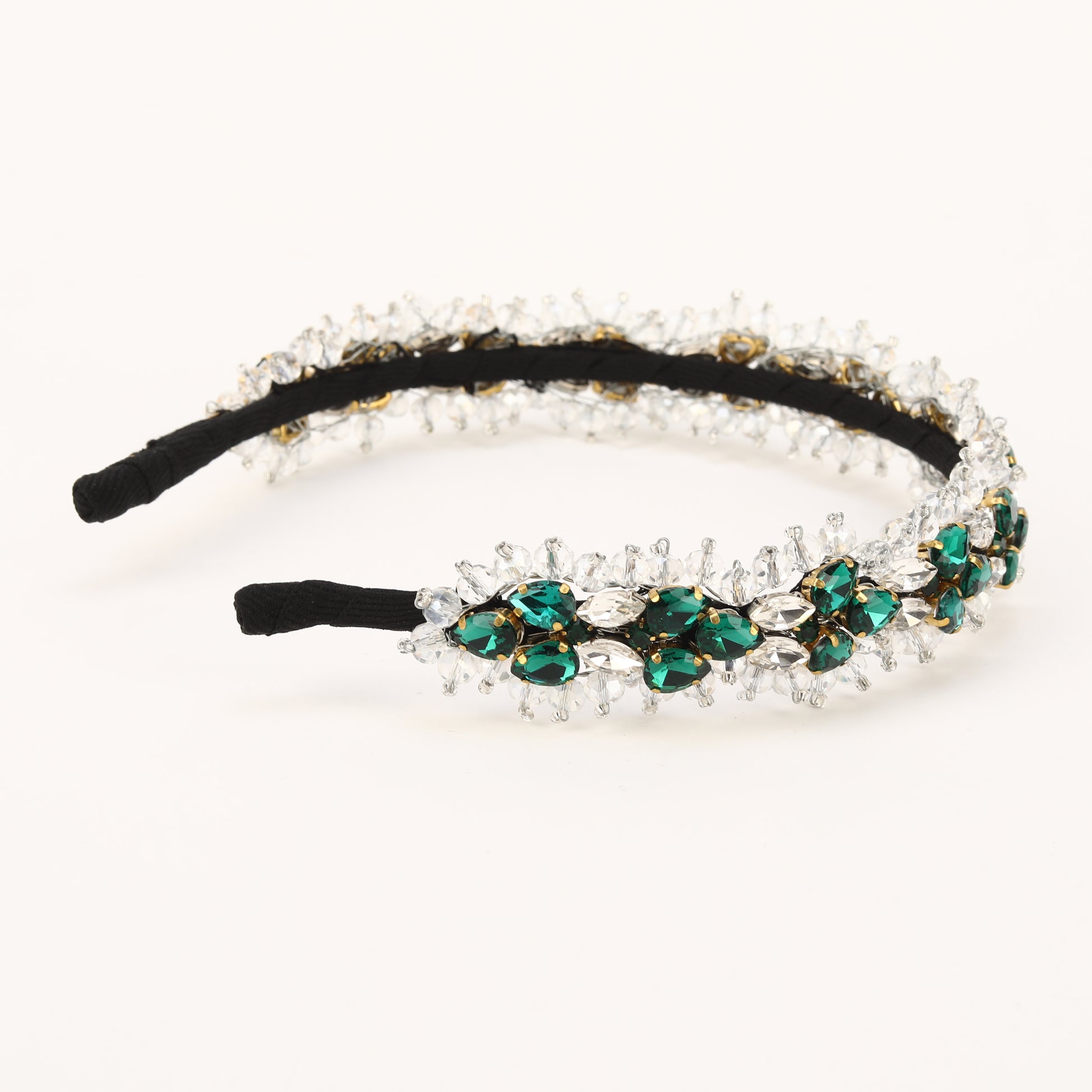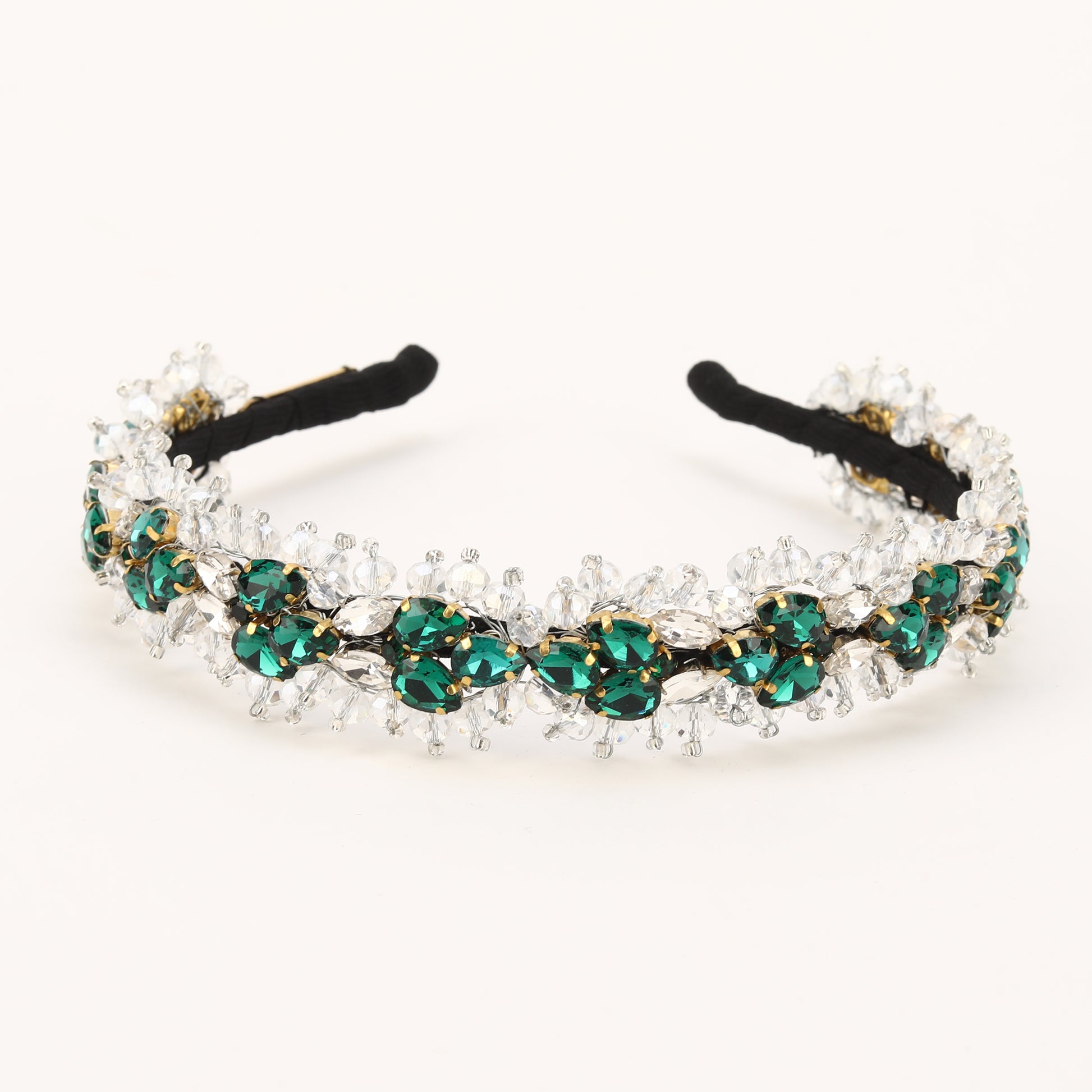 This elegant hand-beaded hairband features green and silver crystals and beads delicately woven together to create a stunning accessory. The green hues add a touch of luxury, while the silver accents provide a sophisticated contrast. Perfect for adding a touch of glamour to any hairstyle, this hairband exudes timeless beauty and style.This exquisite handcrafted hairband features a mesmerizing combination of green and silver color crystals and beads. Each carefully chosen element adds a touch of elegance and sophistication to any hairstyle, making it perfect for special occasions or adding a glamorous flair to everyday looks. Crafted with meticulous attention to detail, this hair accessory is sure to make a statement and elevate your style to the next level..