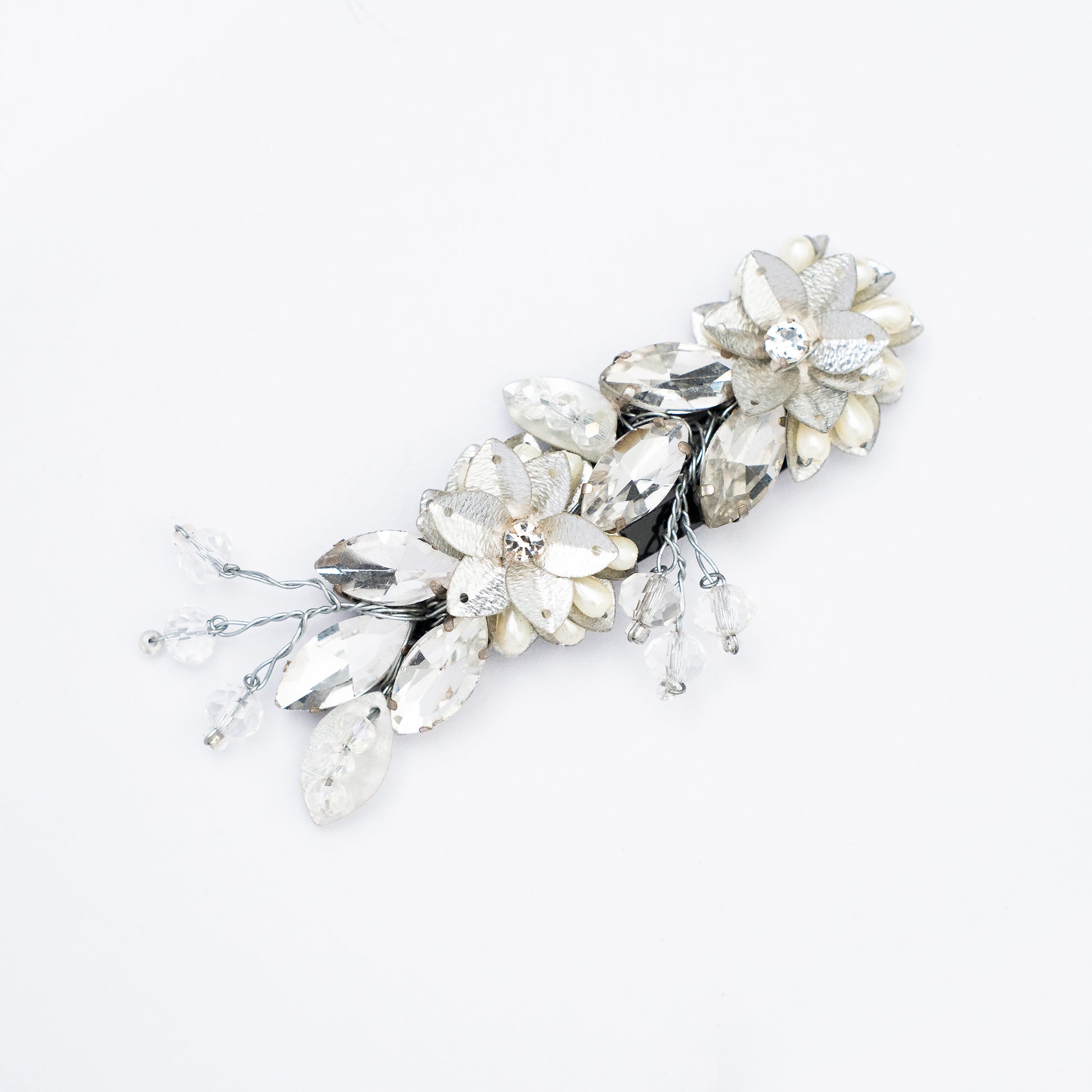 Bornflash Crystal, sequins, beads and pearls pembellished Silver Bridal hand beaded flower Wedding Party wear Tic Tac Hairclip set in steel.