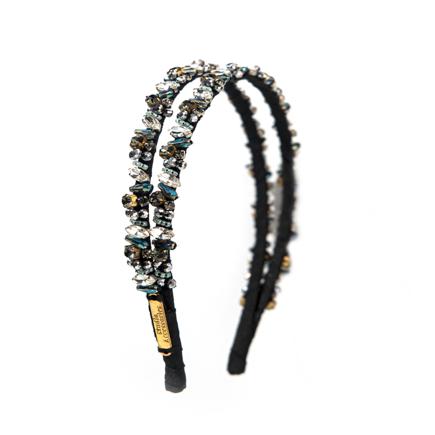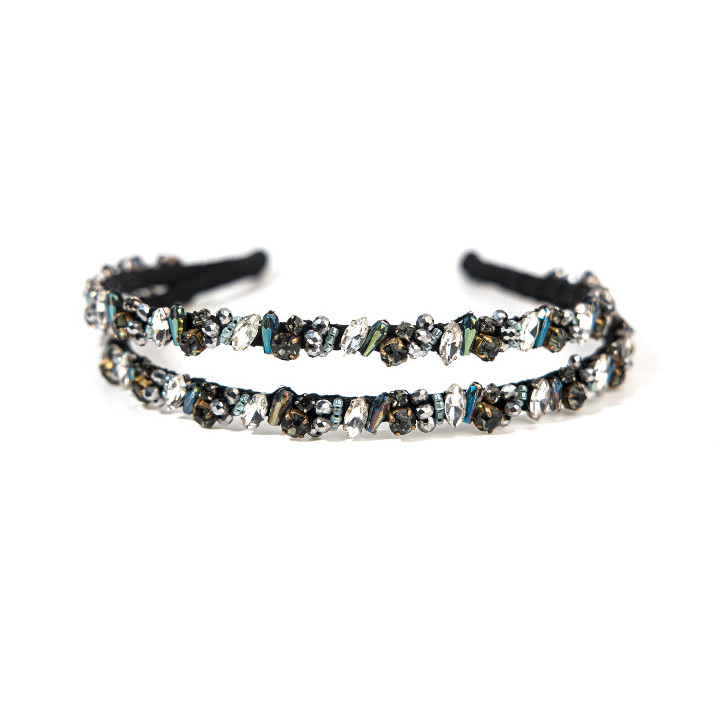 Add a stylish touch to your outfit with this double layer handcrafted hairband embellished with crystal and beads..