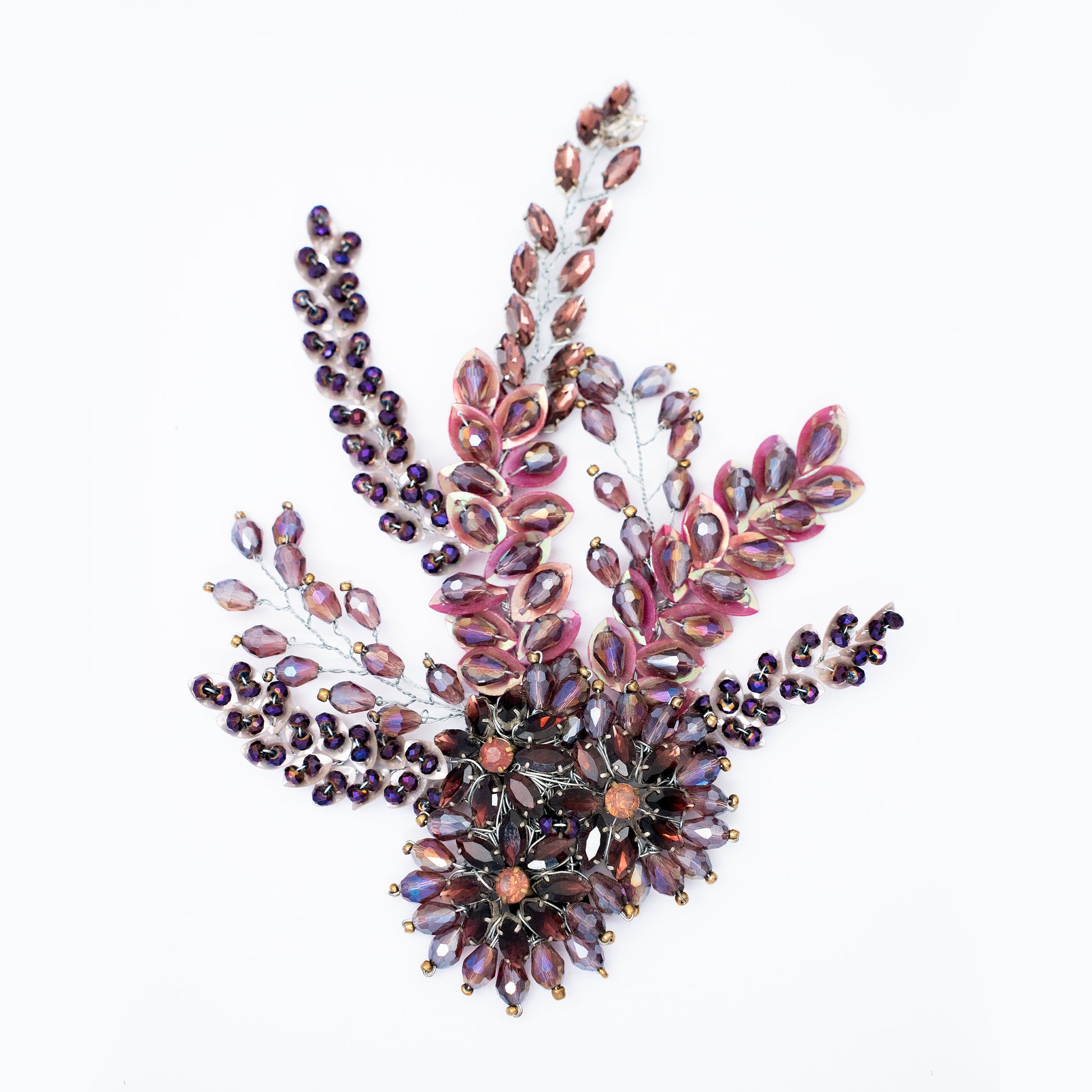 Bornflash Crystal and beads embellished Bridal hand beaded flower Wedding Party wear Tic Tac Hair Clip set in steel.