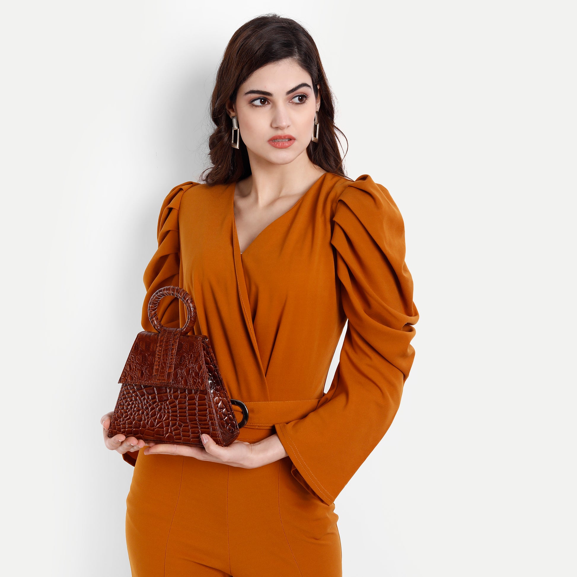 Add a stylish touch to your outfit with this Triangle shape Brown Leather bag..