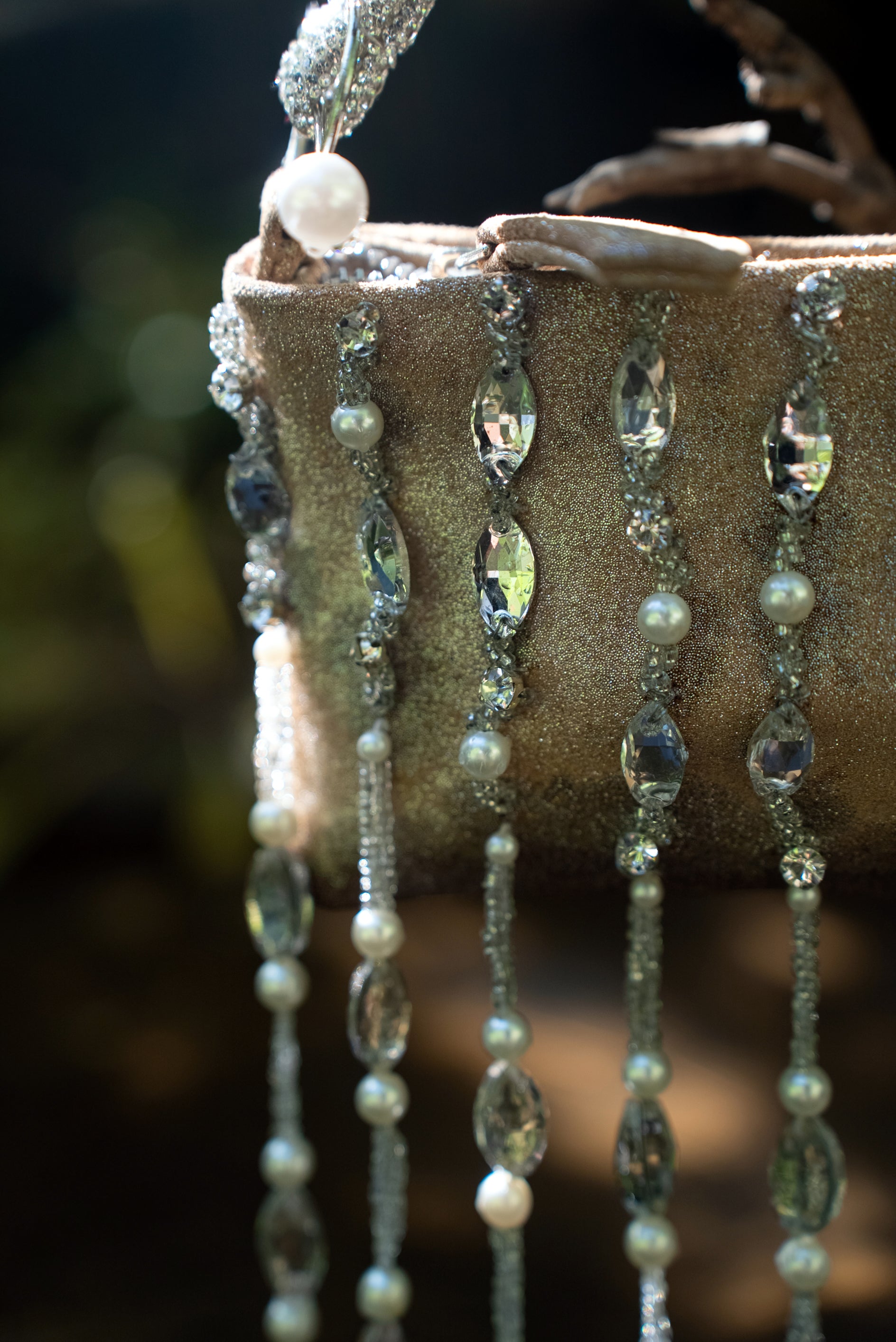 This elegant beige clutch bag is perfect for elevating any evening ensemble. Adorned with intricate silver Crystal, Beads and Pearls beaded Tassels all over it sparkles with the addition of delicate Silver crystals, beads and pearls Tassels like due drops that catch the light at every angle. The beaded handle adds a touch of luxury, ensuring both style and comfort. This clutch is the epitome of understated glamour, blending classic craftsmanship with modern design, making it a statement piece for any occasion..