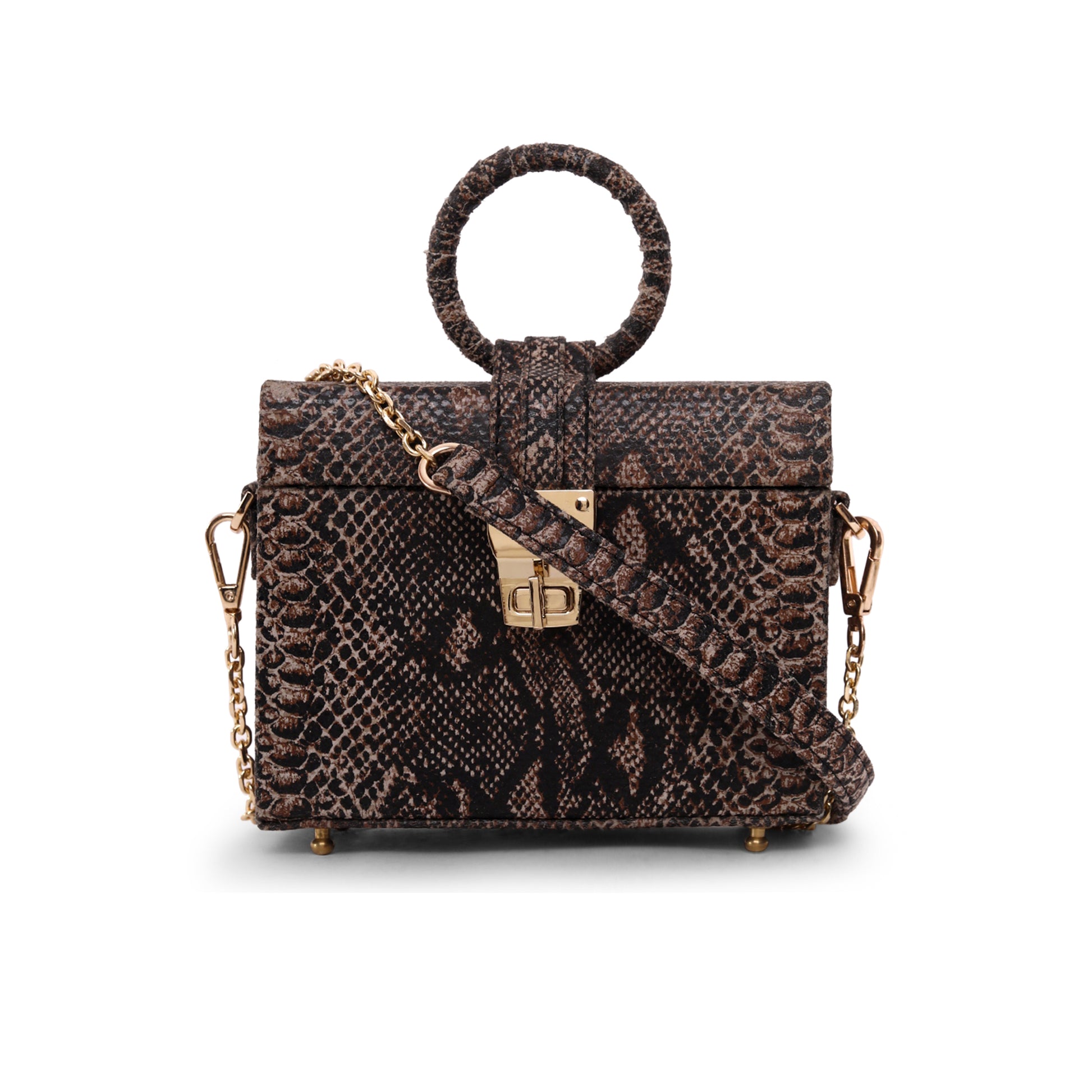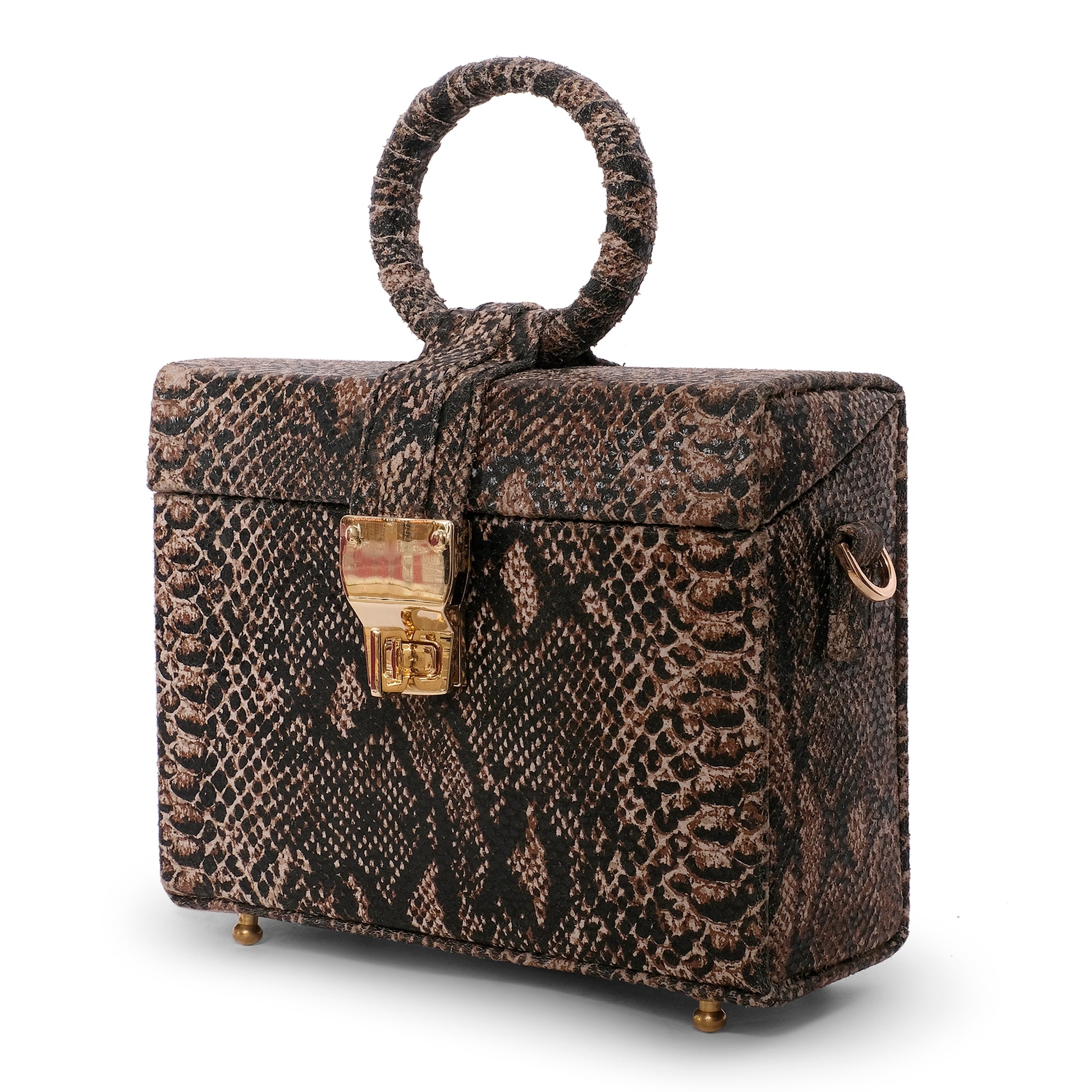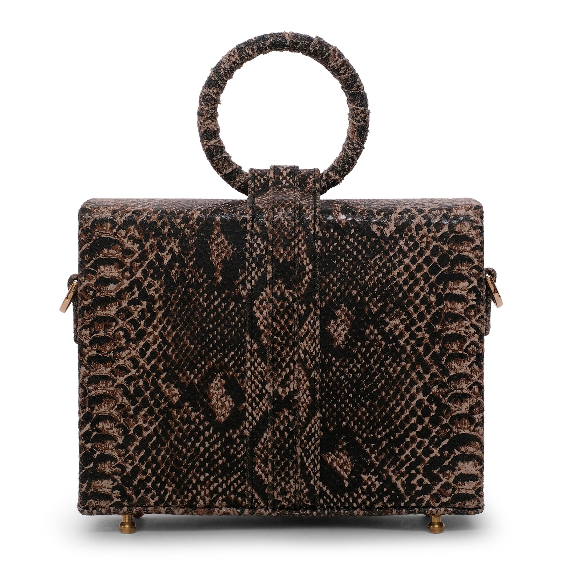 Add a stylish touch to your outfit with this Snake Print Grey Leather bag.,