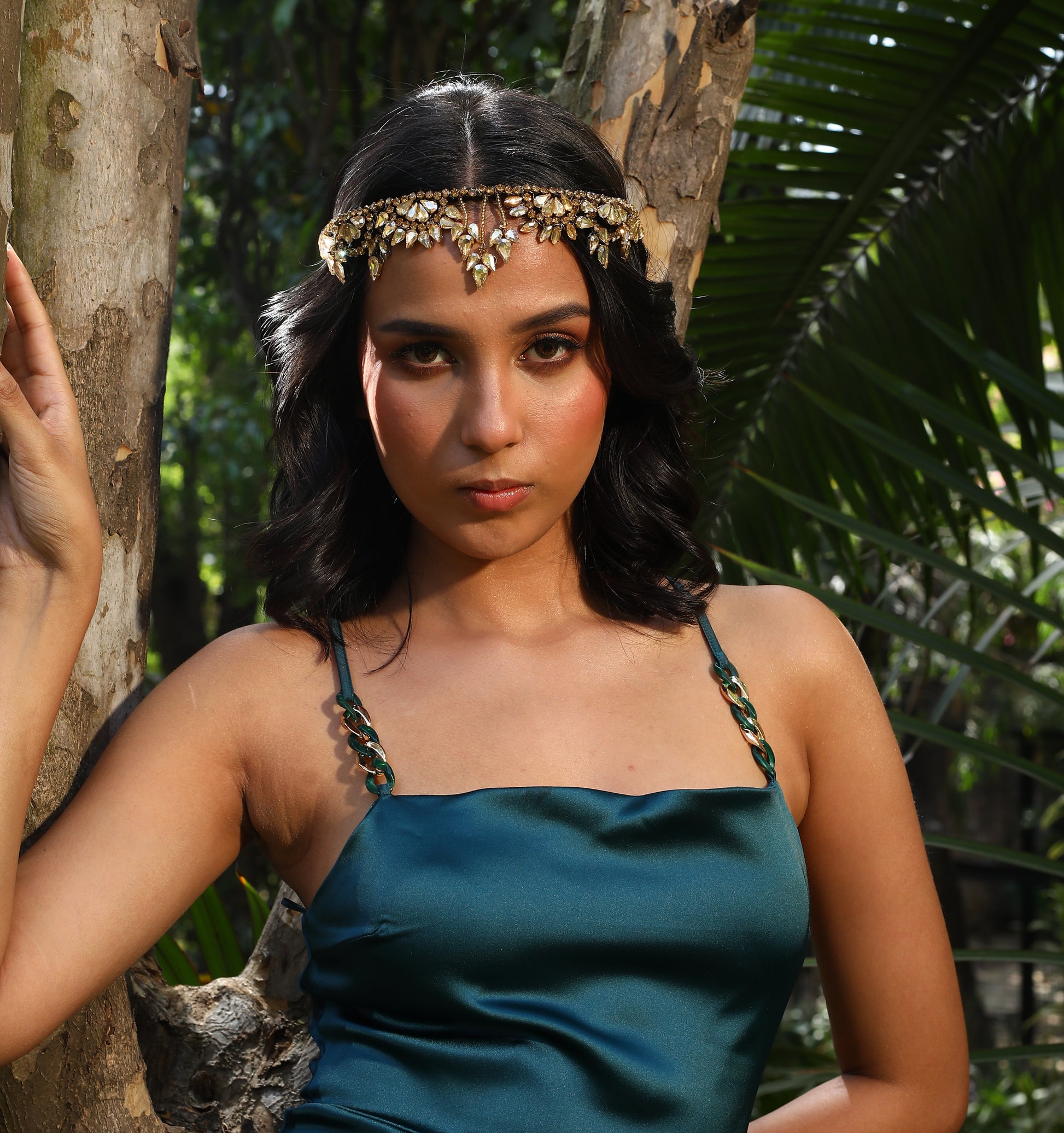Elevate your look with the breathtaking Eleganzaa headgear, perfectly designed to embody the timeless beauty of the mathapatti. Originally an ornament of royalty, the matha patti has been a cherished part of the solah singar ceremony for centuries, and symbolizes the grace and radiance of goddess Lakshmi.