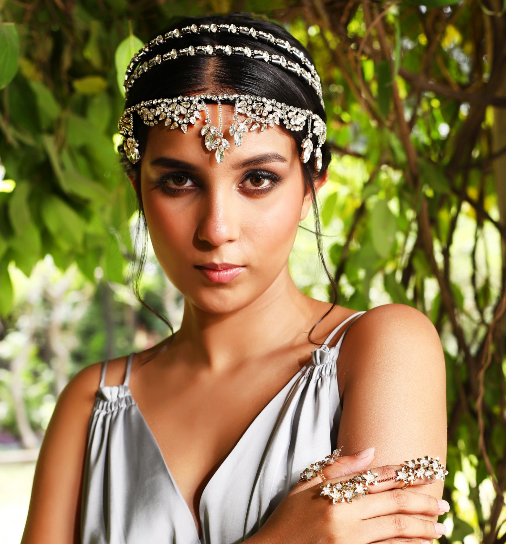 Elevate your look with the breathtaking Eleganzaa headgear, perfectly designed to embody the timeless beauty of the mathapatti. Originally an ornament of royalty, the matha patti has been a cherished part of the solah singar ceremony for centuries, and symbolizes the grace and radiance of goddess Lakshmi.