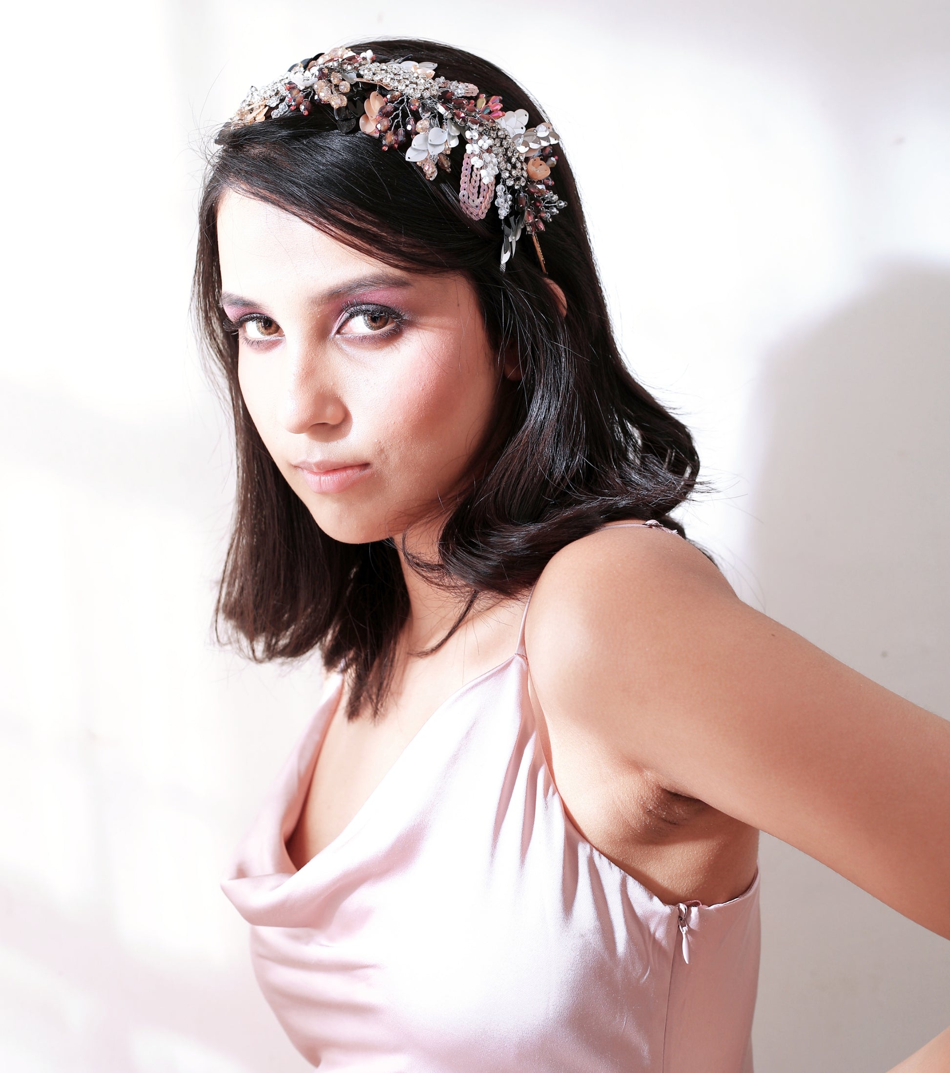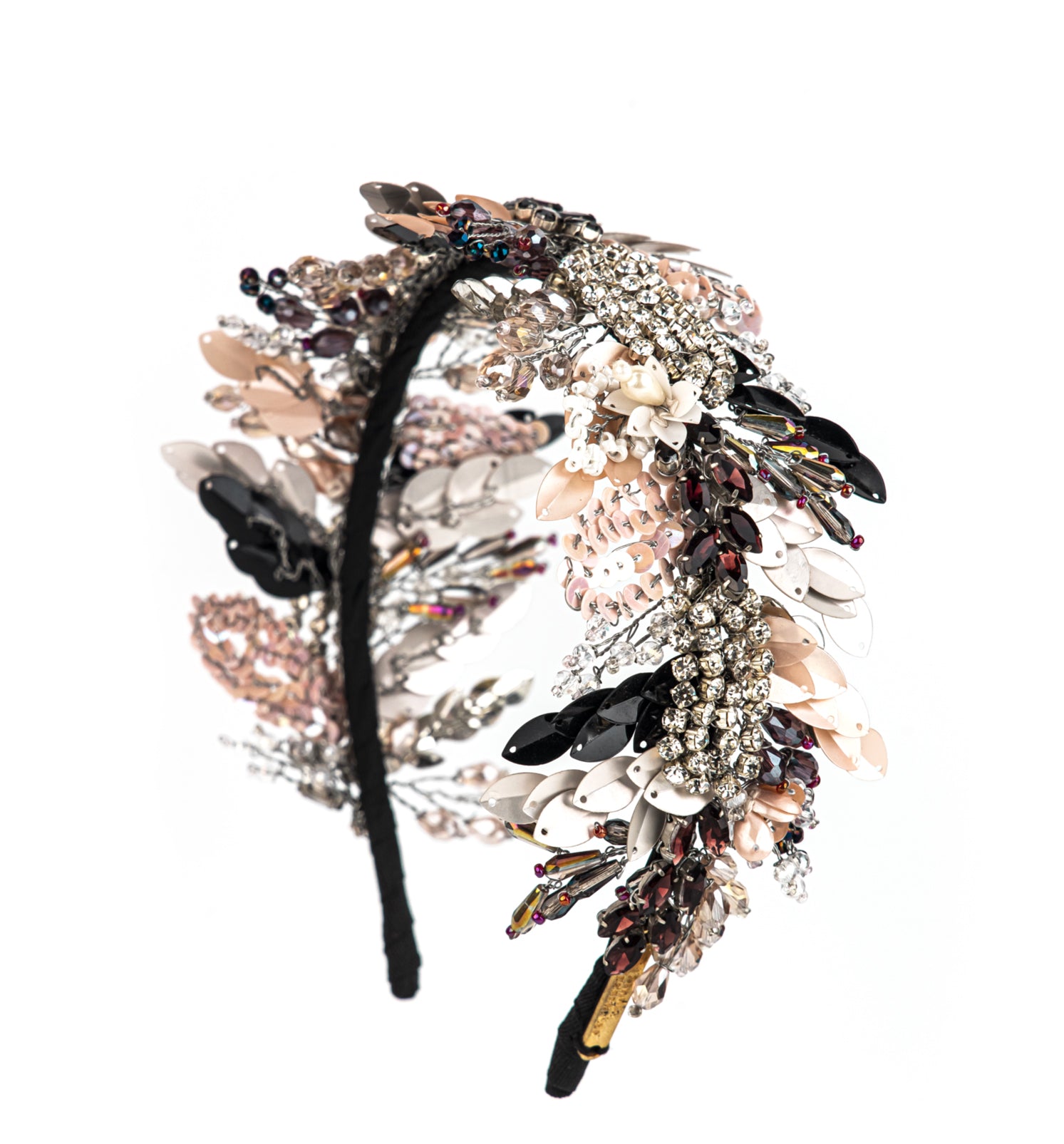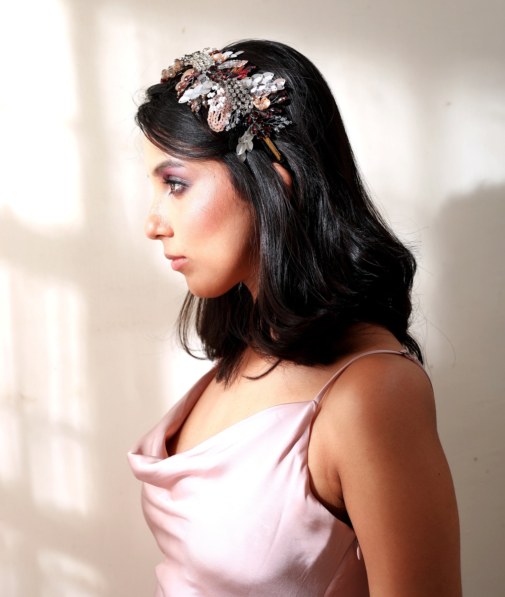 Bornflash Crystal, Sequins, Pearls and beads embellished Multicolor Bridal hand beaded flower Wedding Party wear Hairband..