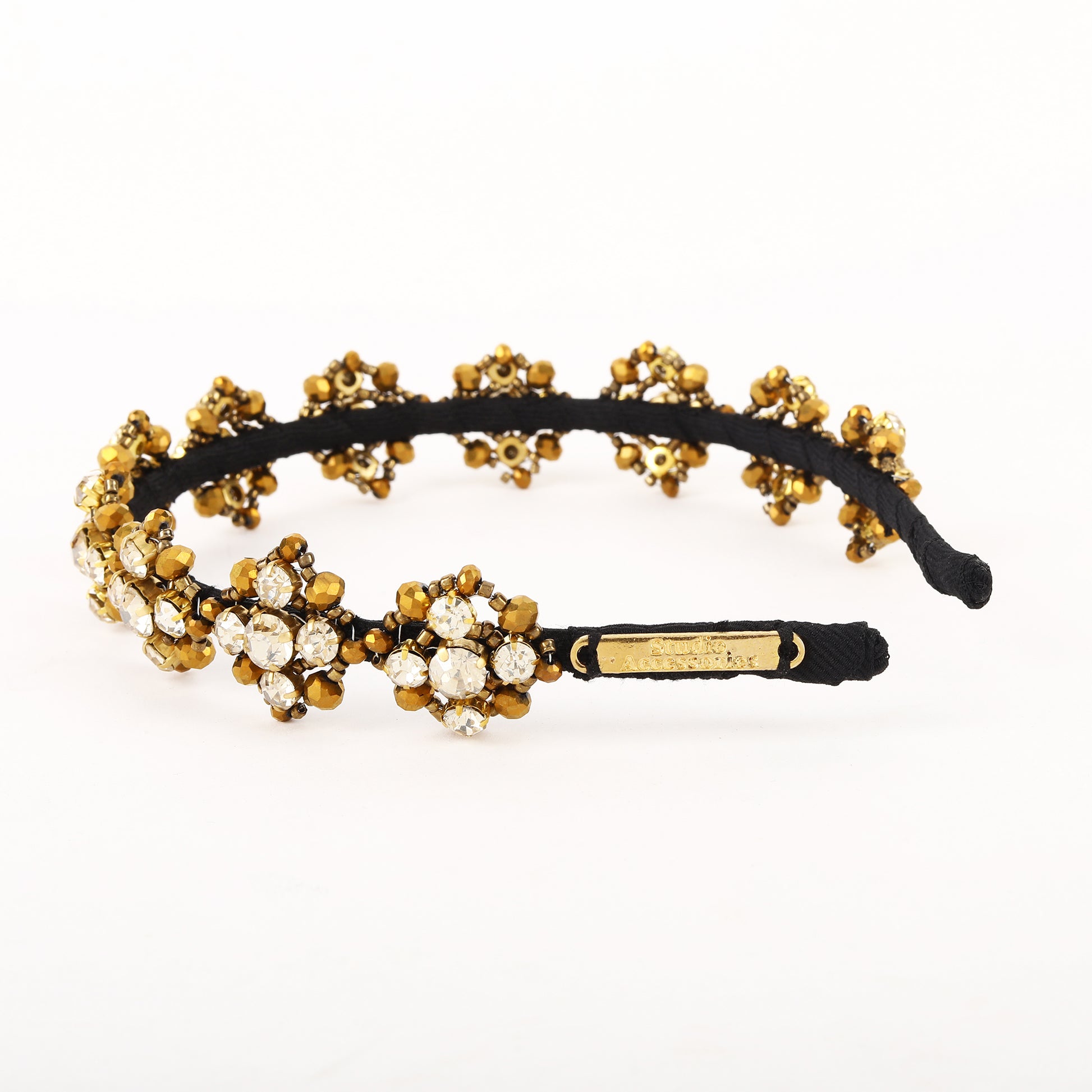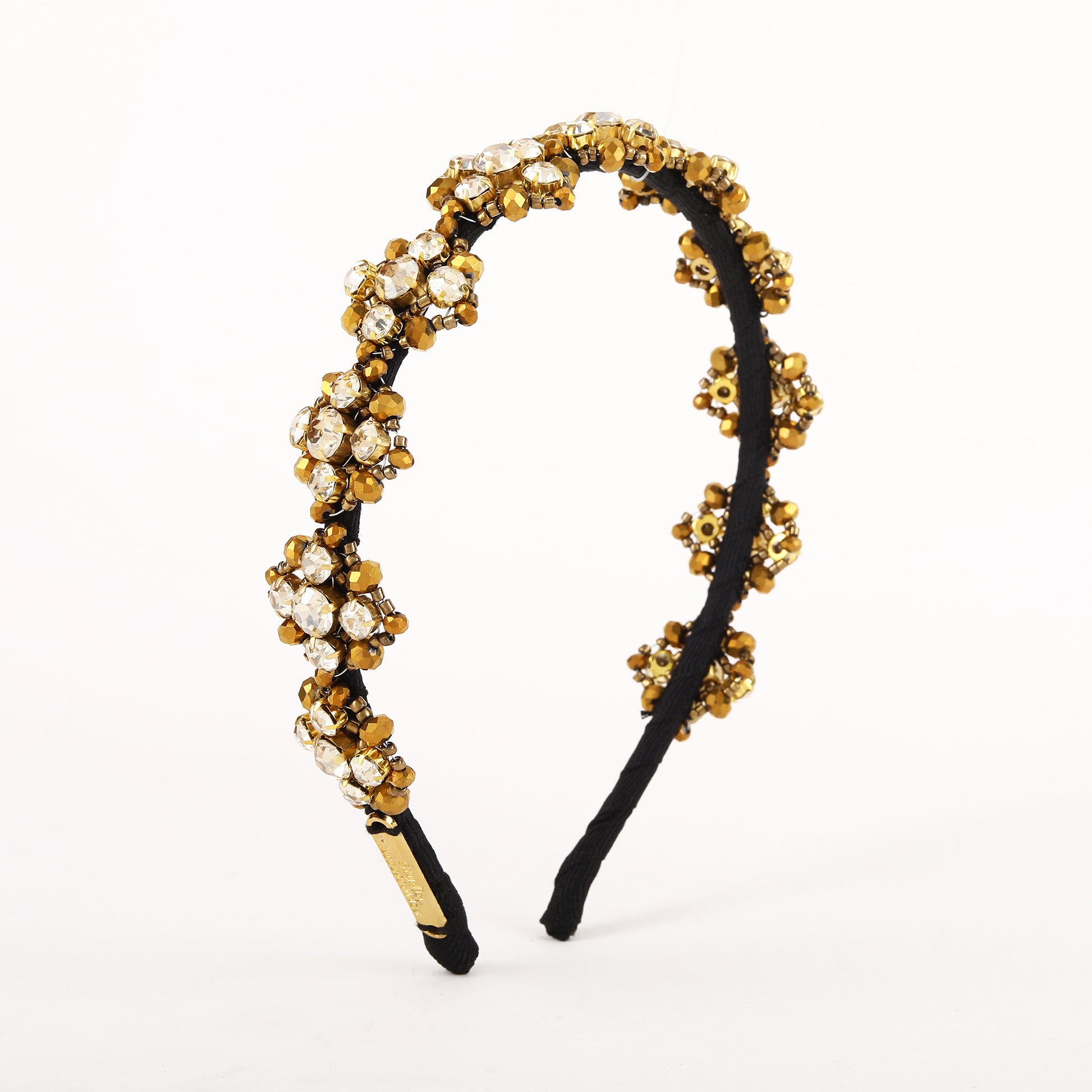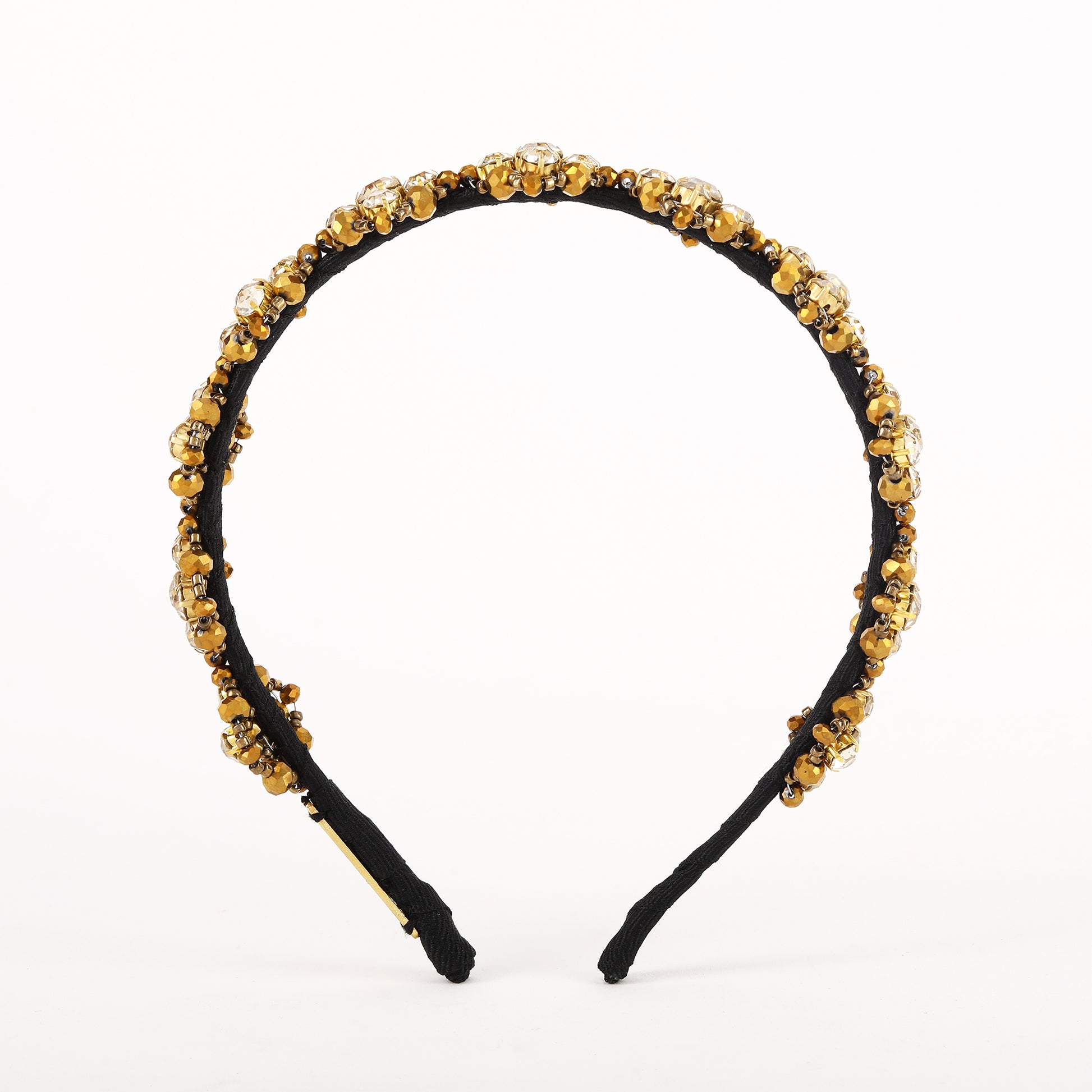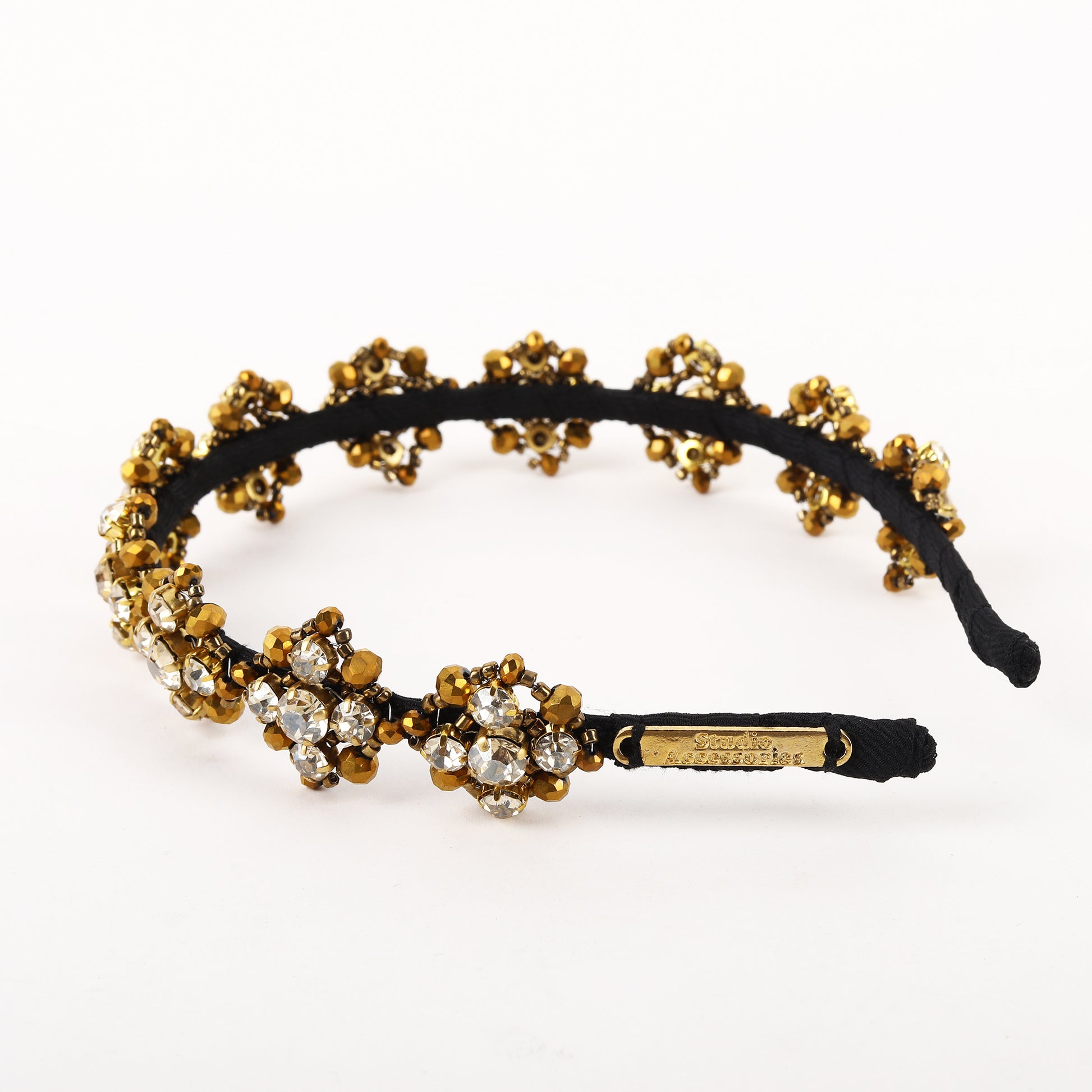 Adorn your hair with elegance and charm with our exquisite handcrafted hairband, adorned with shimmering gold and silver crystals and beads. Each intricate detail is meticulously crafted to create a dazzling accessory that adds a touch of sophistication to any hairstyle. Whether you're attending a special occasion or simply want to elevate your everyday look, this hairband is sure to make a statement. Embellish your locks with timeless beauty and grace with this stunning accessory..
