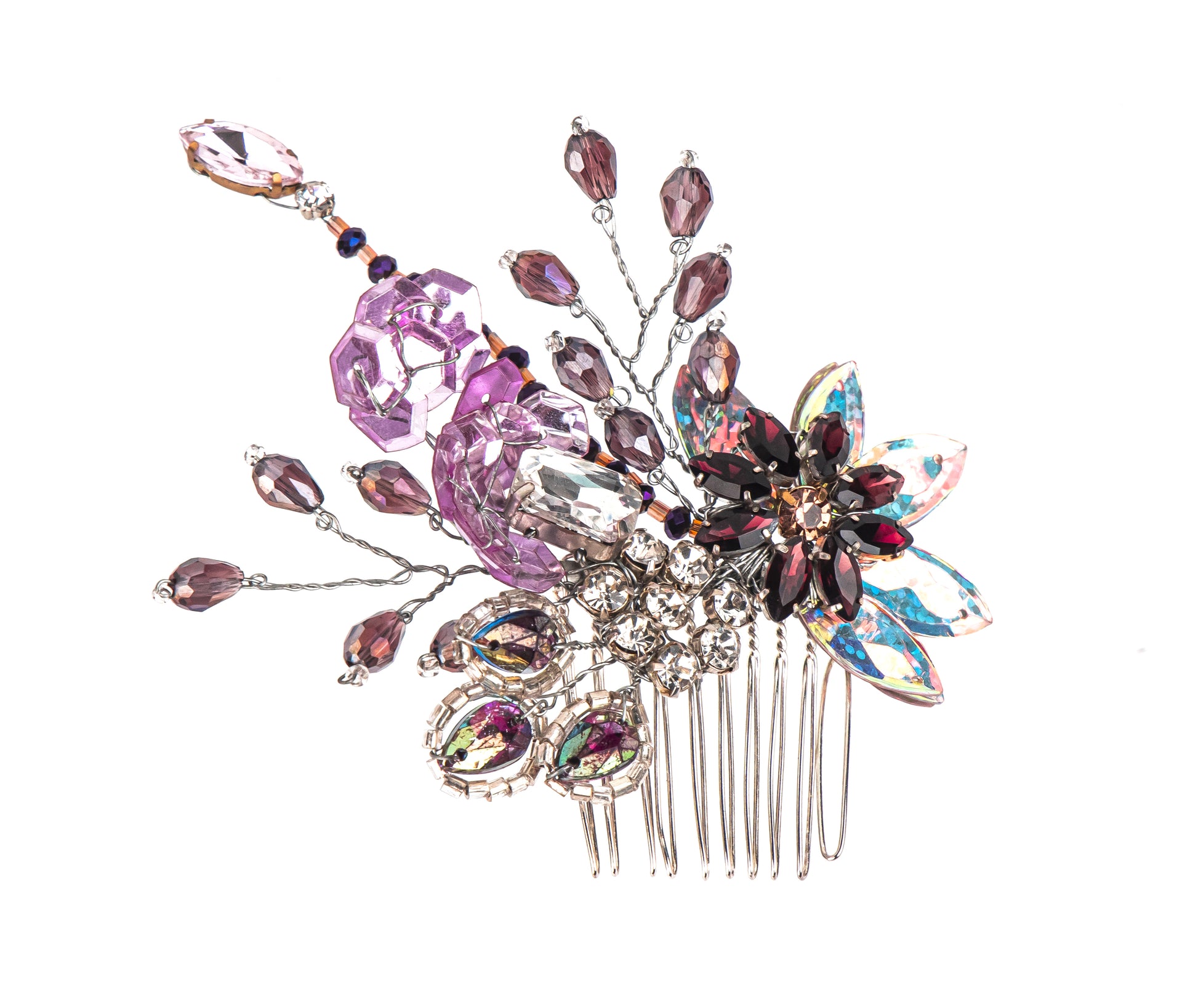 Bornflash Crystal, Sequins, and beads embellished Multicolor Bridal hand beaded flower Wedding Party wear Hair Comb set in steel.
