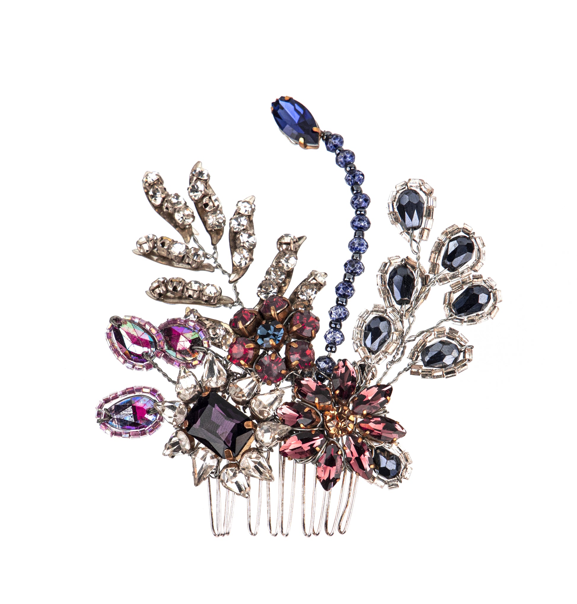 Bornflash Crystal, Sequins, and beads embellished Multicolor Bridal hand beaded flower Wedding Party wear Hair Comb set in steel.