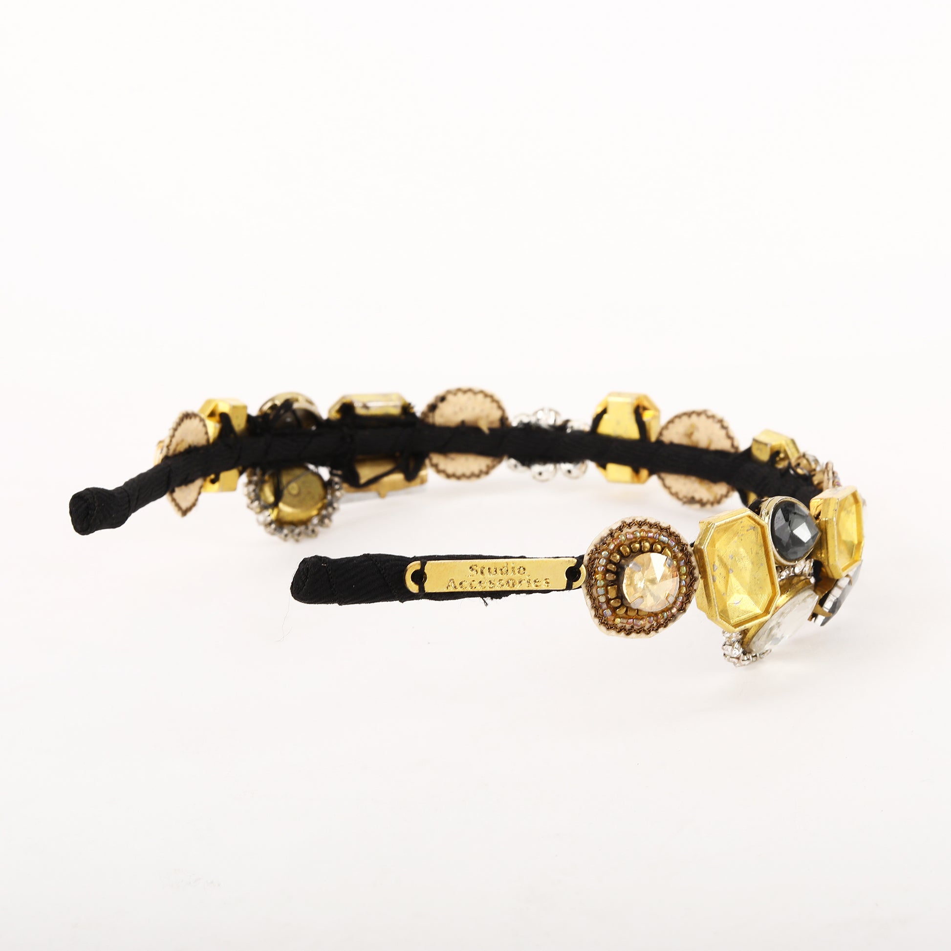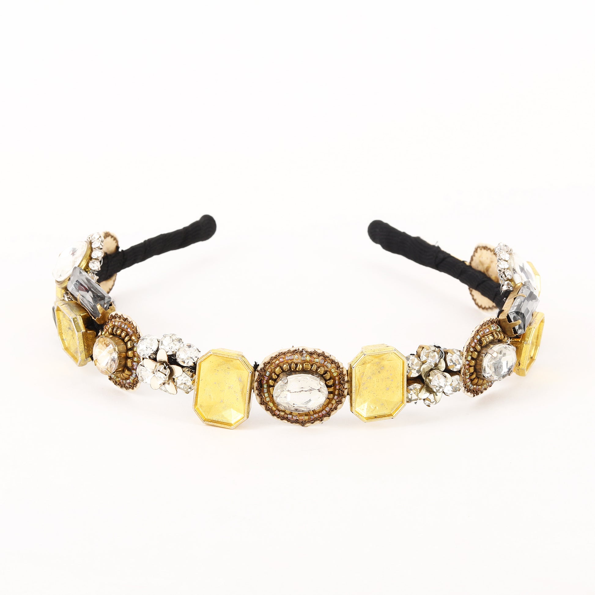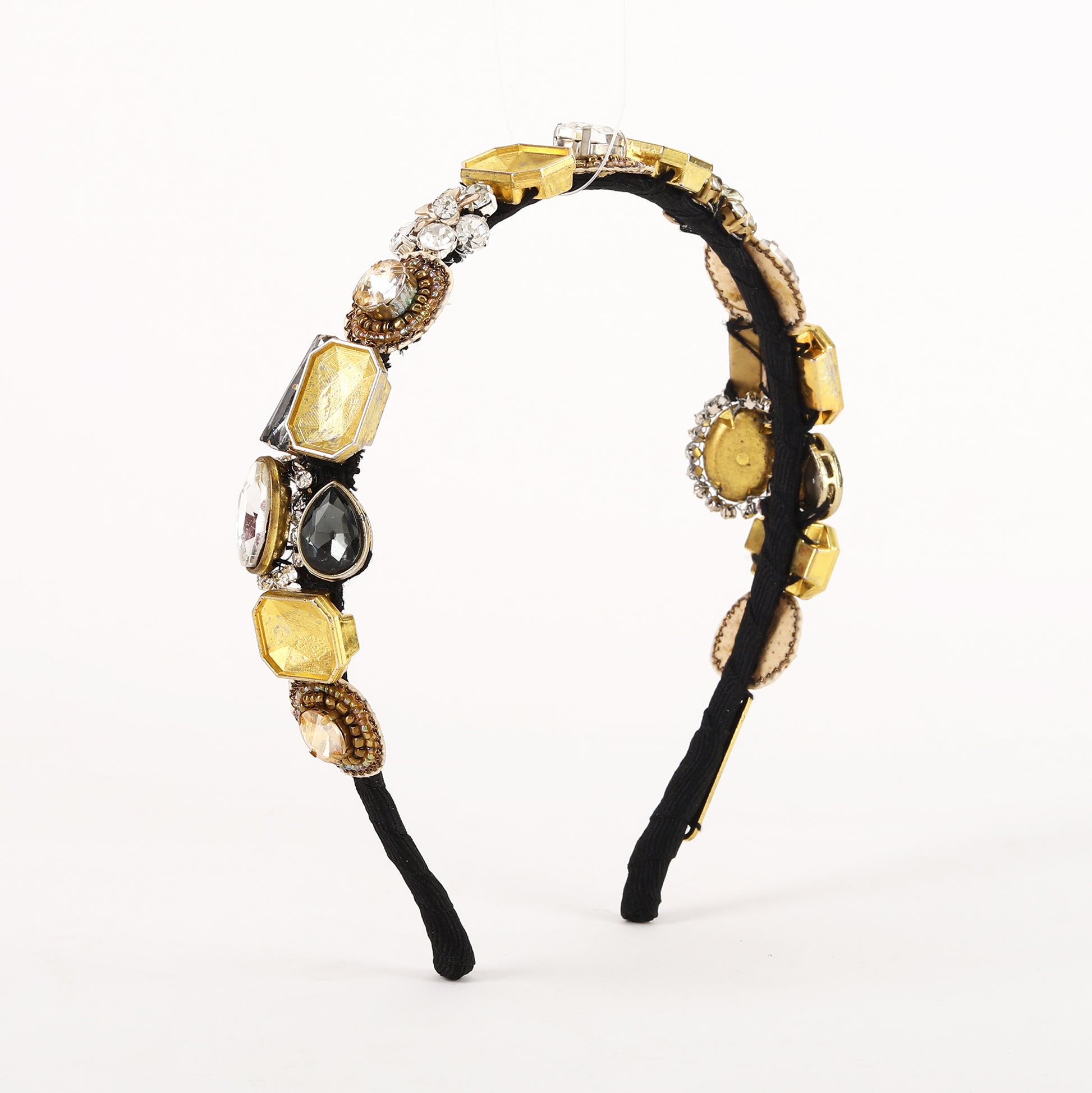 This elegant hand-beaded hairband features shimmering gold and silver crystals and beads delicately woven together to create a stunning accessory. The golden hues add a touch of luxury, while the silver accents provide a sophisticated contrast. Perfect for adding a touch of glamour to any hairstyle, this hairband exudes timeless beauty and style.