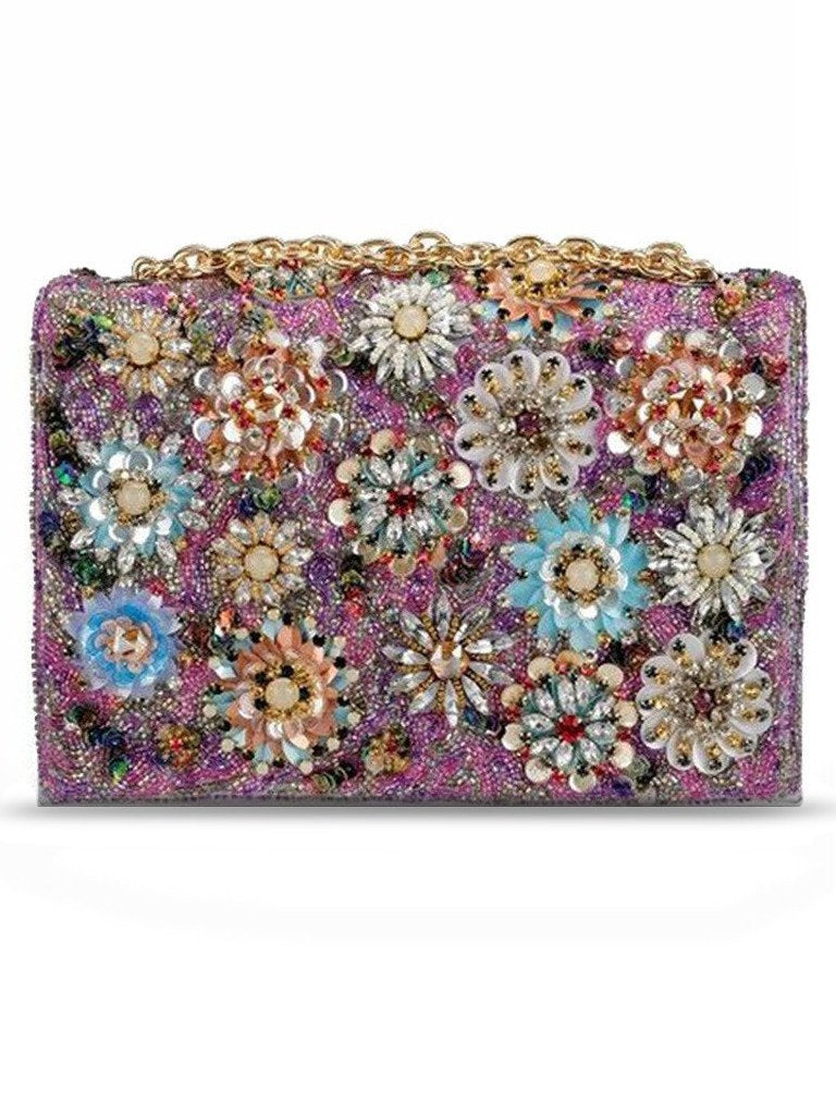 The Front Of This Large Leather Clutch Is Fully Hand Beaded In A Multicoloured Gold Floral Motif. It Has A Suede Lined Interior Large Enough For A Cellphone, Compact And Keys. The Chain Strap Can Be Worn Long Or Short Depending On The Look.