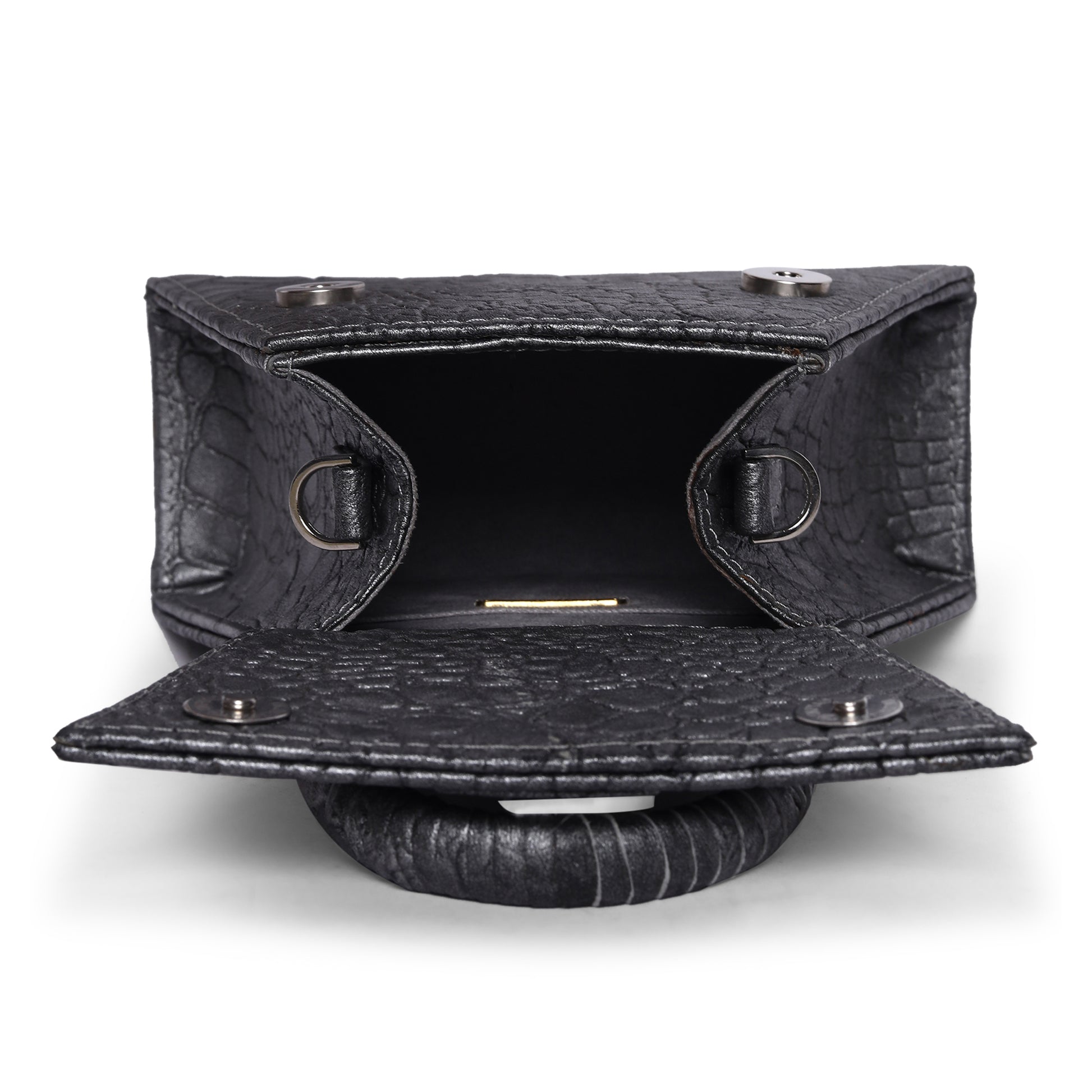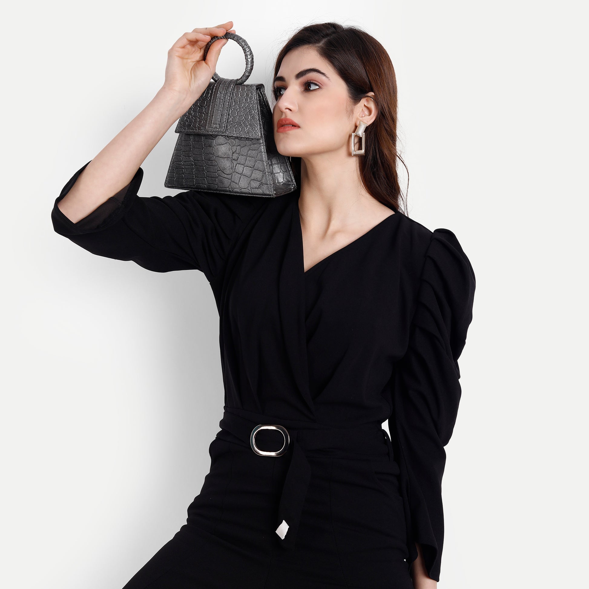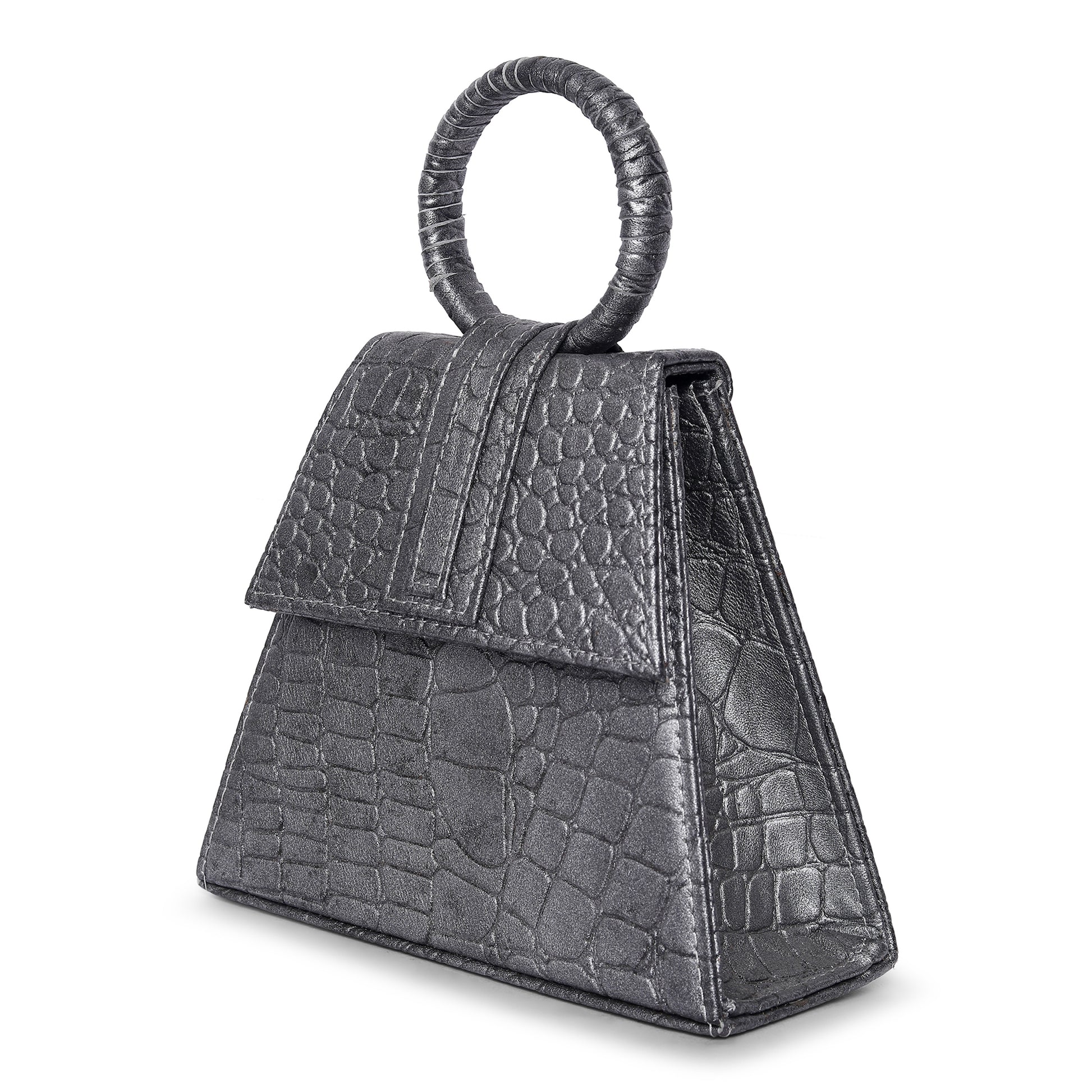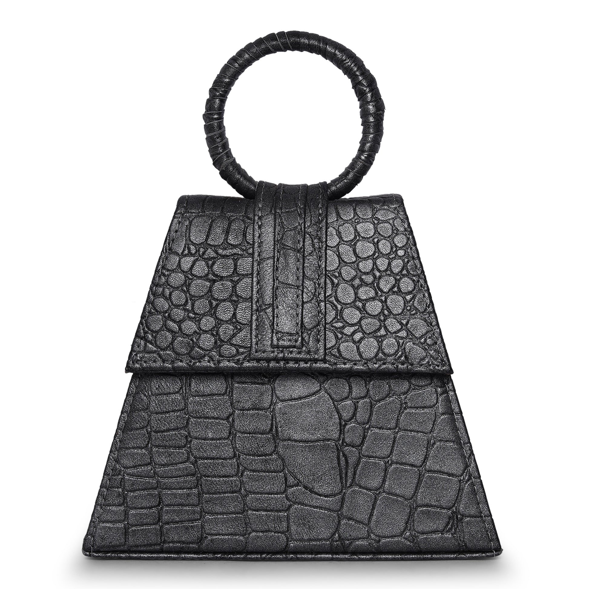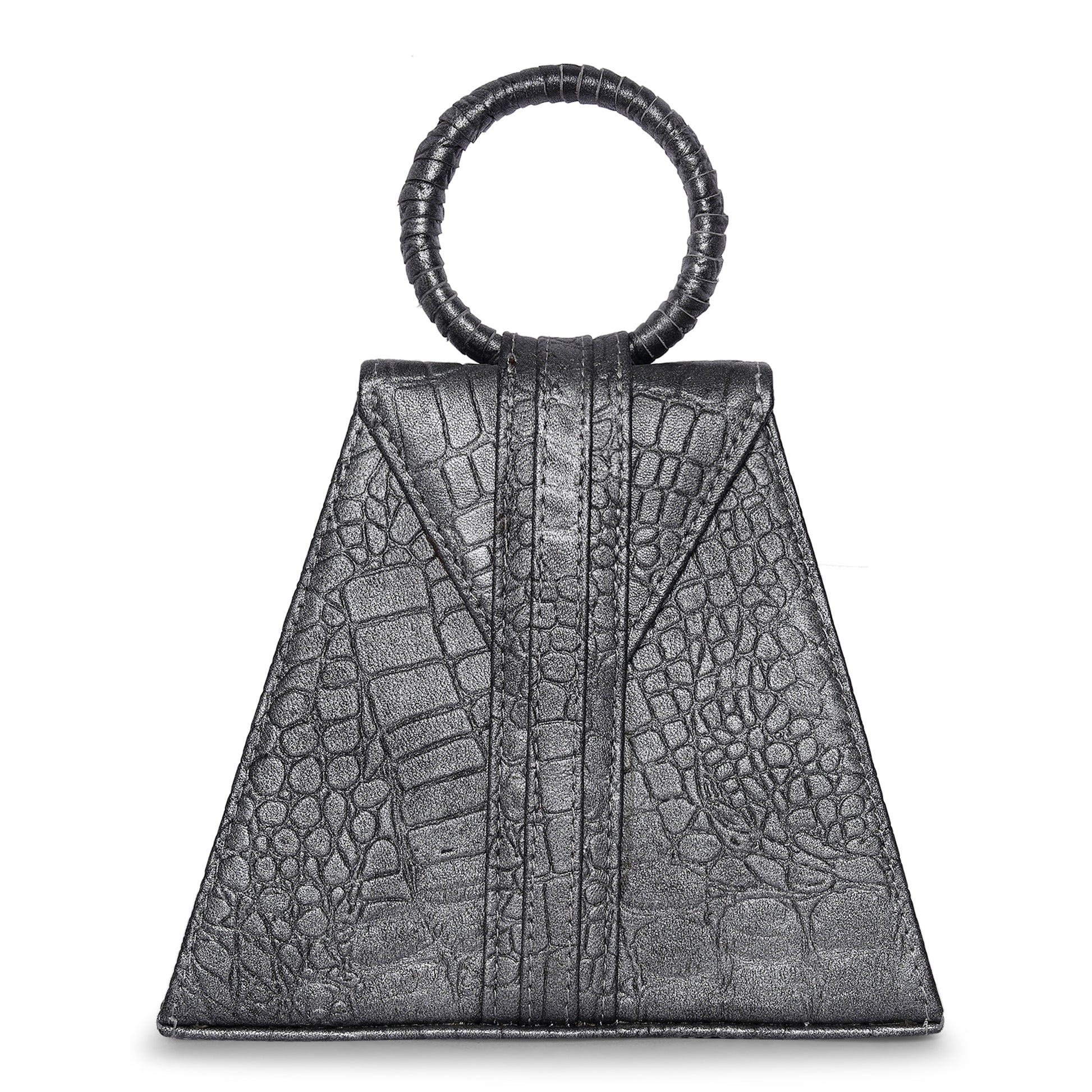 Add a stylish touch to your outfit with this Triangle shape Black Leather bag..