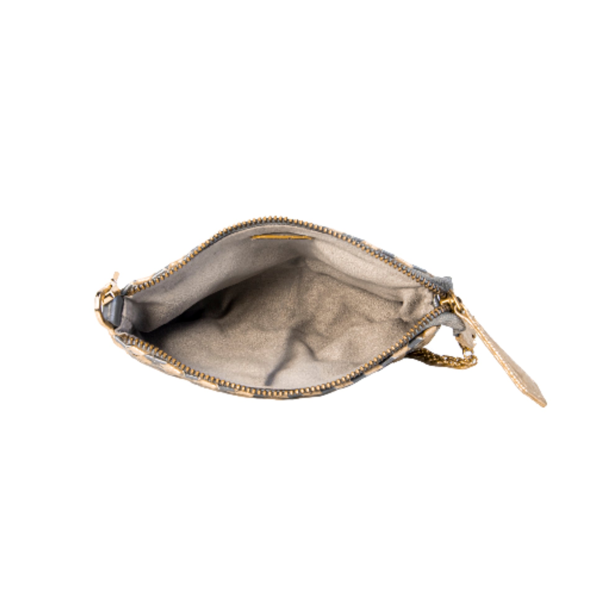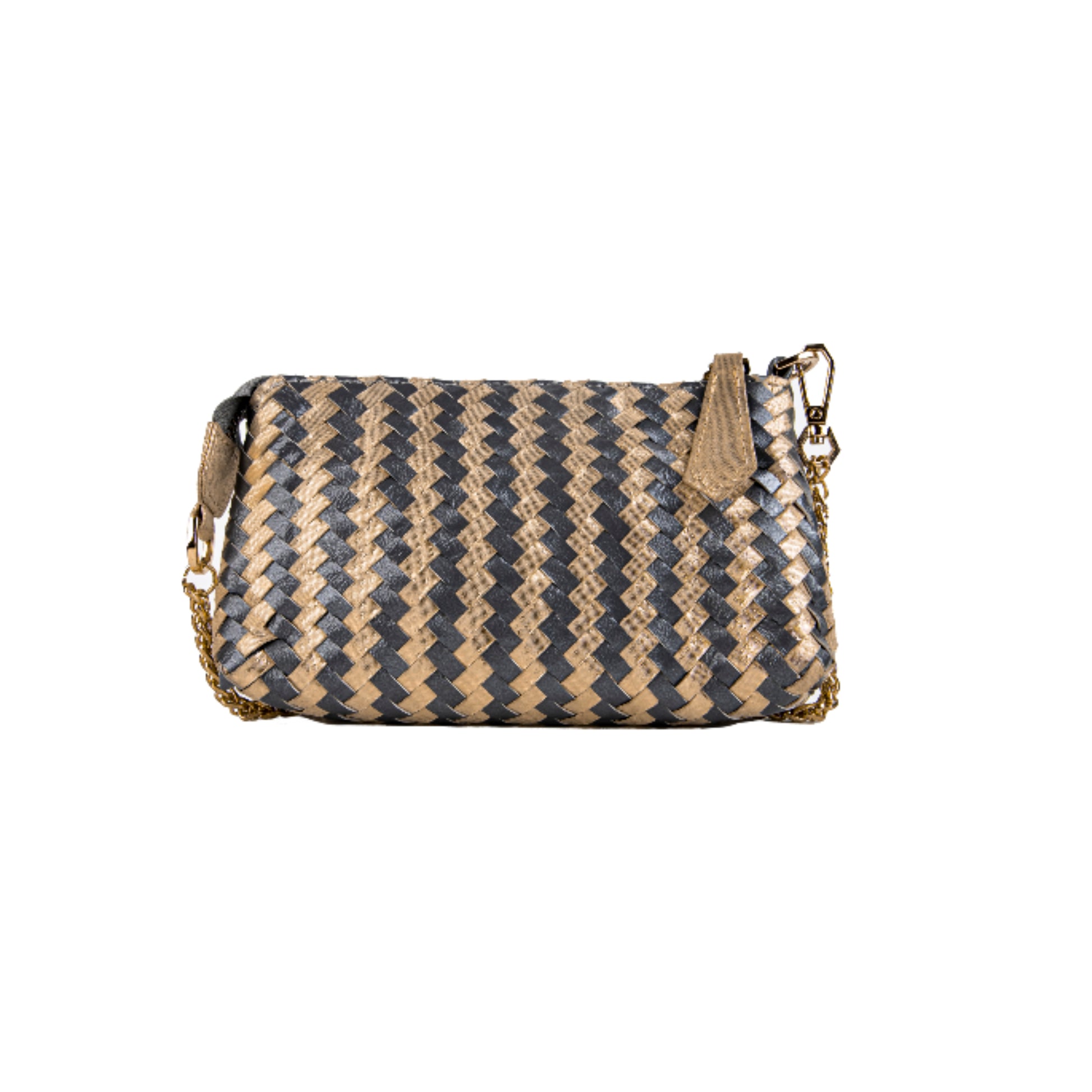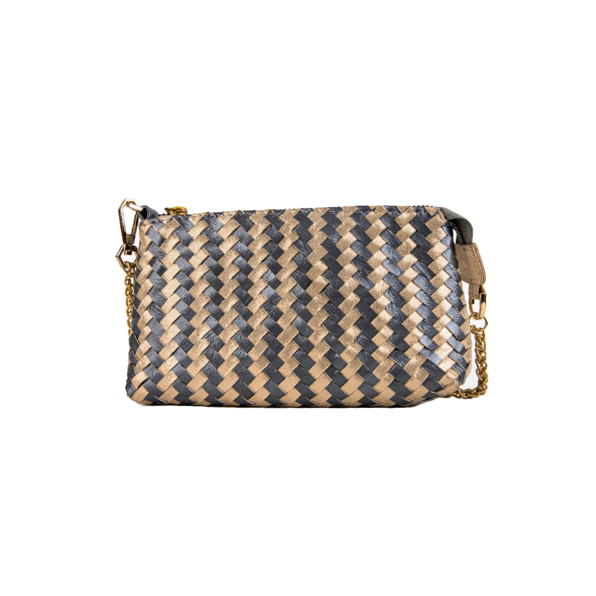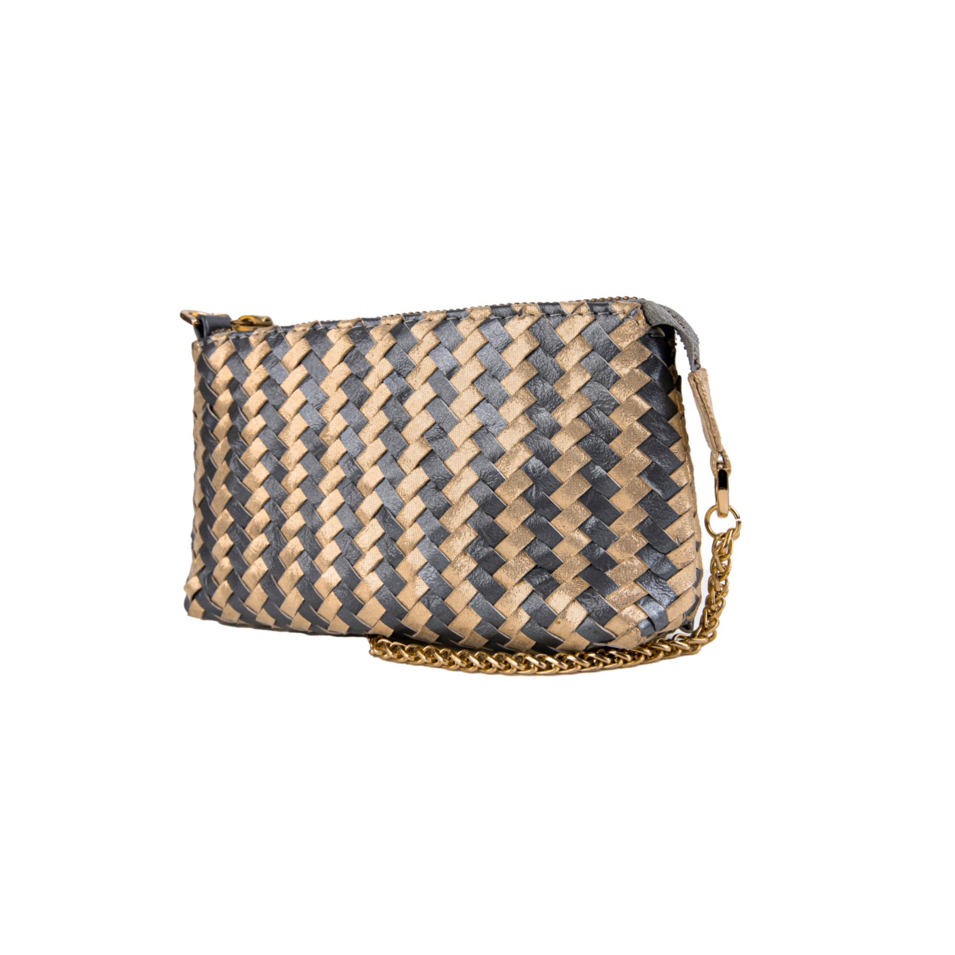 Add a stylish touch to your outfit with this soft woven leather bag.