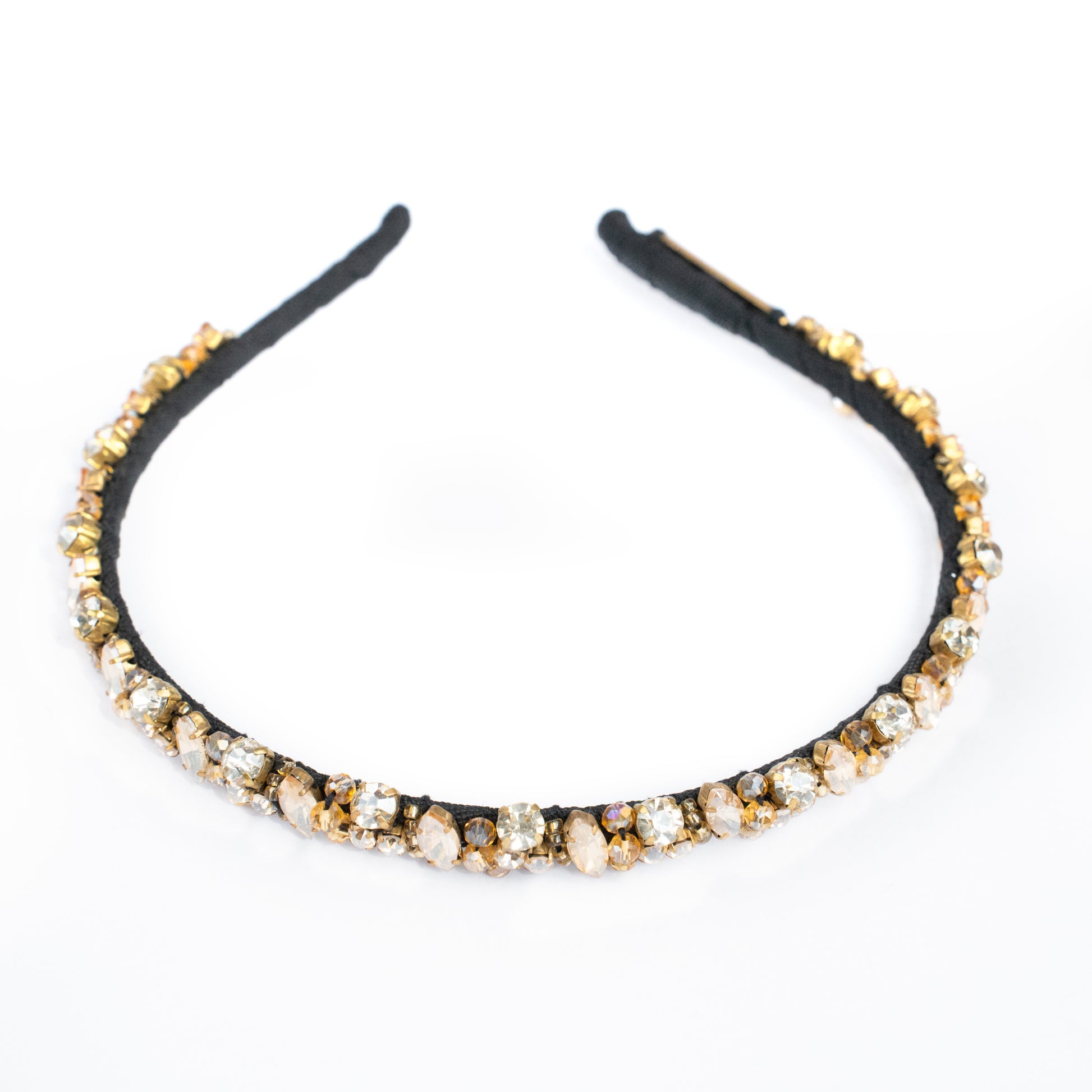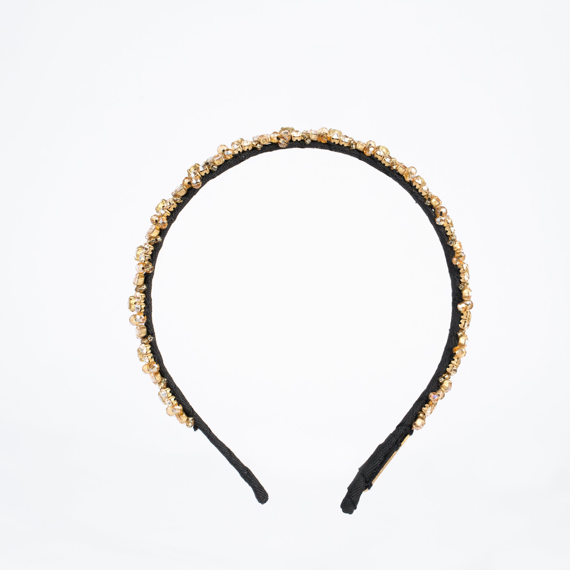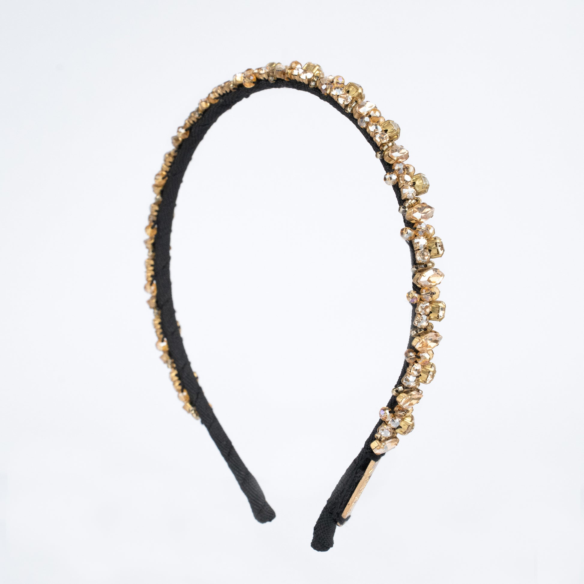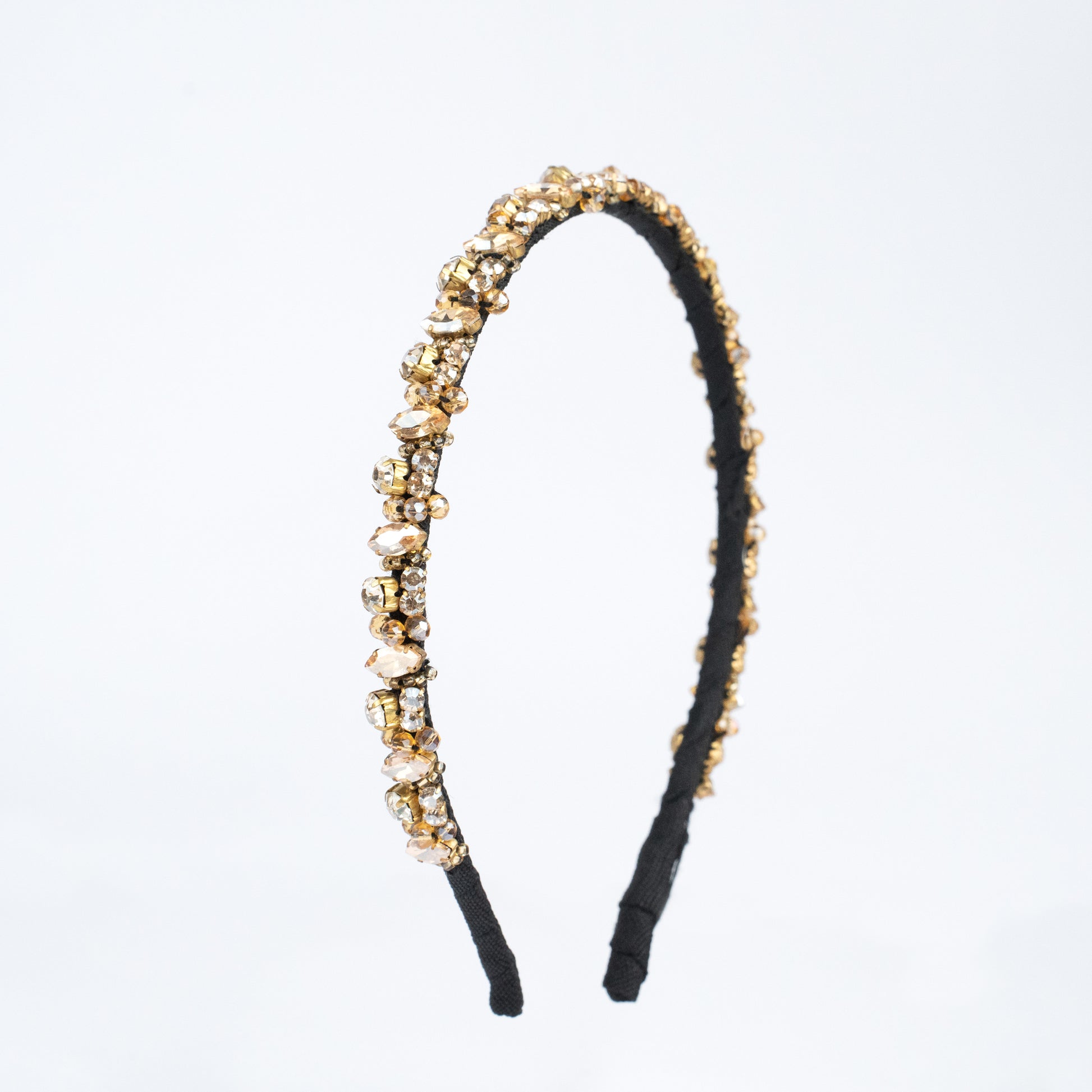 Add a stylish touch to your outfit with this handcrafted hairband embellished with crystal and beads..