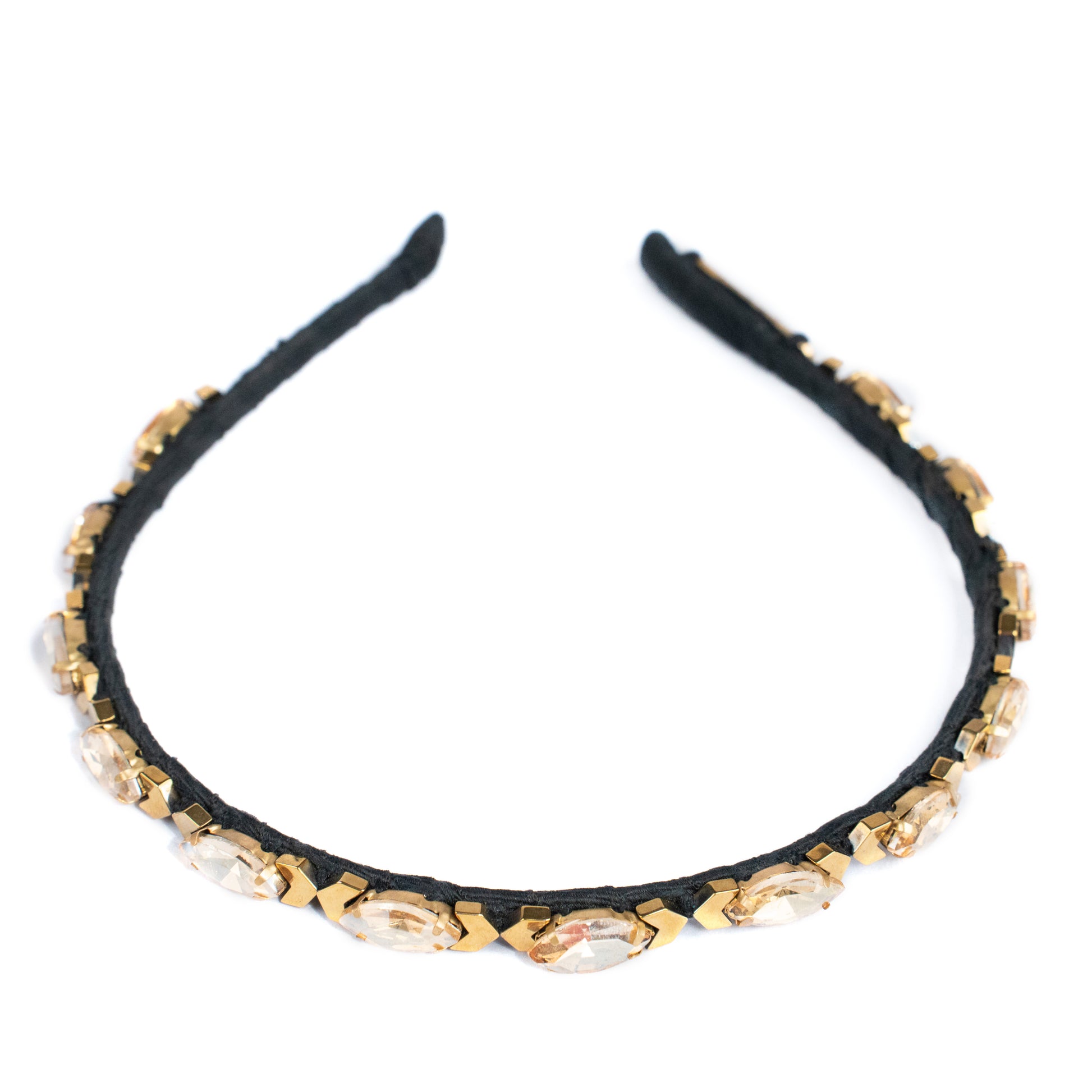 Add a stylish touch to your outfit with this handcrafted hairband embellished with crystal and beads..