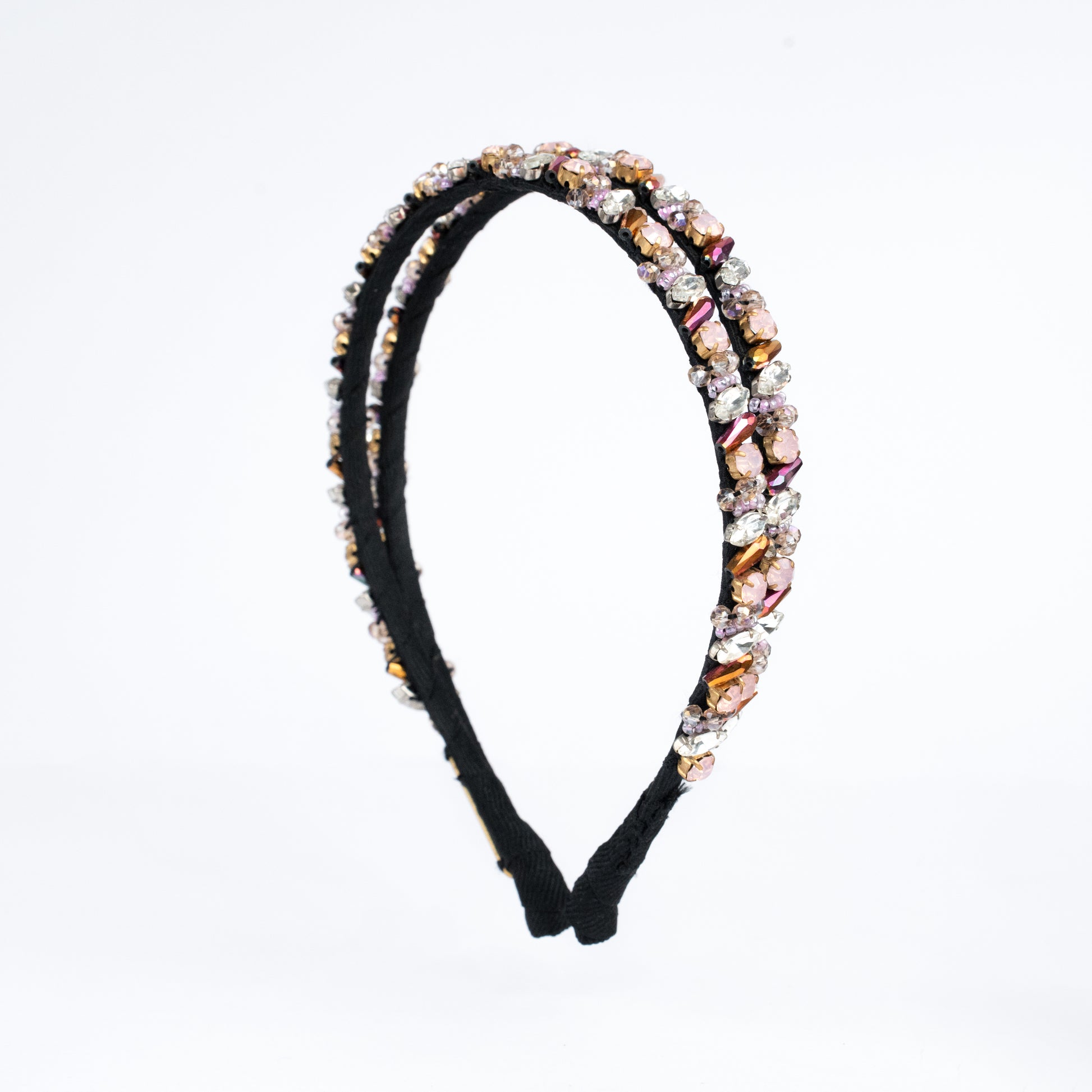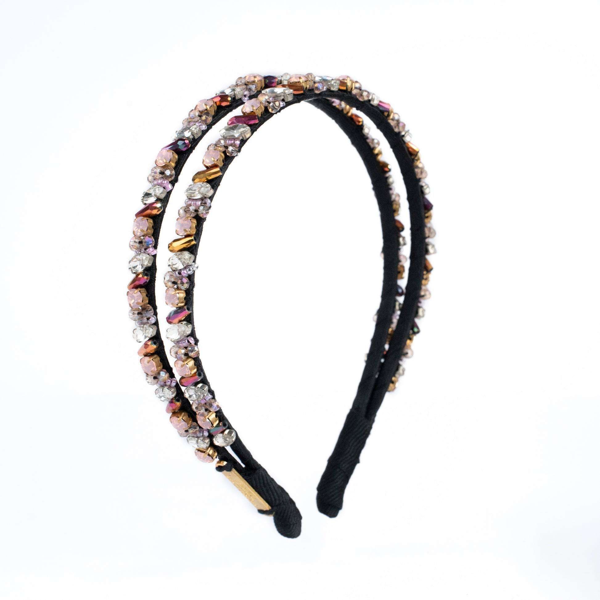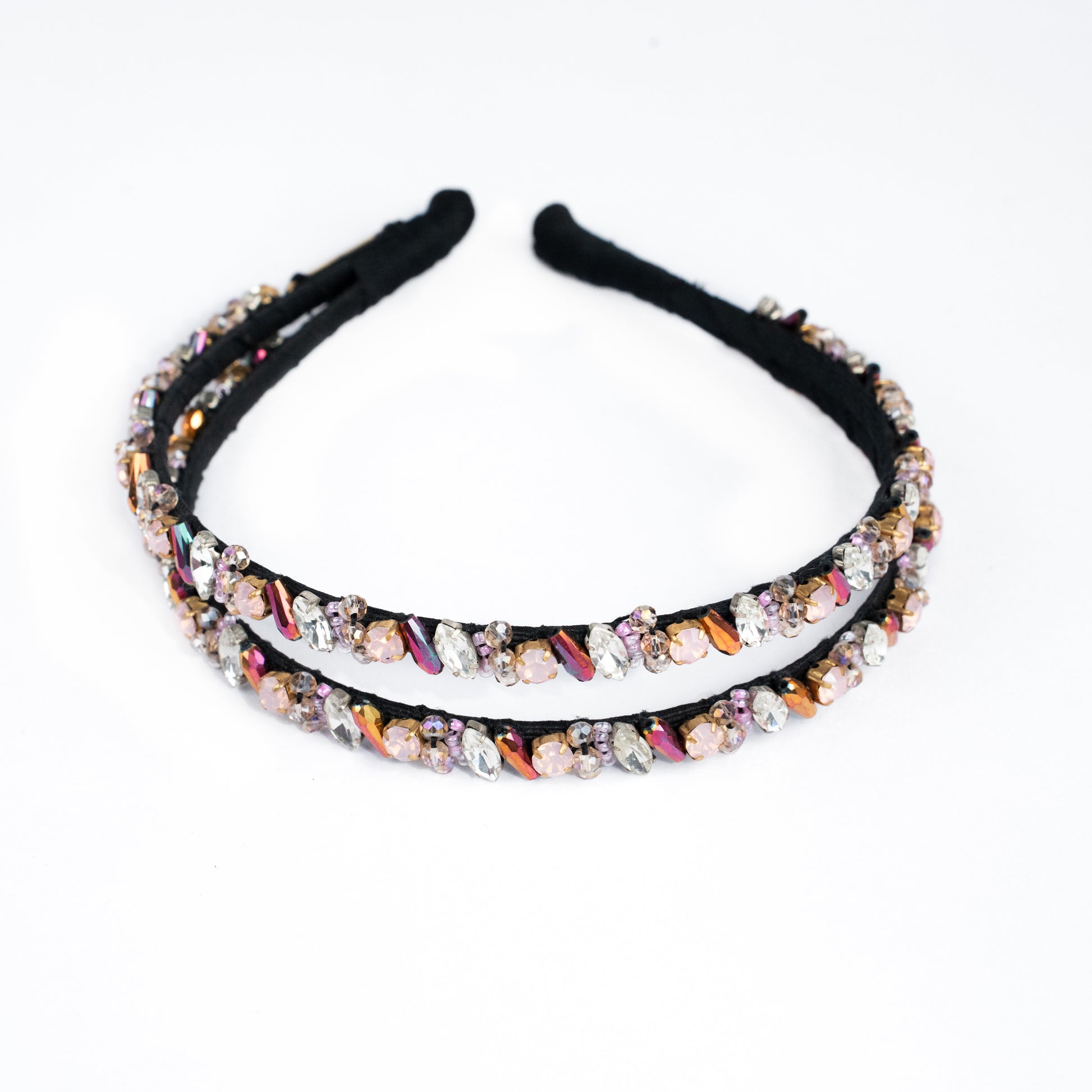 Add a stylish touch to your outfit with this double layer handcrafted hairband embellished with crystal and beads..