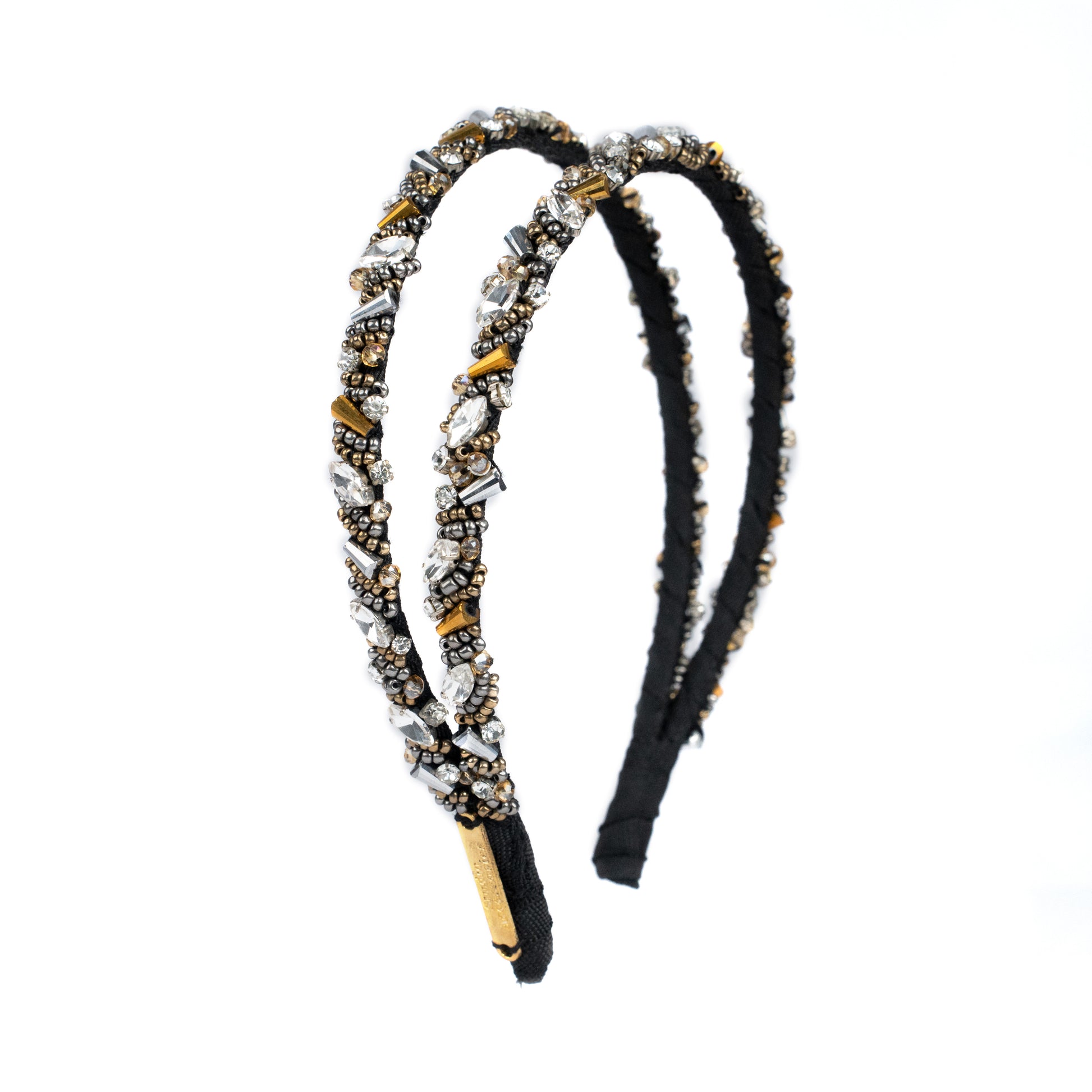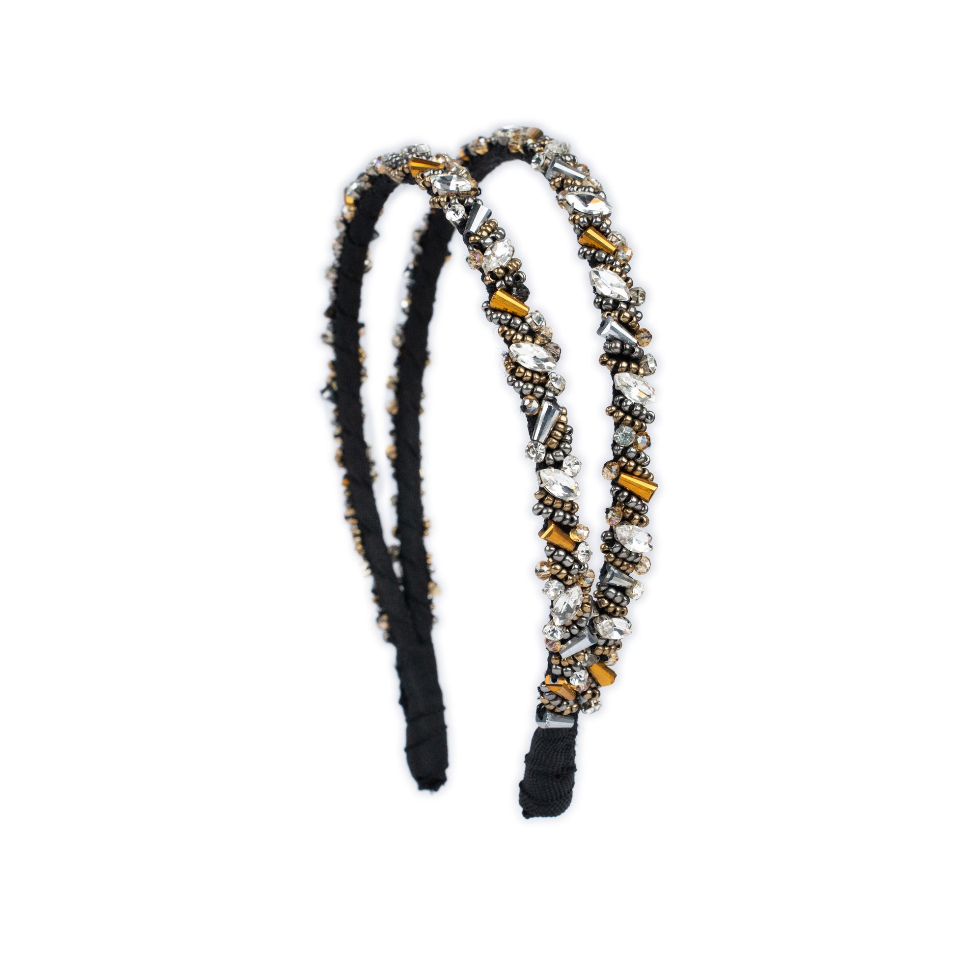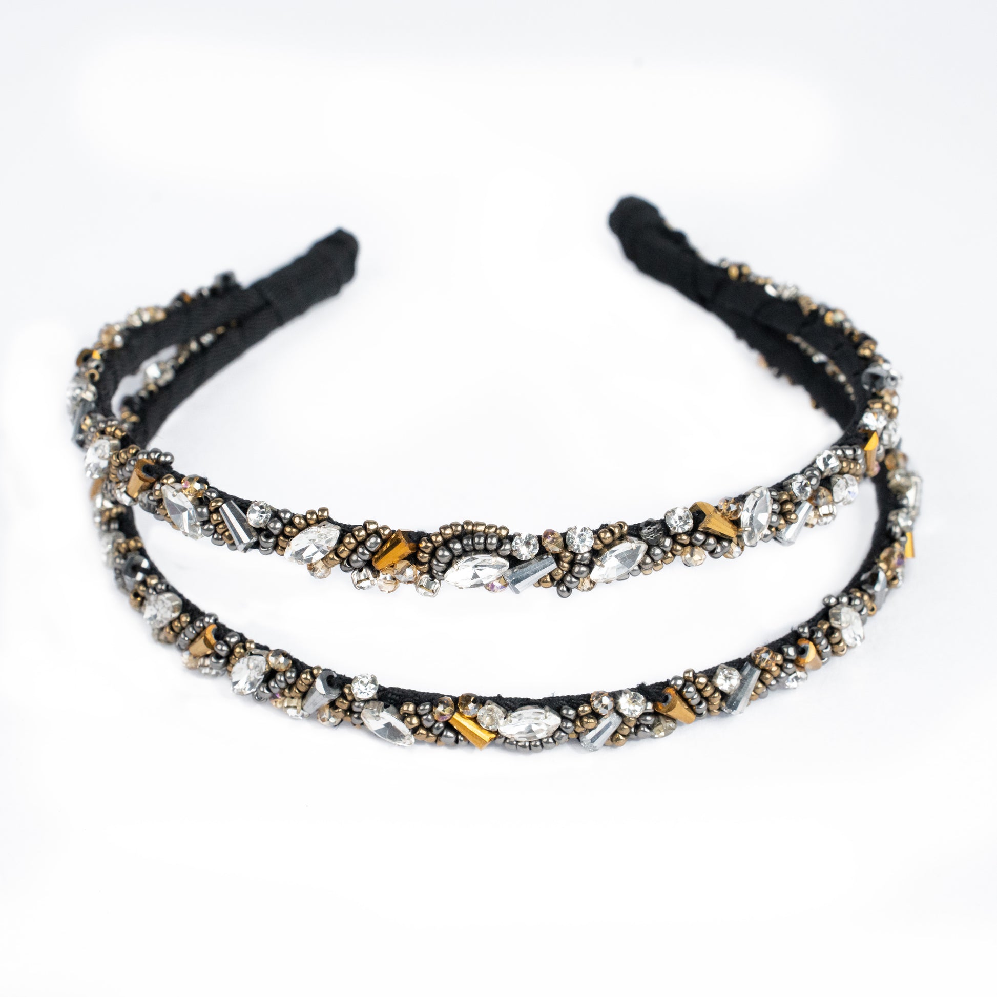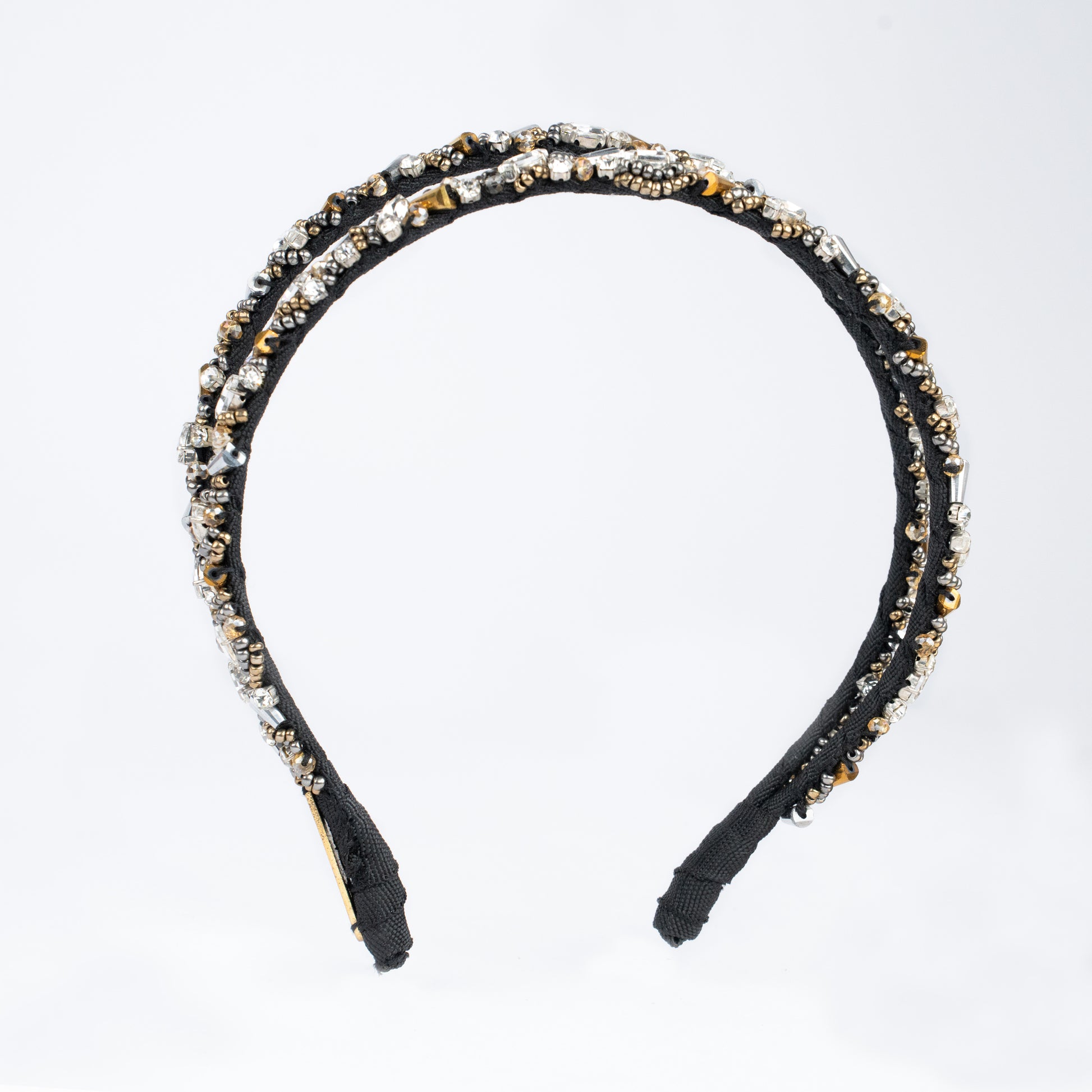 Add a stylish touch to your outfit with this double layer handcrafted hairband embellished with crystal and beads..