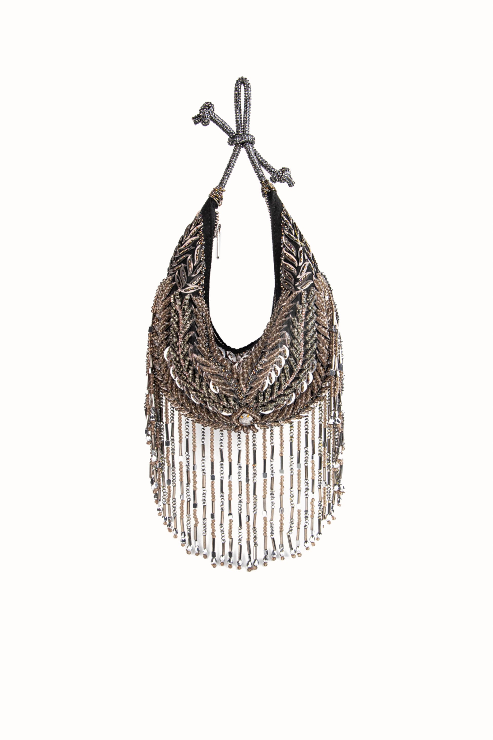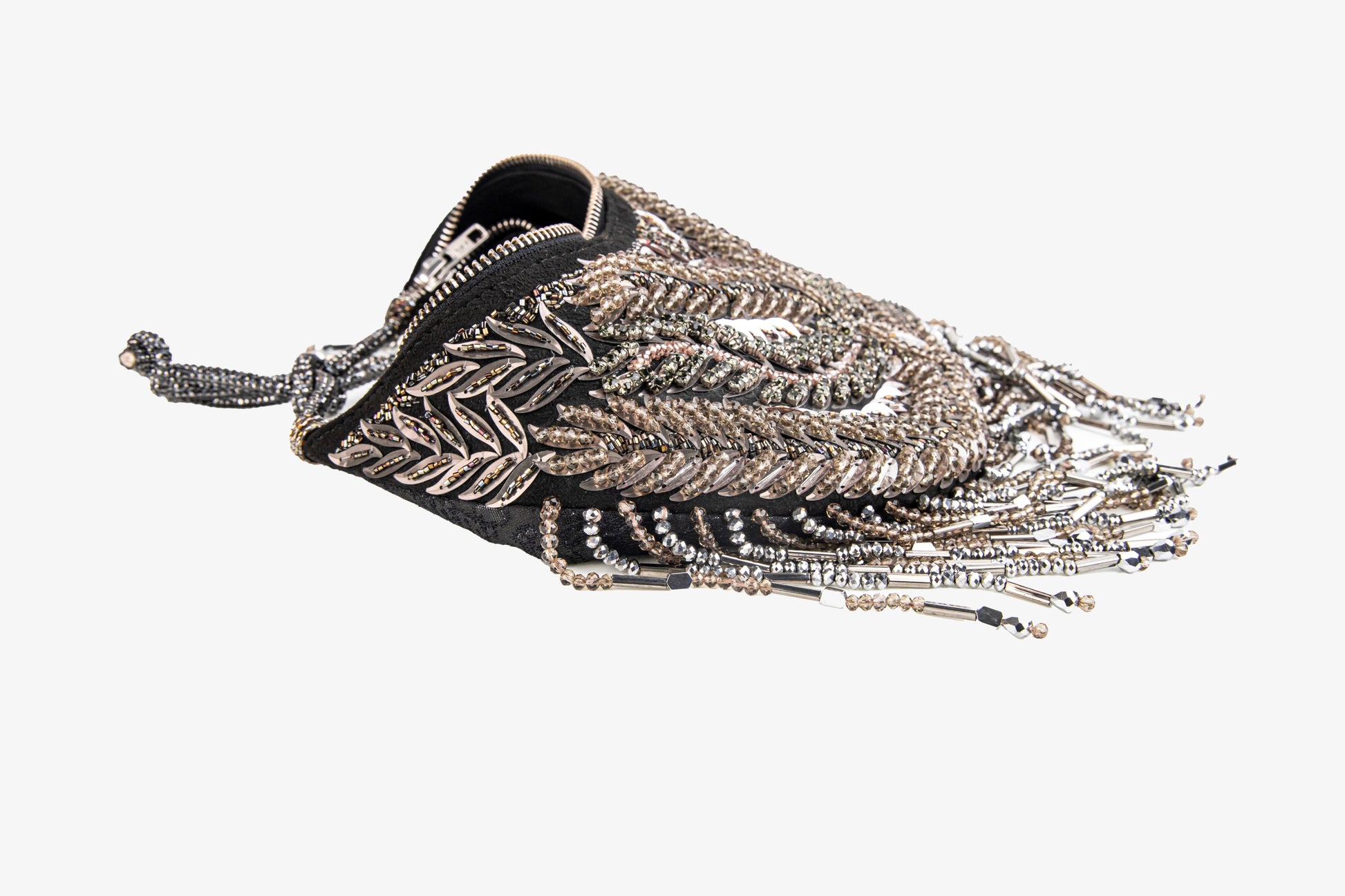 Infusing intricate embroideries on eclectic materials, Seraphim bag from the Dazzle collection is state of the art. It illustrates detailed beading and crystal work inspired by the moonbeam..