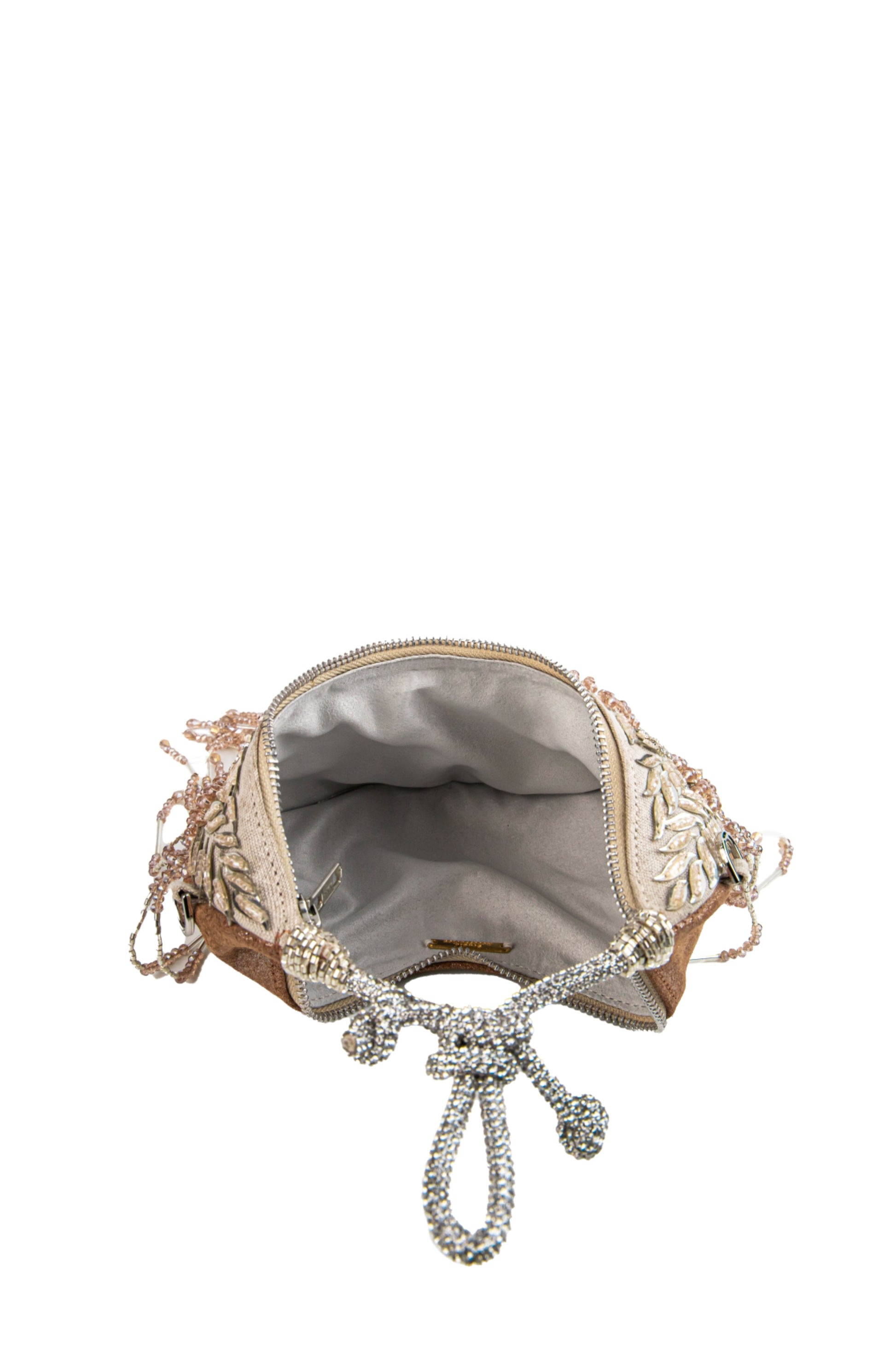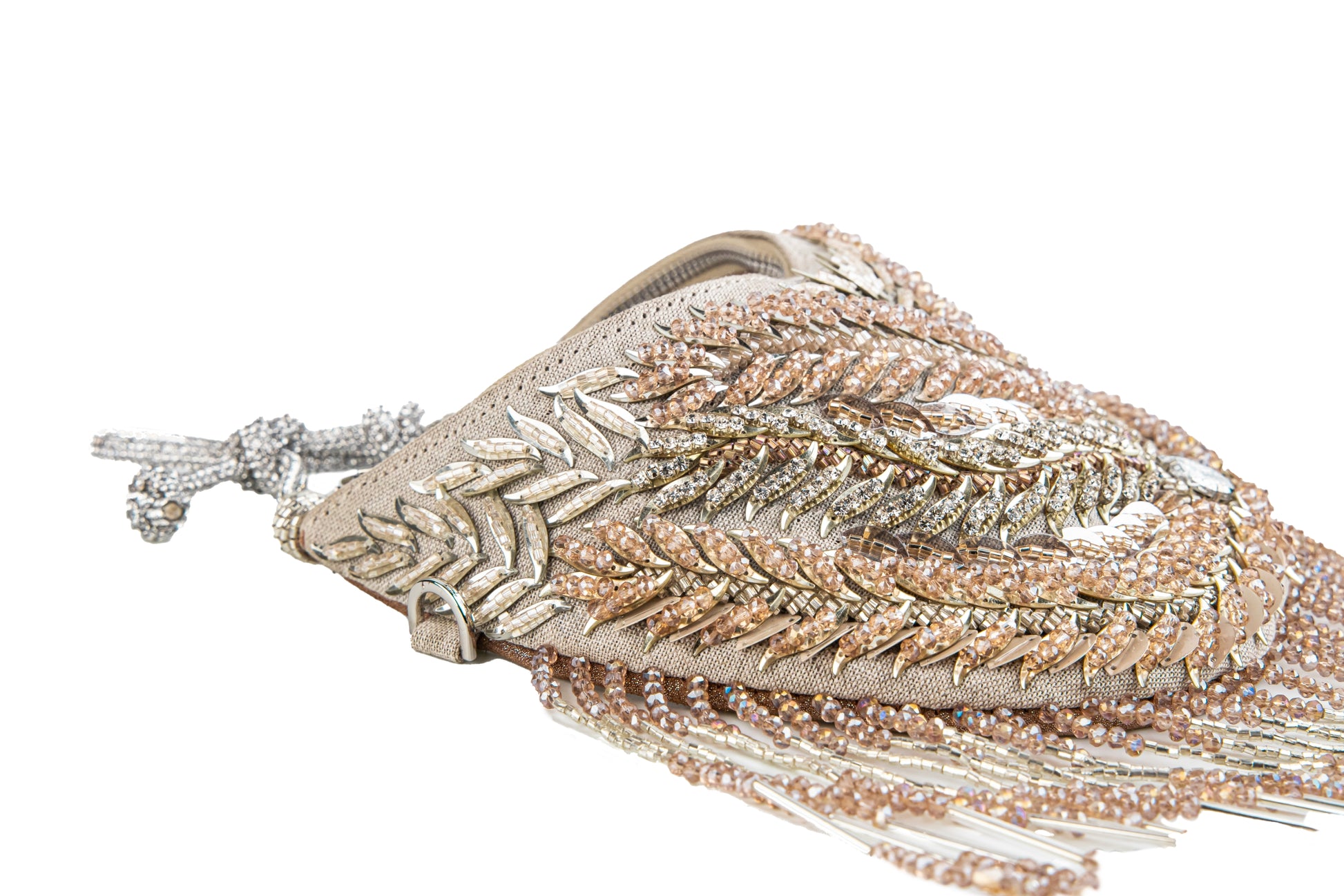 Infusing intricate embroideries on eclectic materials, Seraphim bag from the Dazzle collection is state of the art. It illustrates detailed beading and crystal work inspired by the moonbeam..