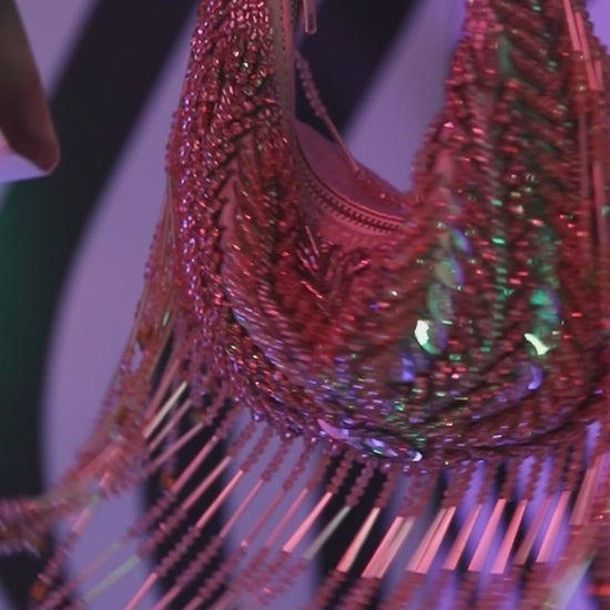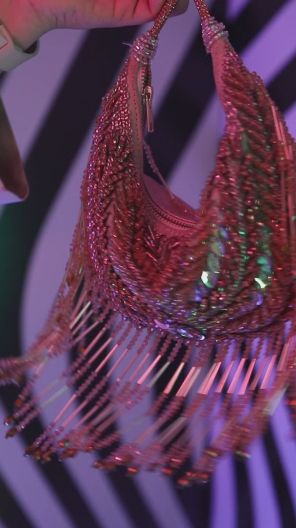 Infusing intricate embroideries on eclectic materials, Seraphim bag from the Dazzle collection is state of the art. It illustrates detailed beading and crystal work inspired by the moonbeam.