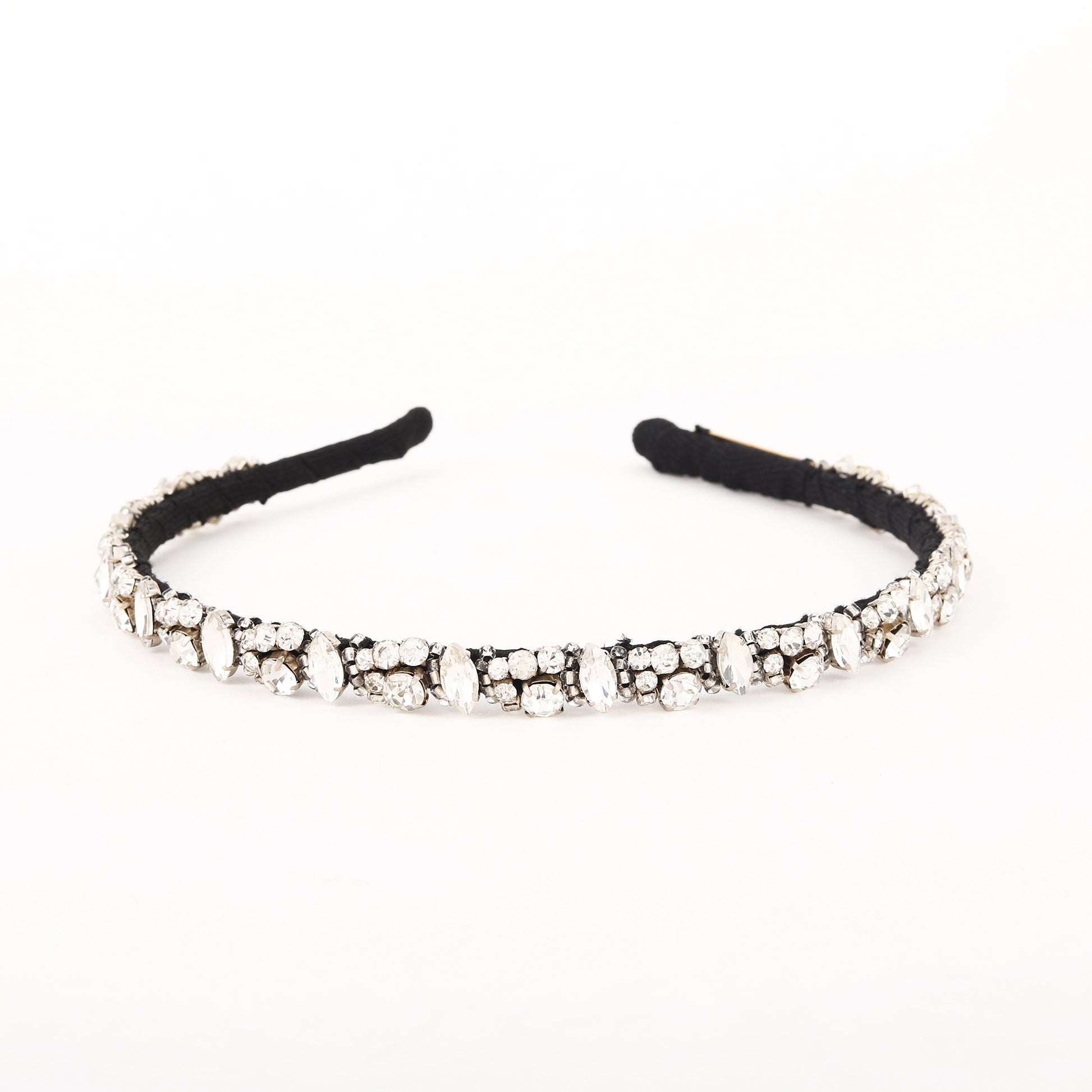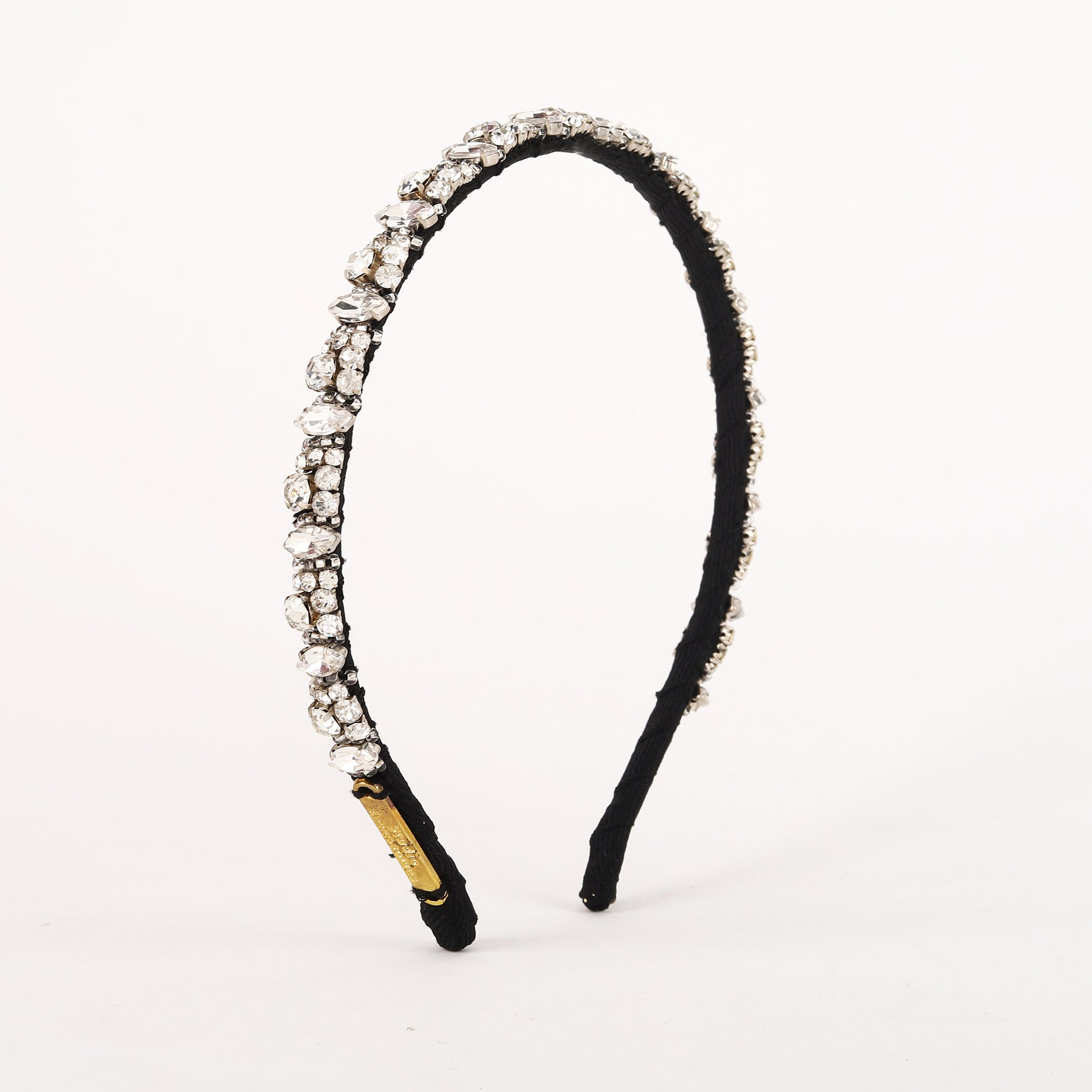This hand-beaded thin hairband shimmers with elegance, adorned with delicate silver-colored crystals and beads. Each crystal captures the light, adding a touch of glamour to any hairstyle. Perfect for adding a hint of sparkle to your ensemble, whether it's for a special occasion or to elevate your everyday look..