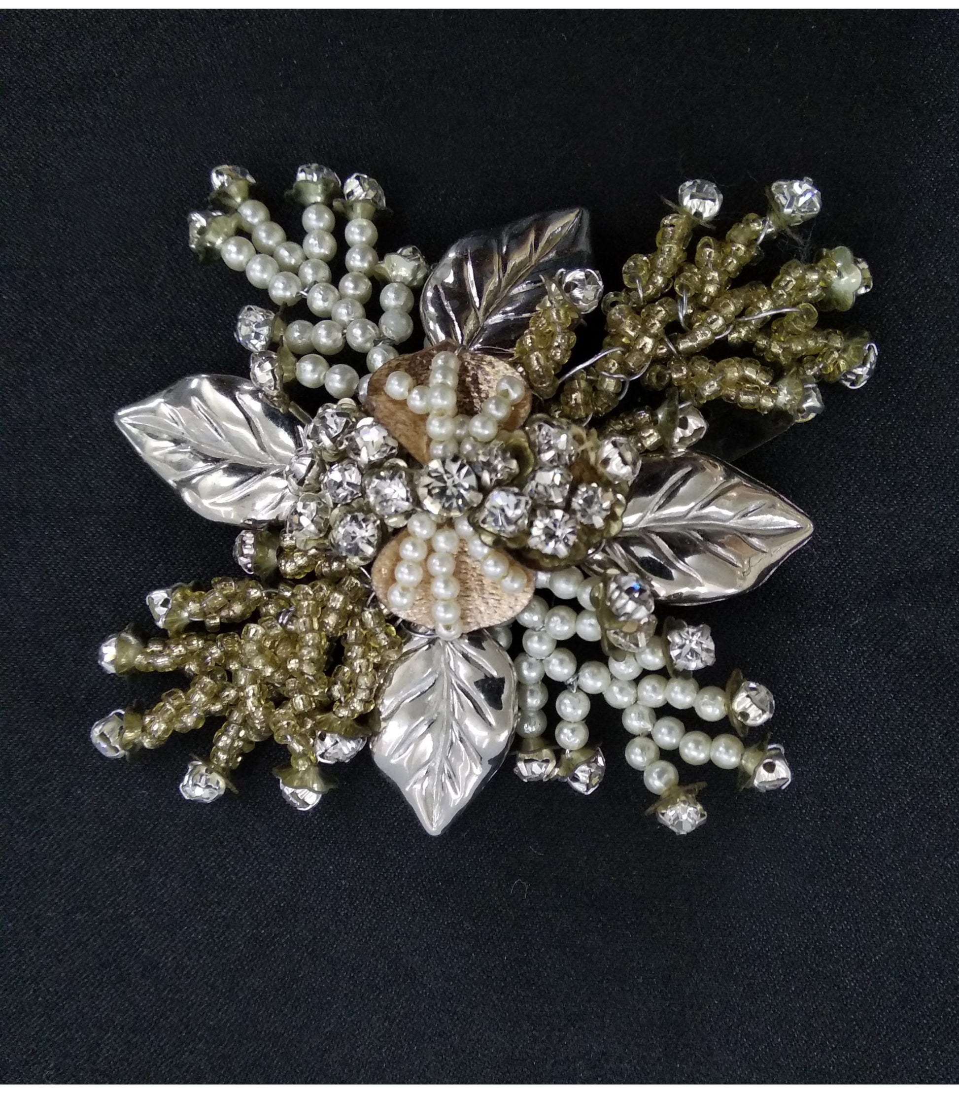 Featuring a Gold and Silver Tic Tac hairclip with sequins, Beads, pearls and crystal flower motif embellishment, set in steel.