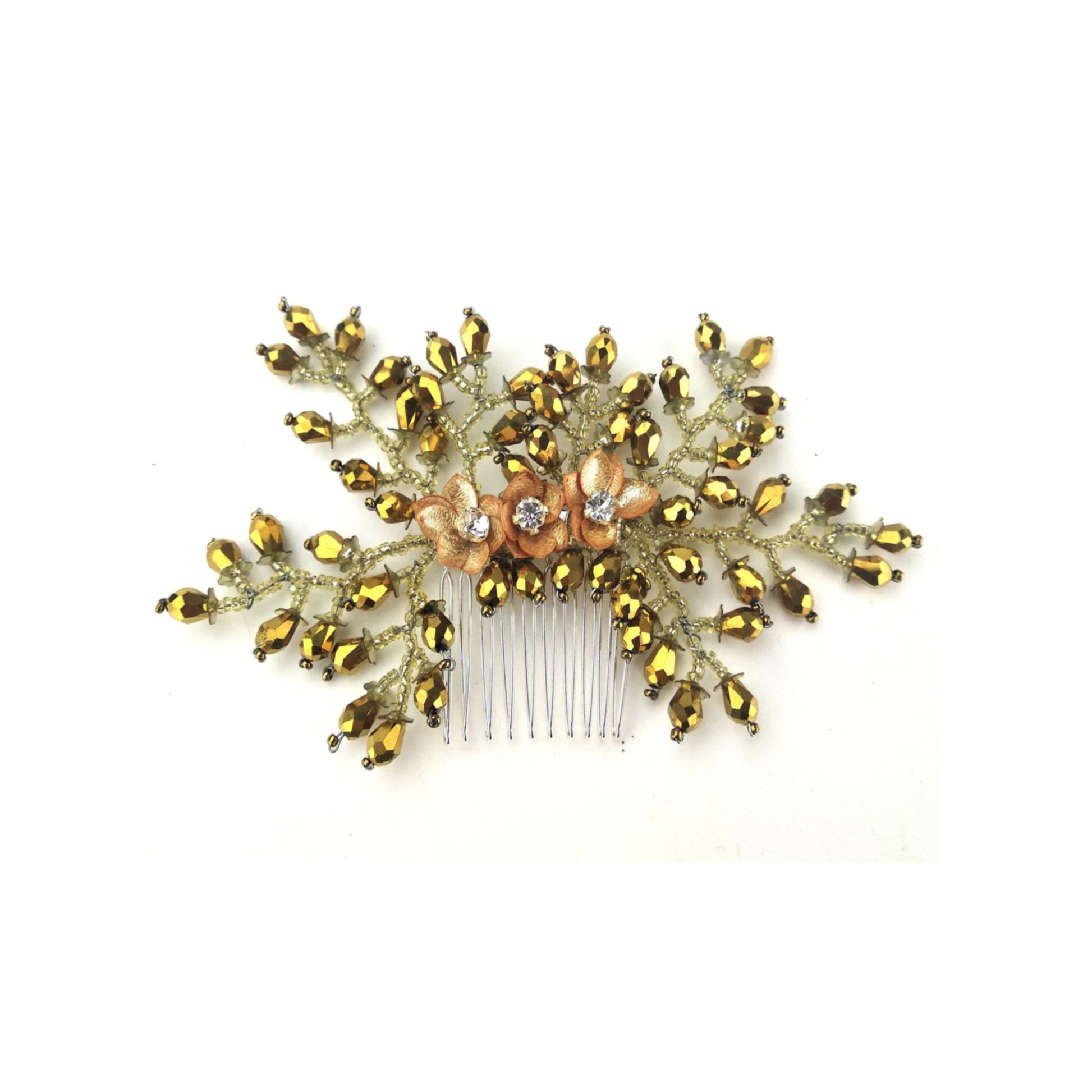Featuring a Gold Haircomb with crystal, metal sequins, beads embellishment set in steel.