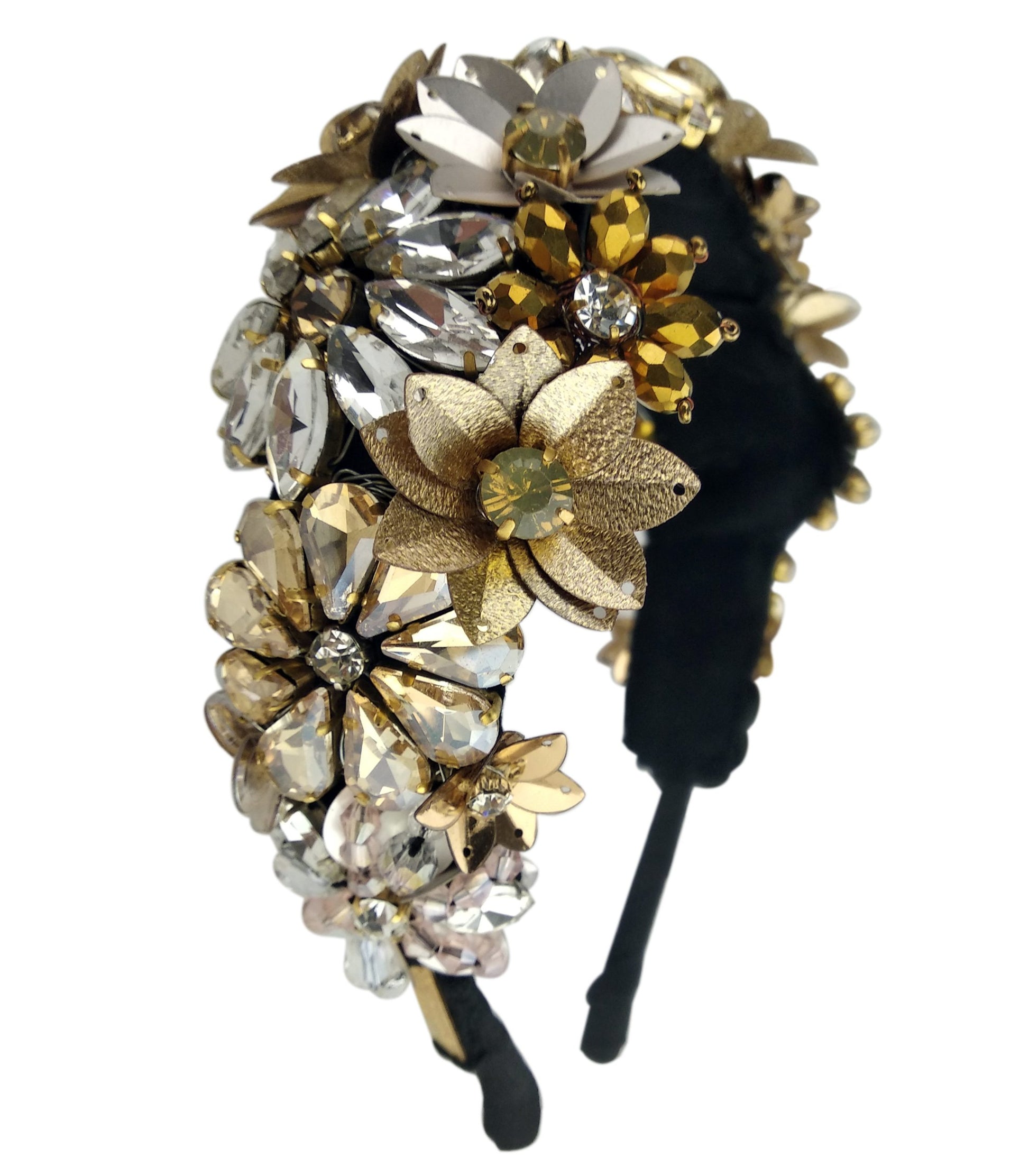 Featuring a stunning Gold & Silver woven hair band with crystal, sequins and beads embellishment..