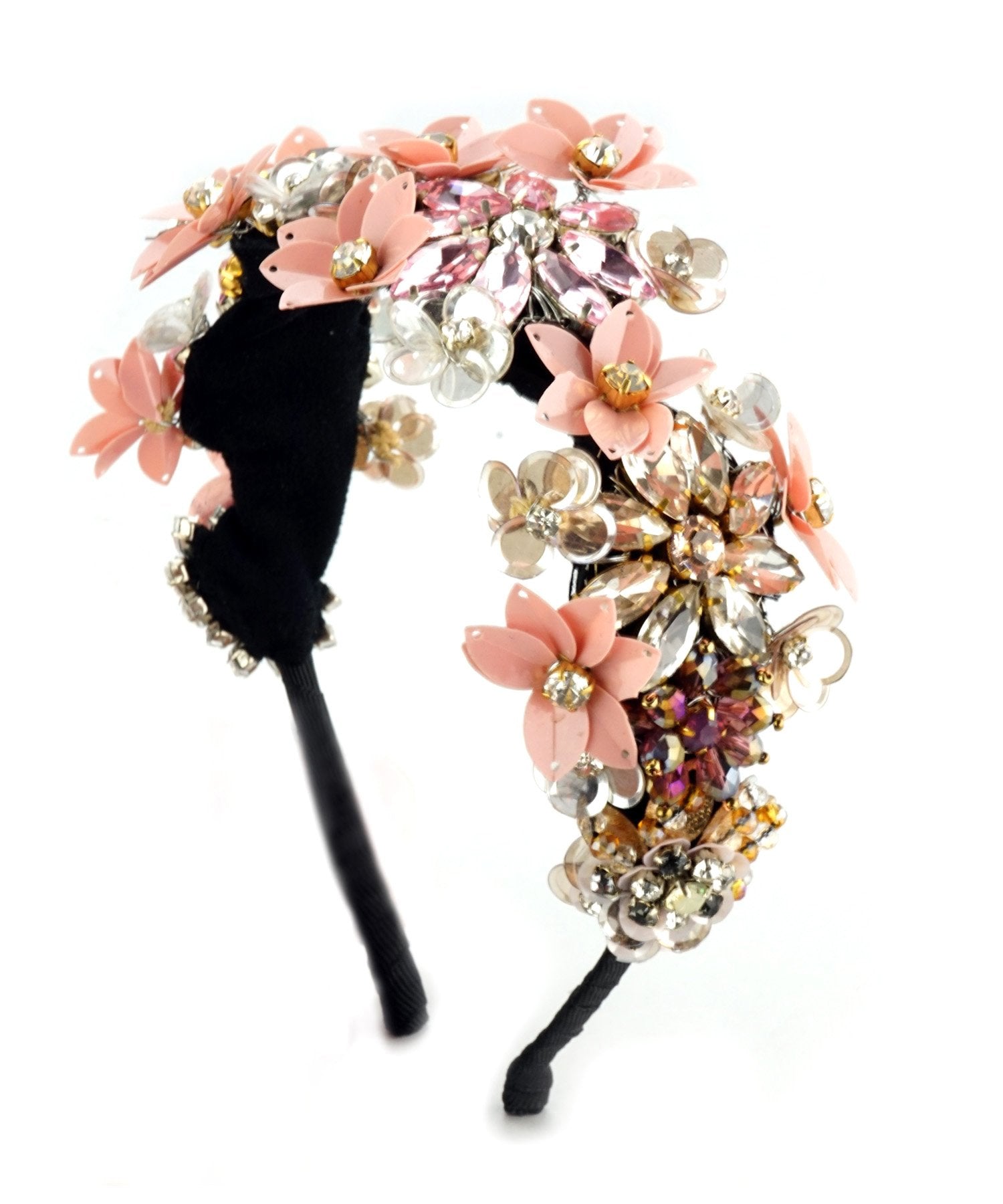 Featuring a woven hairband with Multi-color crystal and Peach color sequins embellishment..