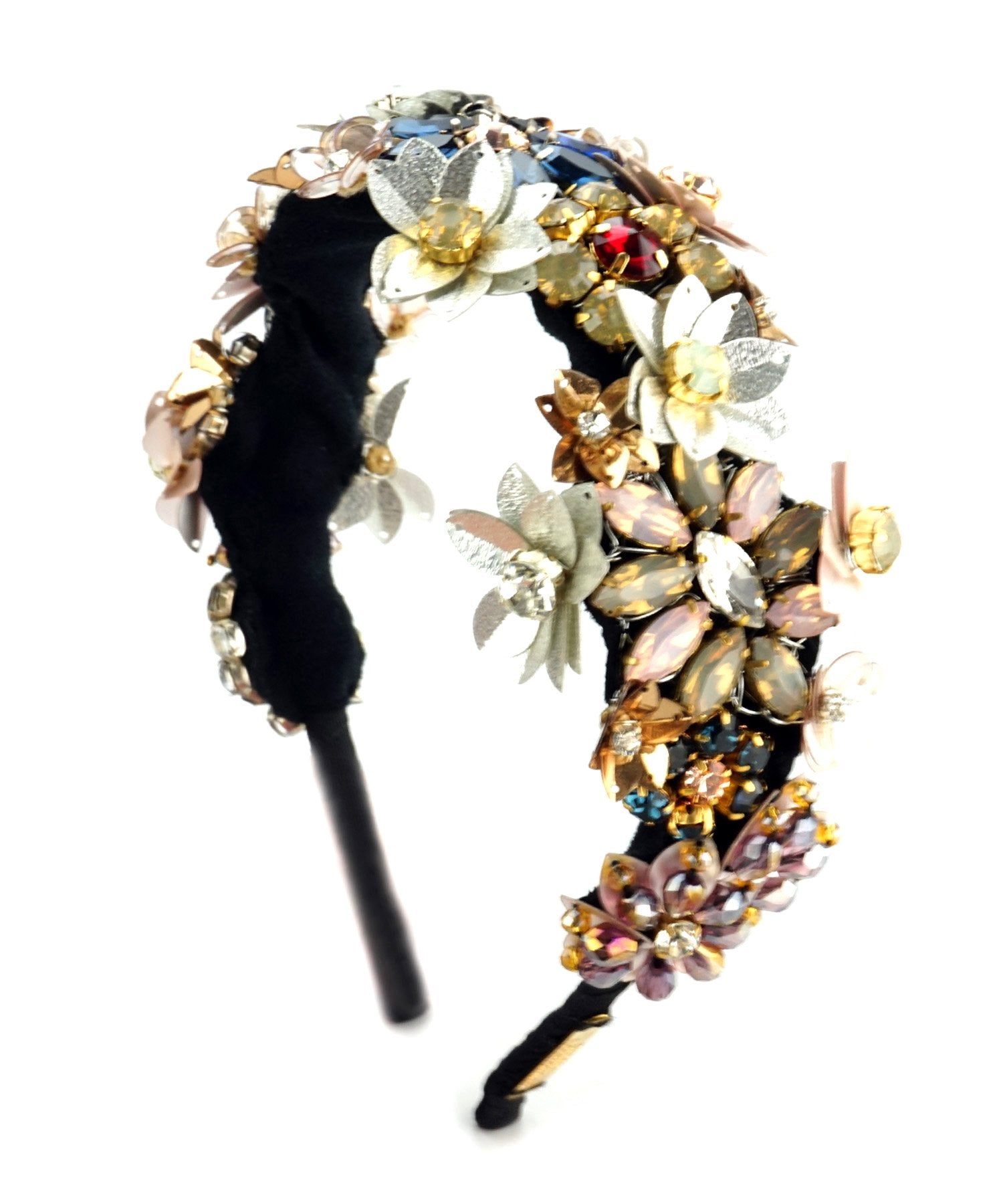Featuring a woven hairband with Multi-color crystal and sequins embellishment..