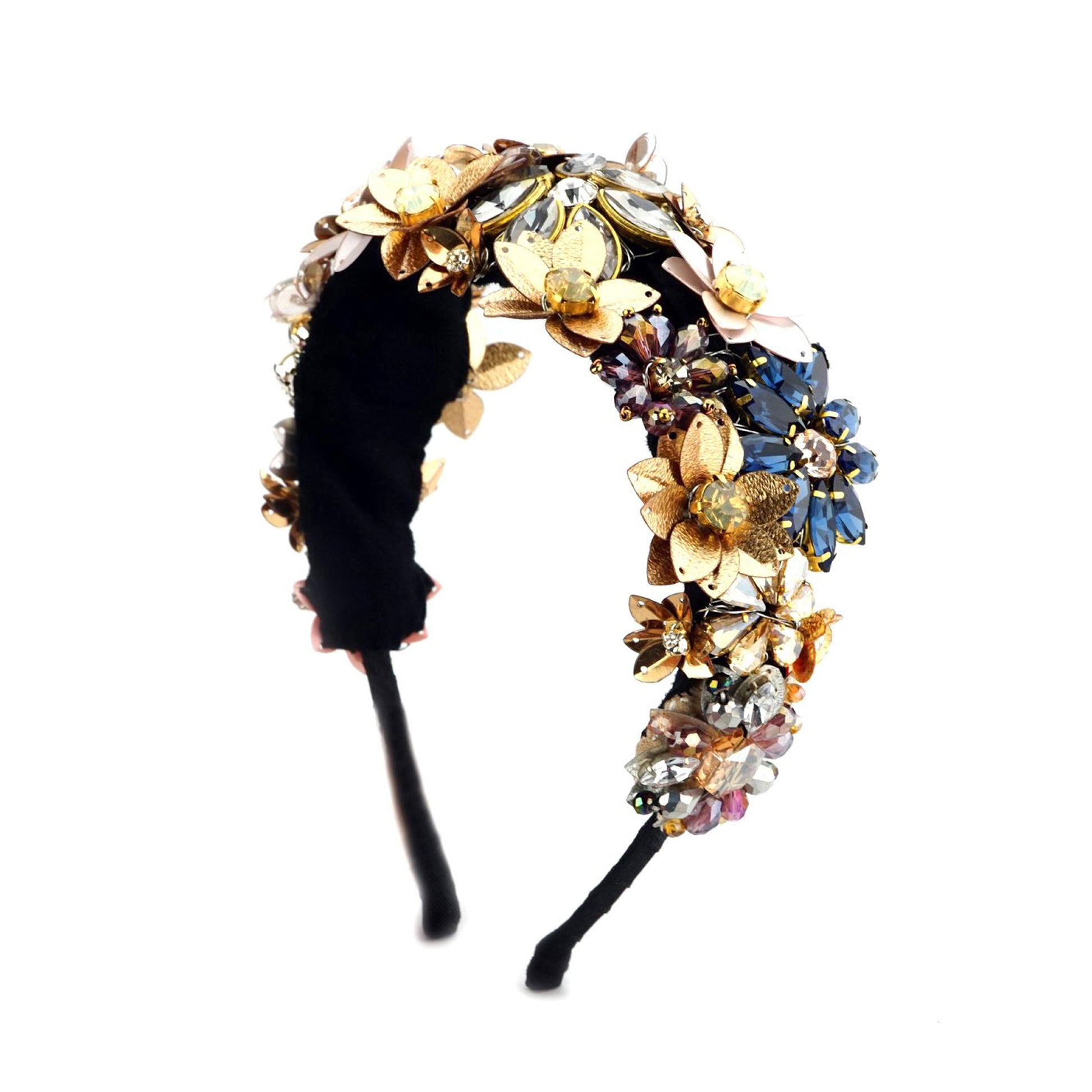 Featuring a woven hairband with Multi-color crystal and sequins embellishment.