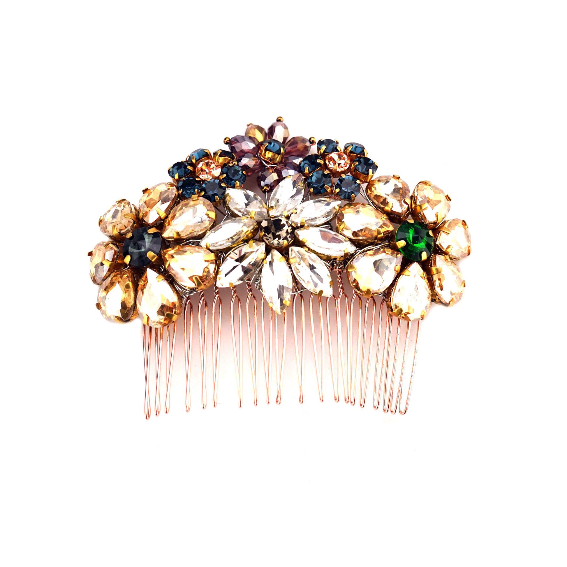 Featuring a Hair Comb hairclip with Multicolor crystal stone embellishment, set in steel.