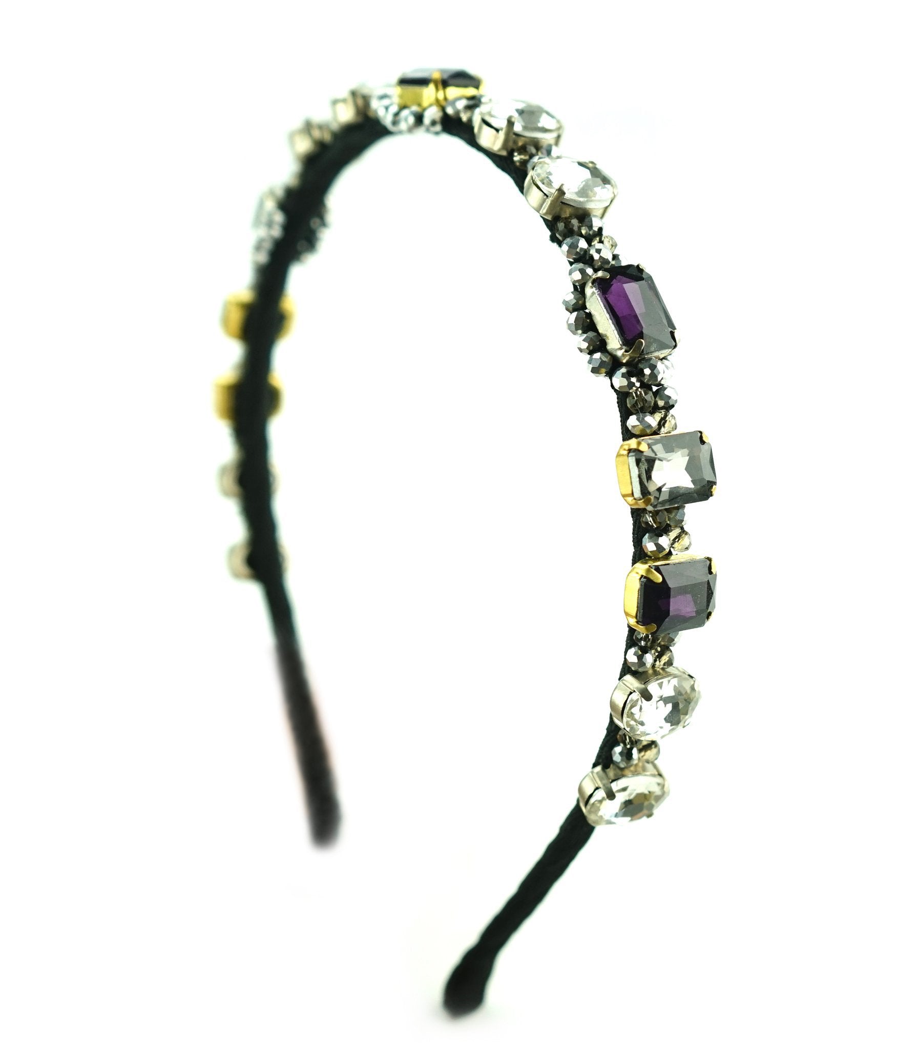 Featuring a party wear and casual woven hairband with Purple,Black and silver crystal stones and beads work embellishment..