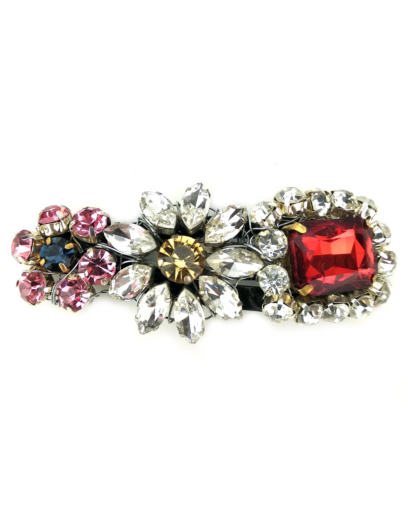Featuring a Tic Tac hairclip with Multicolor Crystal stones flower motif embellishment, set in steel.
