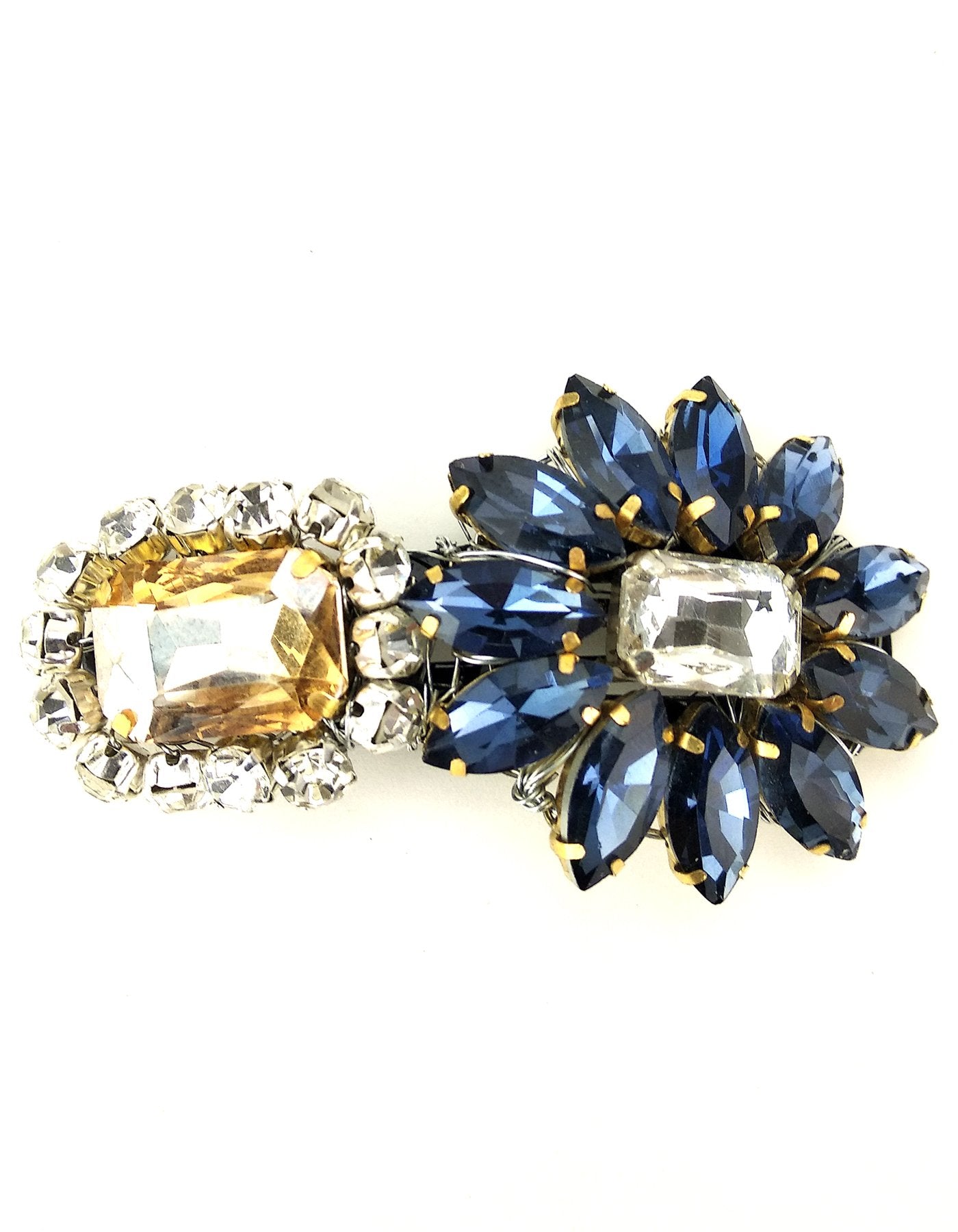 Featuring a Tic Tac hairclip with Multicolor Crystal stones flower motif embellishment, set in steel.