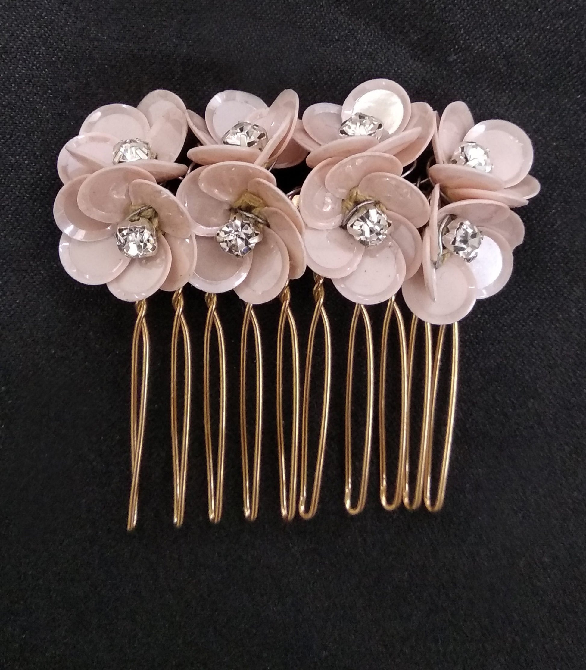 Featuring a Peach color Hair Comb with crystal stones and sequins embellishment, set in steel.
