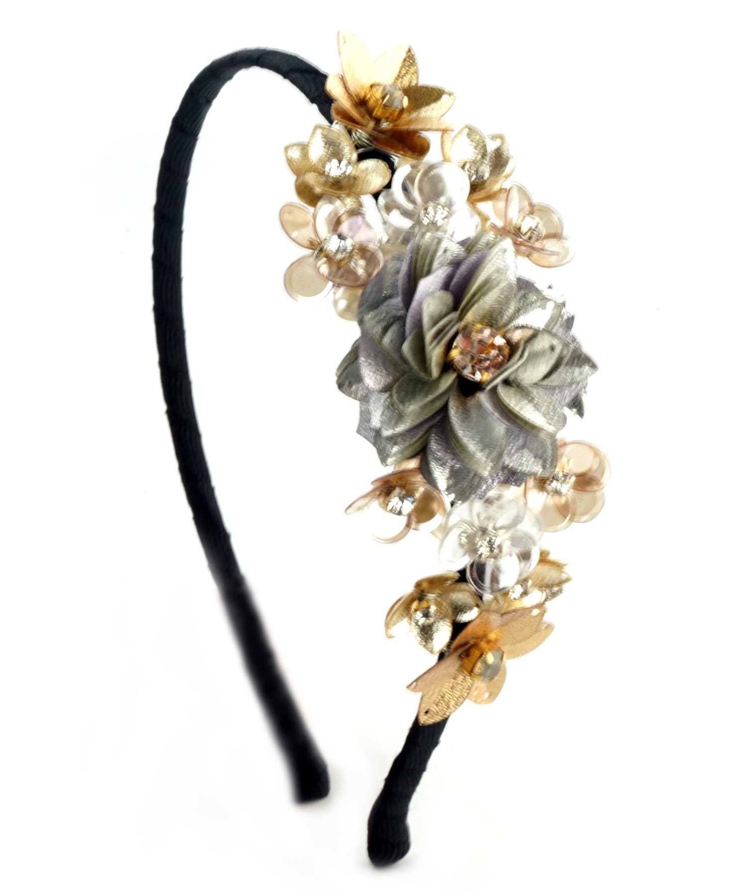 Featuring a Silver and Gold flower woven hairband with metal sequins and crystal stones floral work embellishment.
