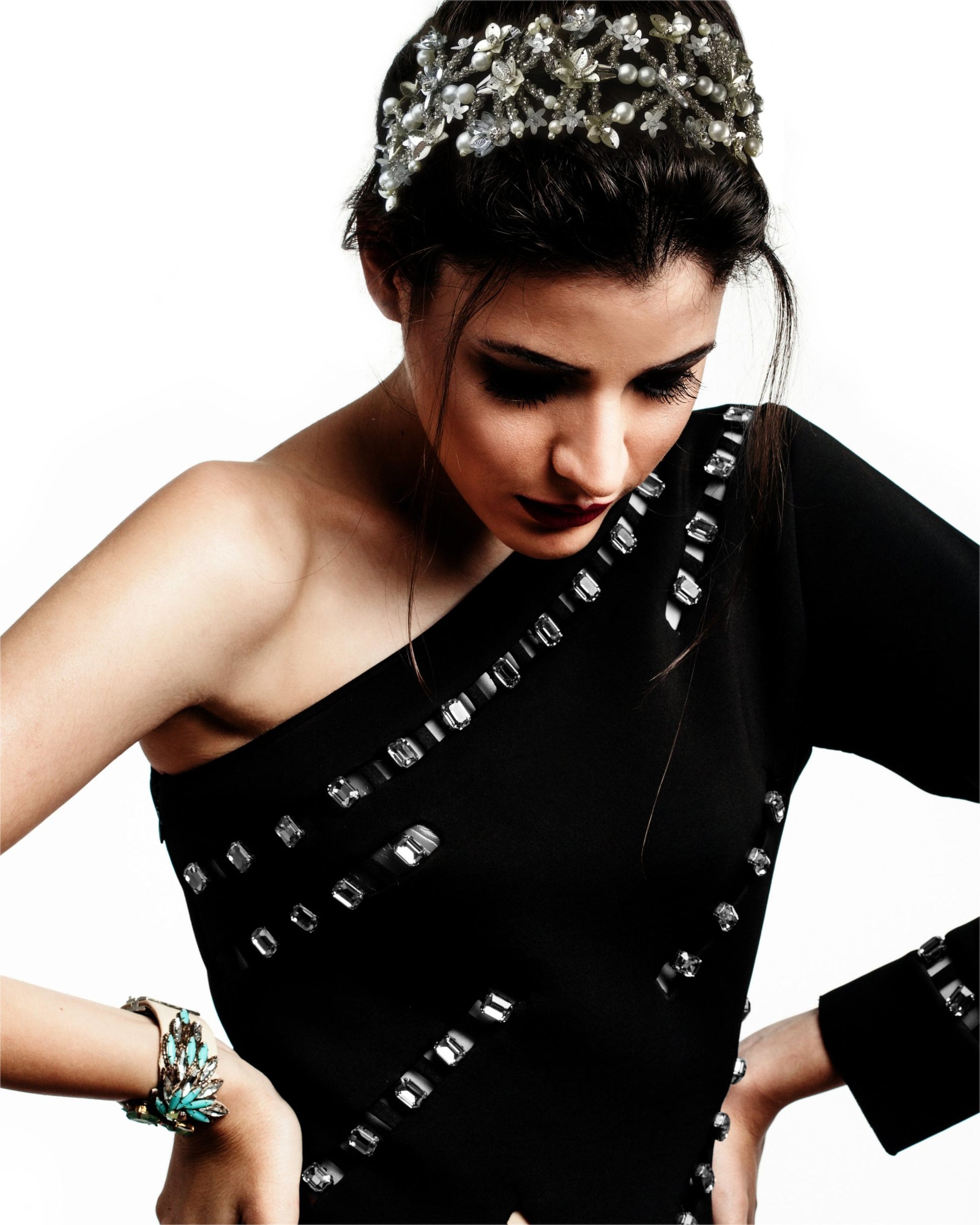 Featuring a Stunning hairband with Silver metal sequins, crystals, beads and Pearls floral work embellishment..