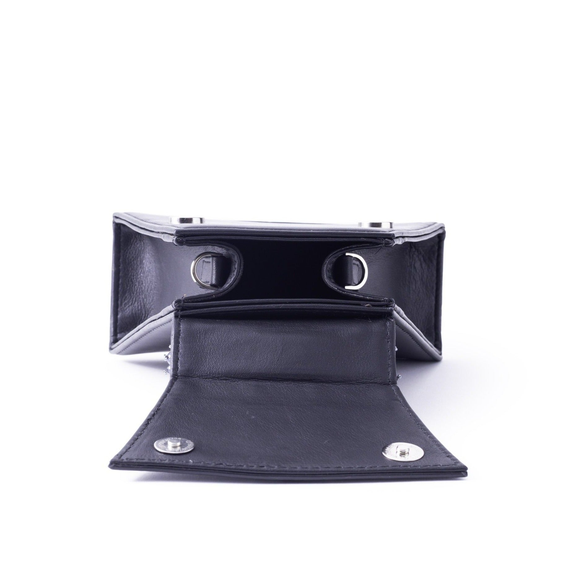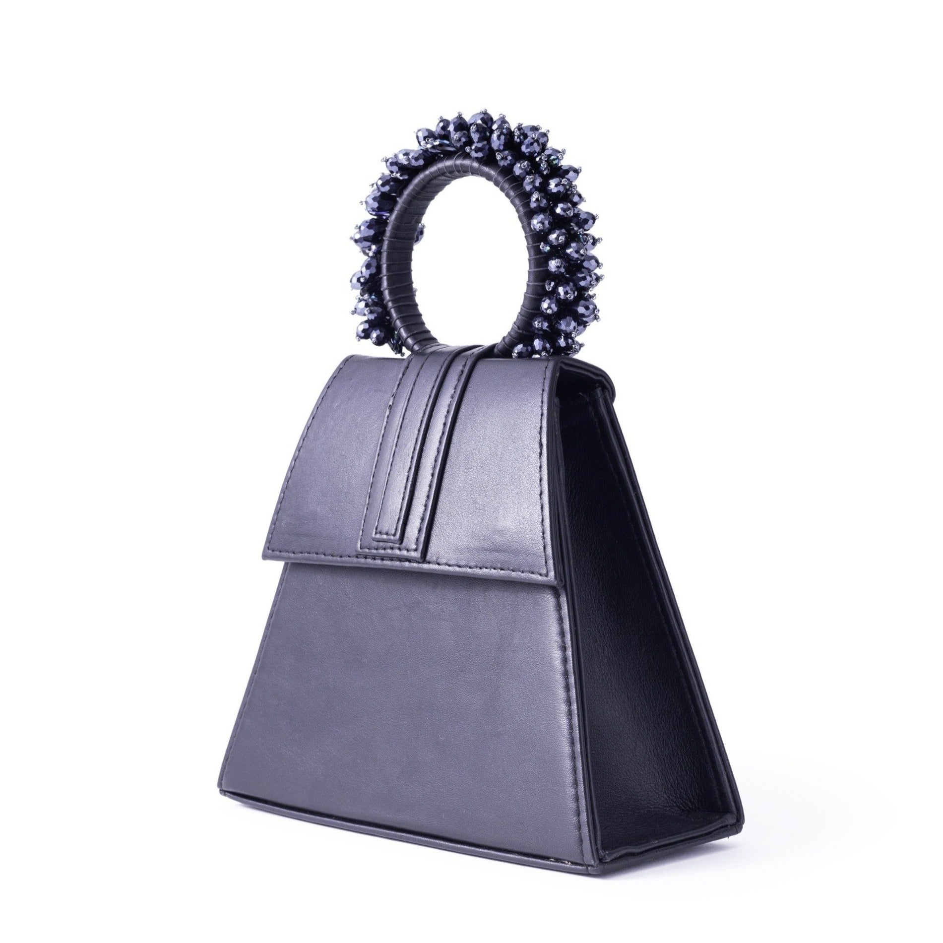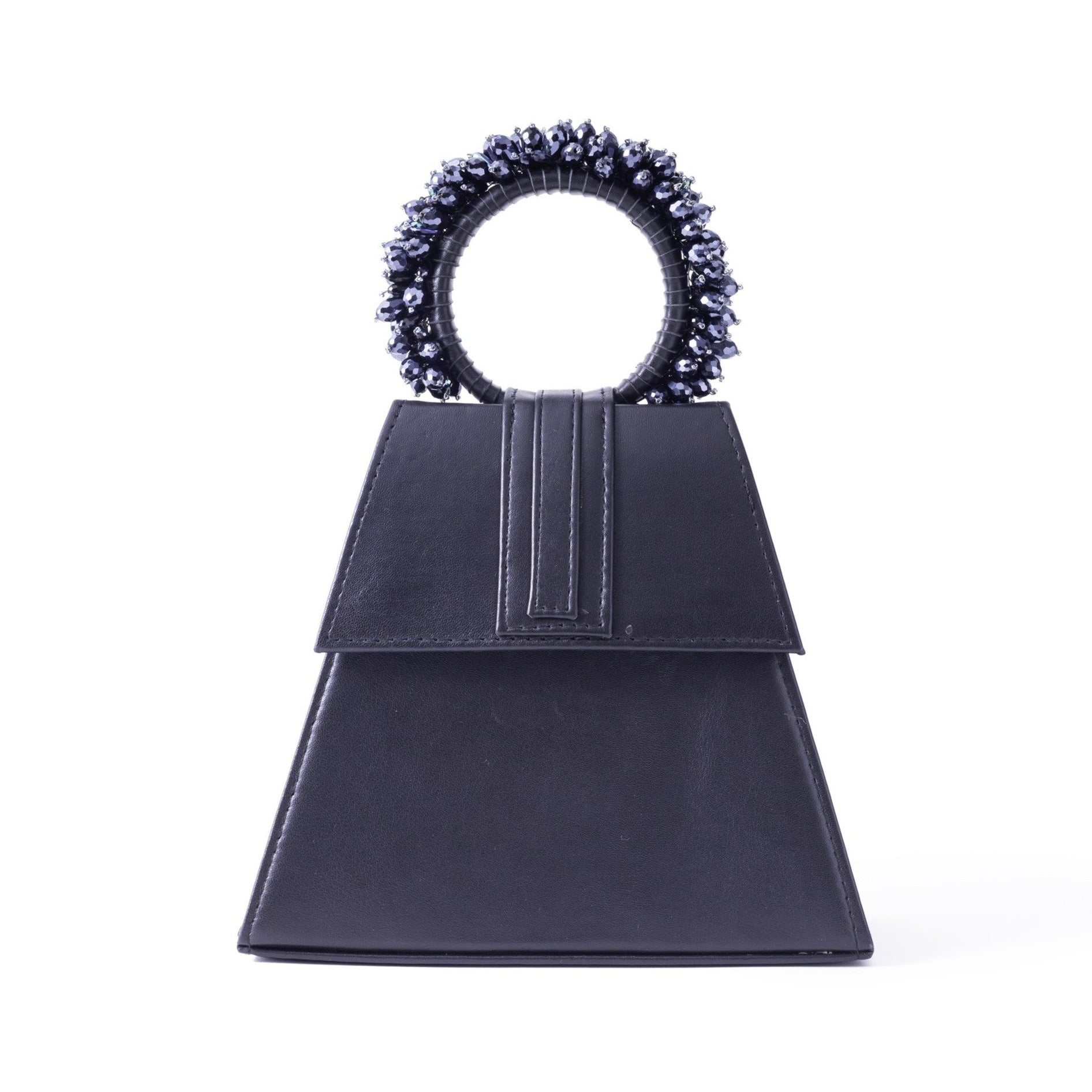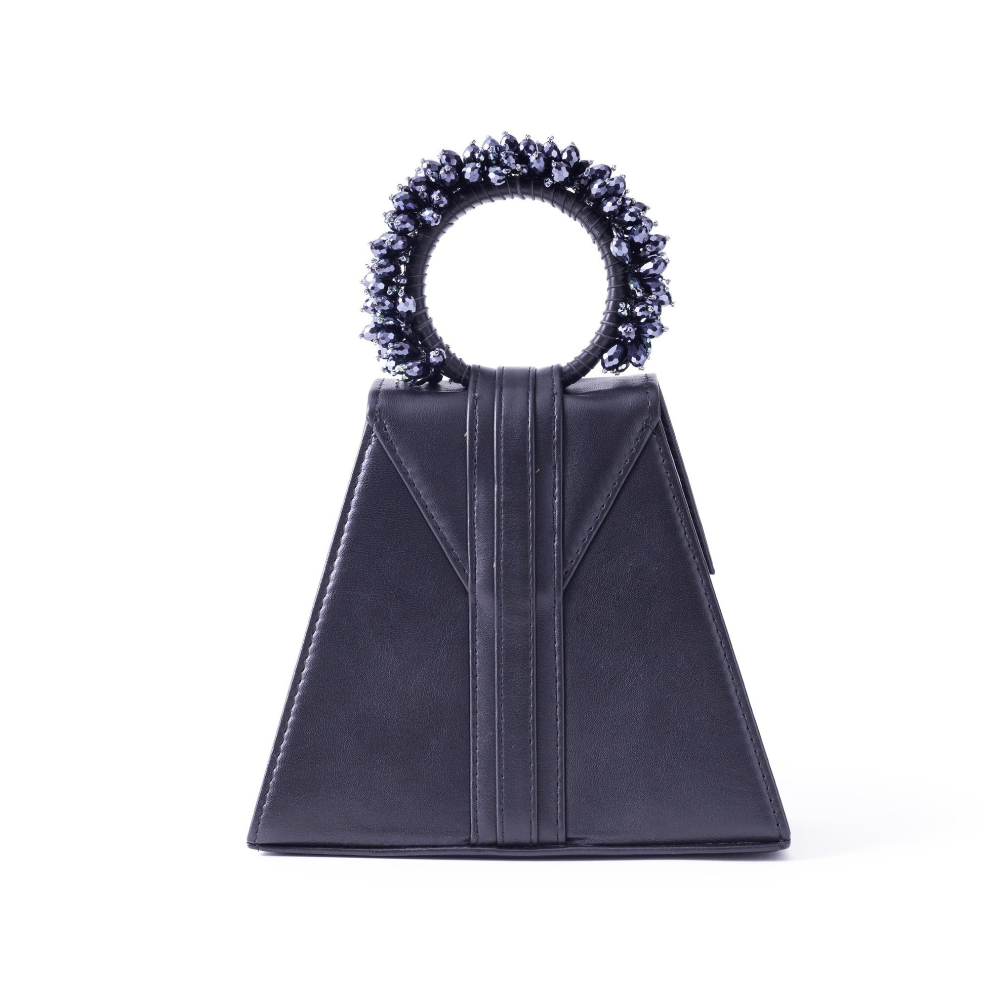 Add a stylish touch to your outfit with this Triangle shape Black Leather bag.