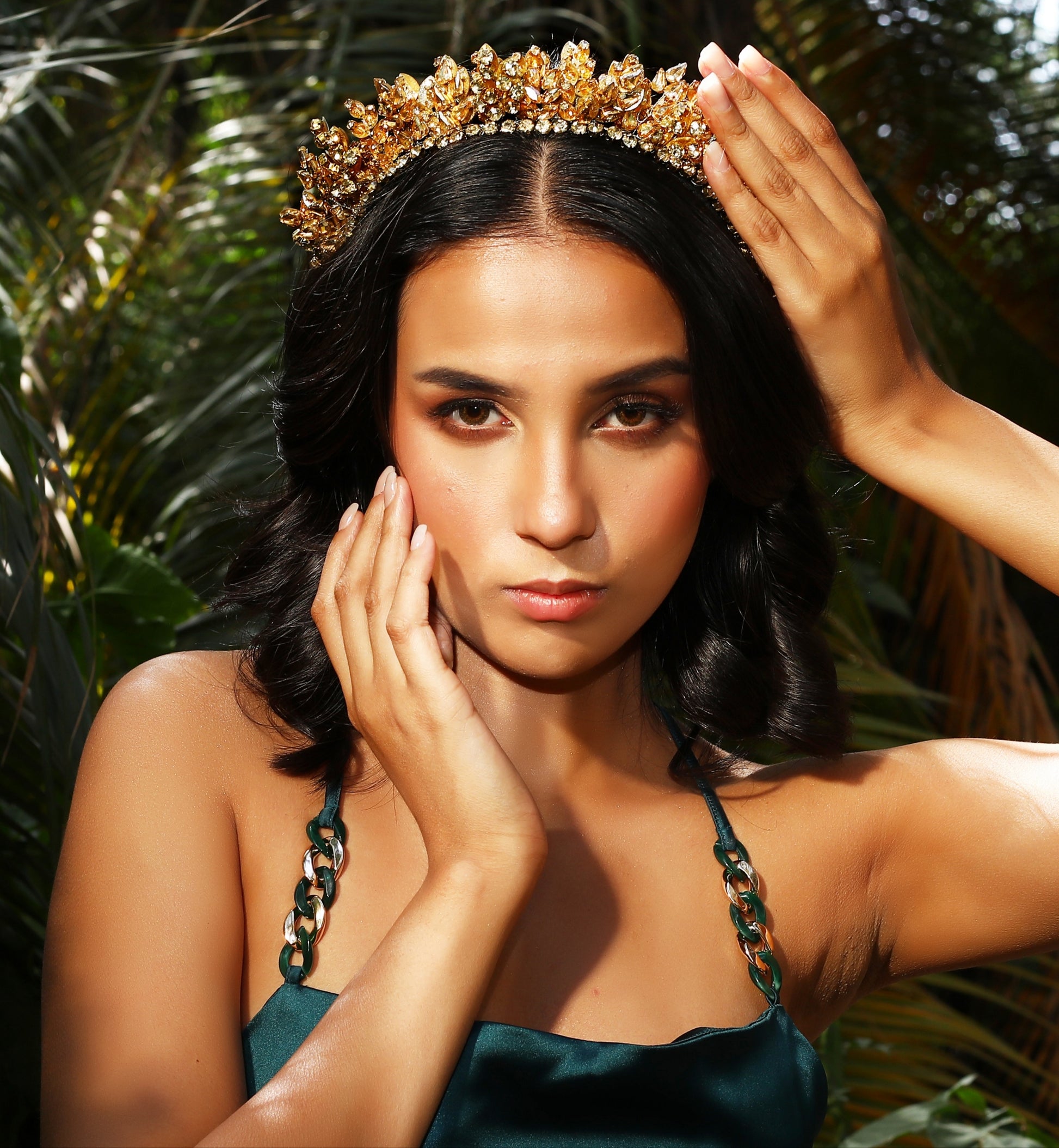 Crafted with exquisite attention to detail, this stunning crown is a true work of art. The intricate design features shimmering gold crystals, delicate beads, and sparkling sequins, creating a look that is truly fit for a queen. From the moment you place this crown atop your head, you'll feel its powerful, regal energy coursing through you. With its unmatched beauty and poise, this piece is a must-have for anyone looking to make a statement. Whether you're attending a formal event, walking down the aisle on your wedding day, or simply seeking to add a touch of glamour to your wardrobe, this crown will help you shine like the true royalty you are. So why settle for anything less than the best? Order your crown from our exclusive queen collection today and experience the ultimate in beauty, elegance, and sophistication.