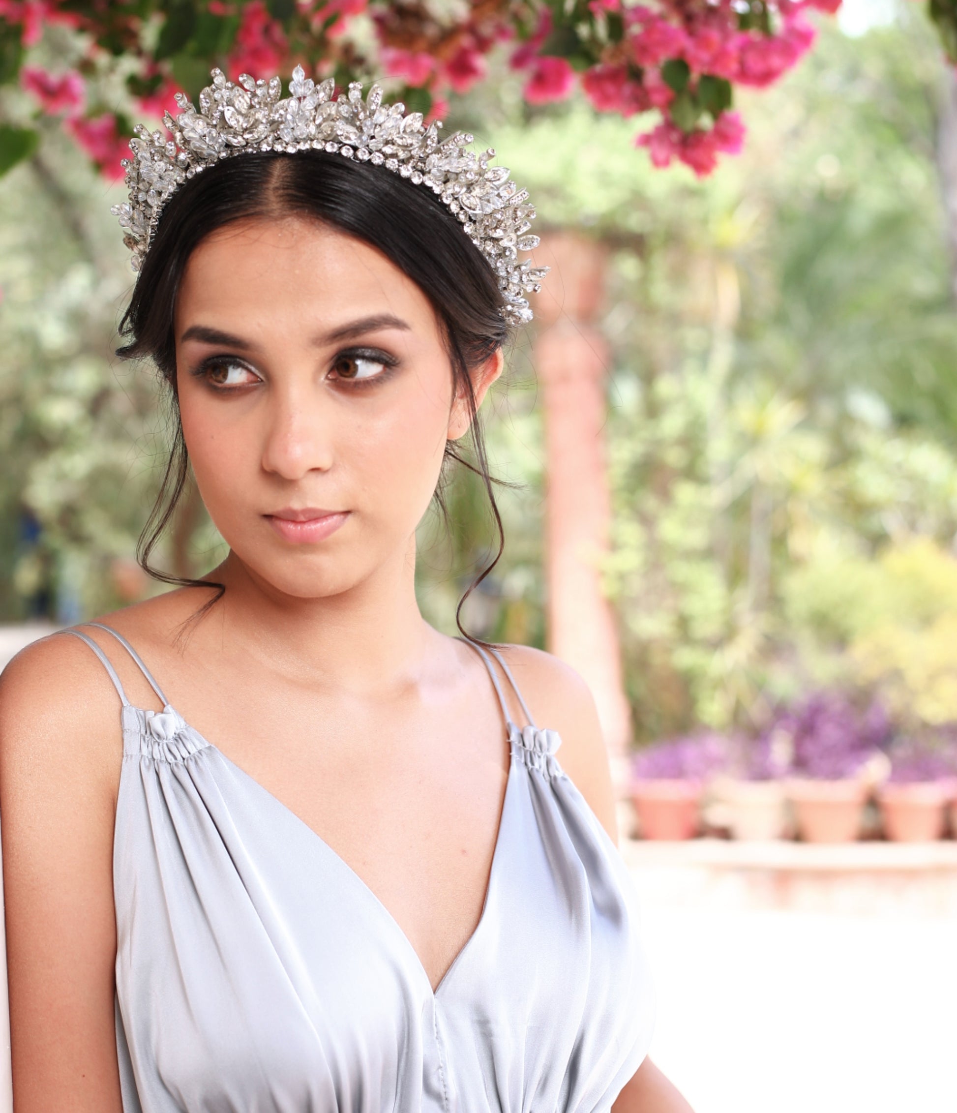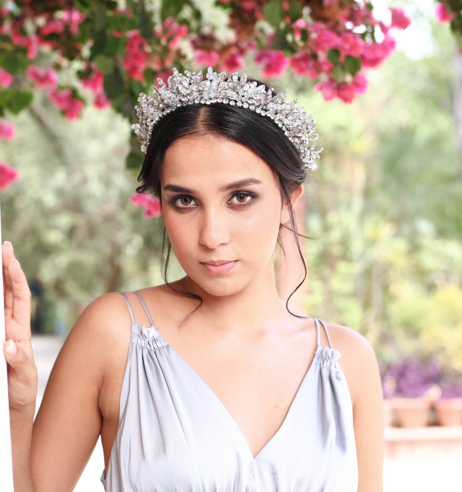 Crafted with exquisite attention to detail, this stunning crown is a true work of art. The intricate design features shimmering silver crystals, delicate beads, and sparkling sequins, creating a look that is truly fit for a queen. From the moment you place this crown atop your head, you'll feel its powerful, regal energy coursing through you. With its unmatched beauty and poise, this piece is a must-have for anyone looking to make a statement. Whether you're attending a formal event, walking down the aisle on your wedding day, or simply seeking to add a touch of glamour to your wardrobe, this crown will help you shine like the true royalty you are. So why settle for anything less than the best? Order your crown from our exclusive queen collection today and experience the ultimate in beauty, elegance, and sophistication.